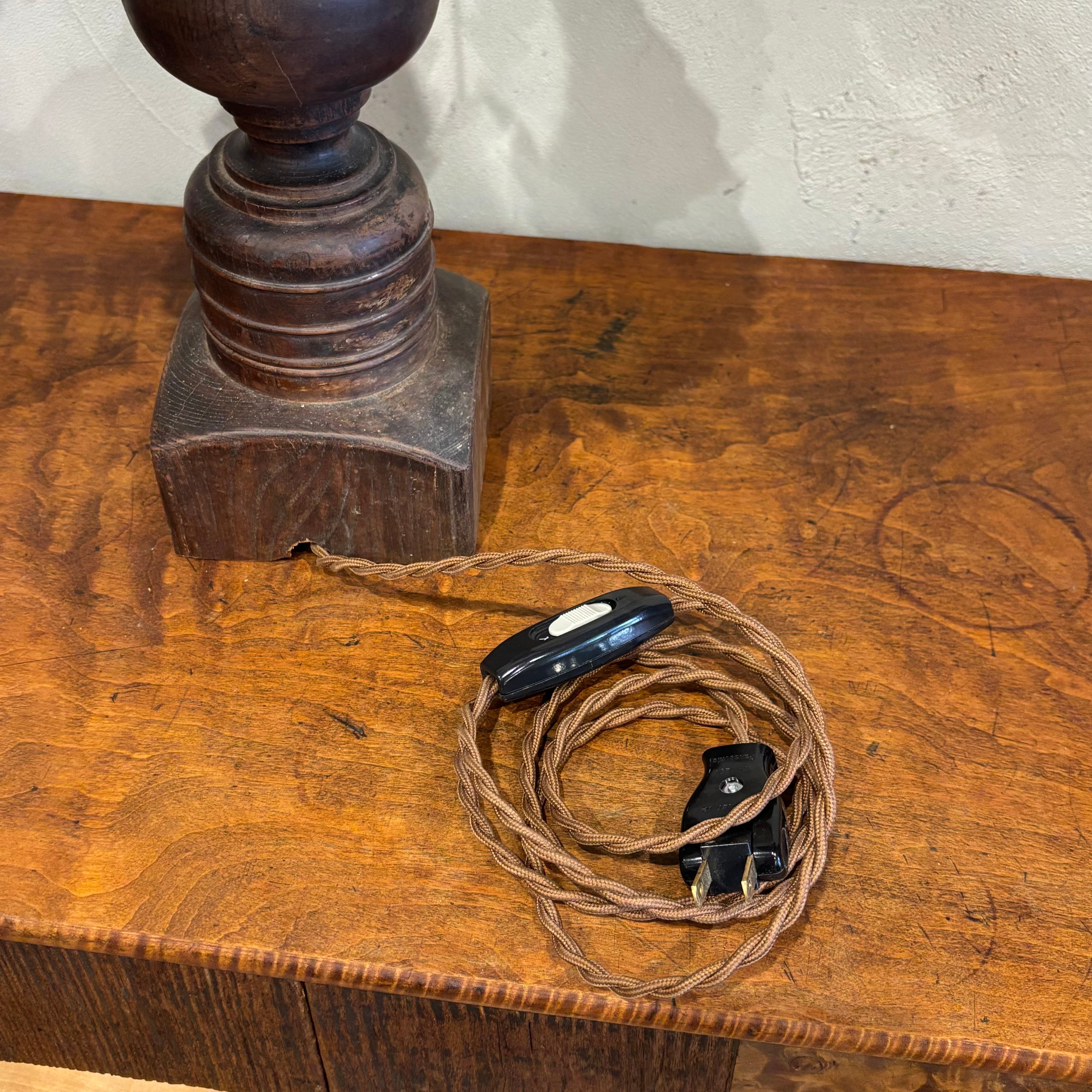 古いロクロをLED照明にしました シェードと配線は新品です 中間スイッチあり シェードサイズ直径約240mm 総高約400mm コード長さ約1730mm シェードカラーブラウン