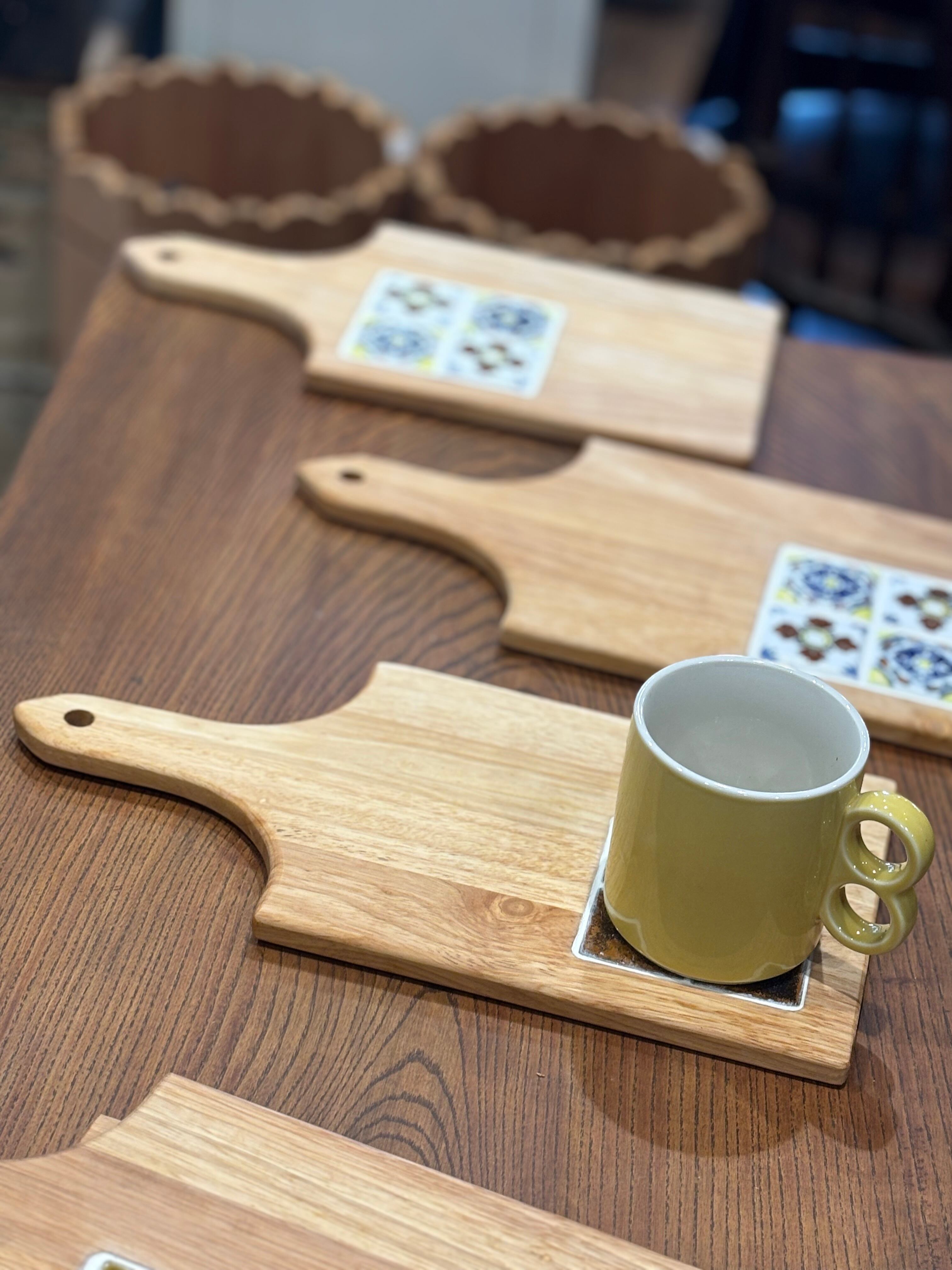 タイルボード 使い方は色々 鍋敷きにしたり、コースターにしたり お花を置いても 食品を直接置かないようにしてください 全体サイズ持ち手含むW340× D180×H12mm 送料無料は沖縄、離島の方は対象外です 通常の送料のご選択をお願いいたします