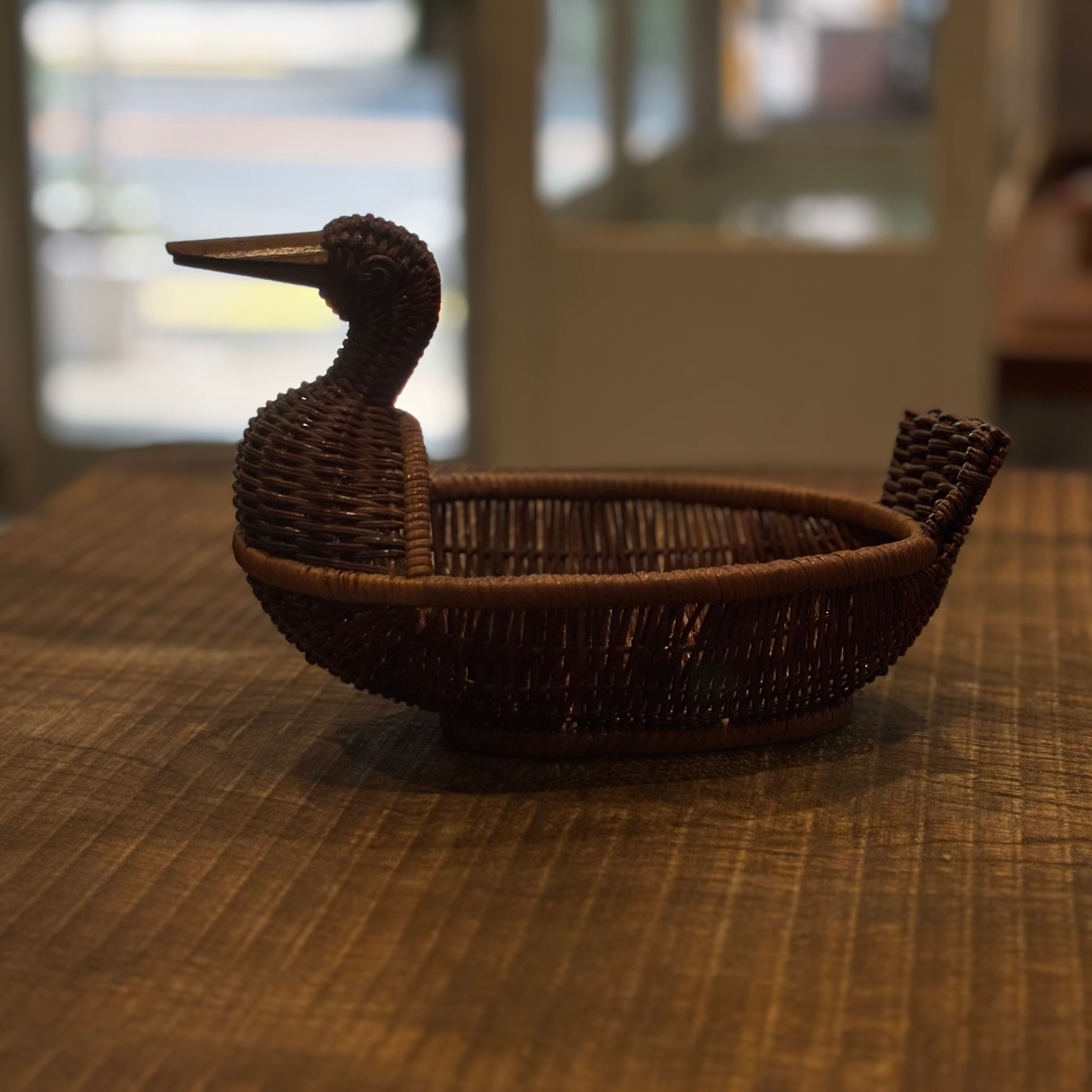 可愛い鳥のモチーフのカゴです 古い物なので汚れも少しございます サイズW230×D145×H160mm