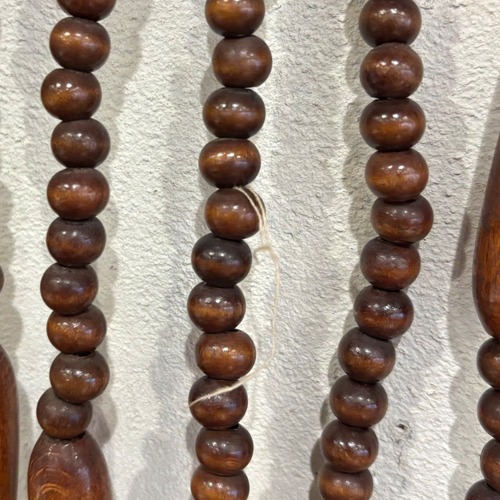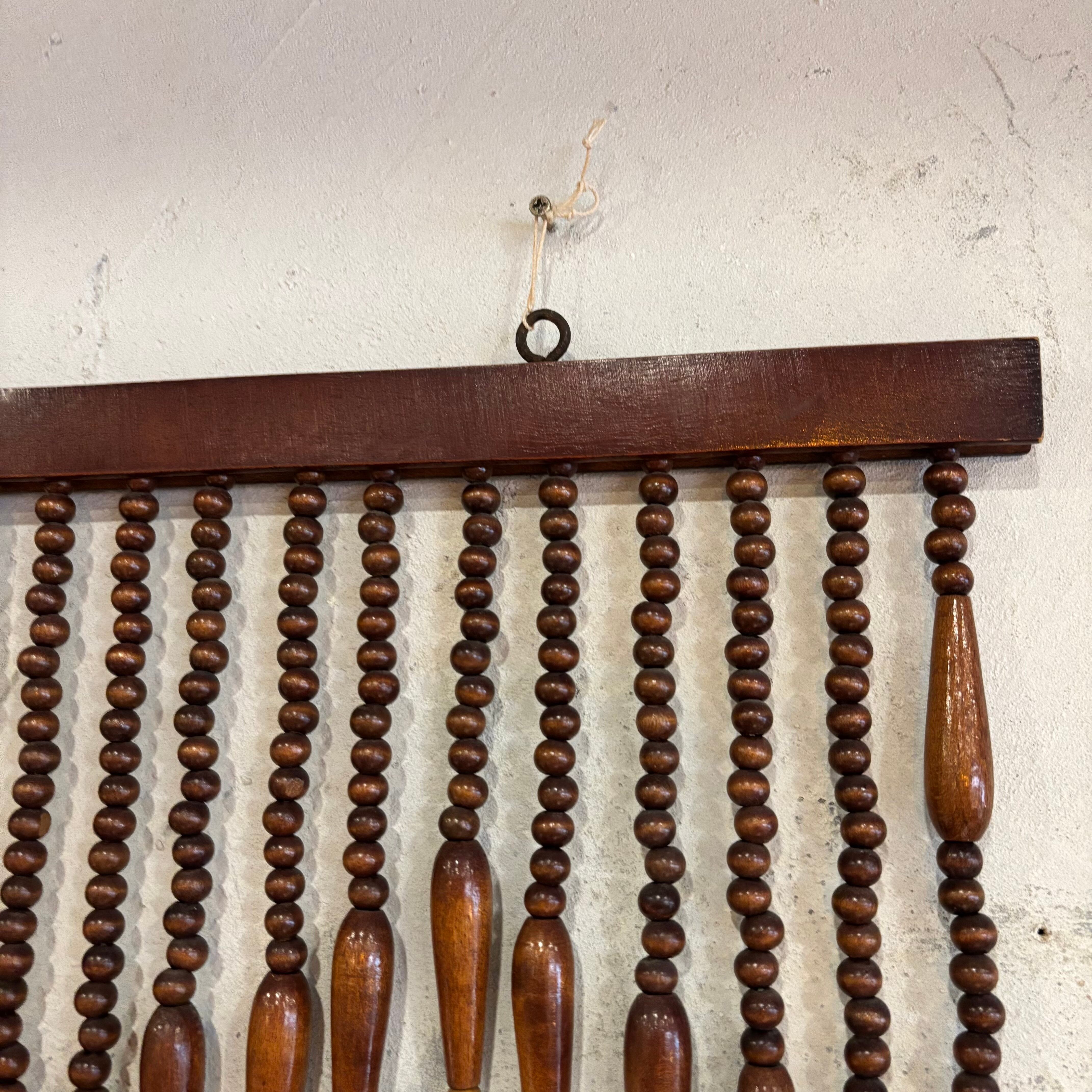 昭和レトロな珠のれんです 木製のビーズで模様を作ってます 所々ビーズの汚れやカケなどありますが、使用には問題ありません 横幅約850mm ピン間約620mm 長さ最長約810mm 長さ最短約270mm 沖縄、離島の方は通常の送料をご選択ください