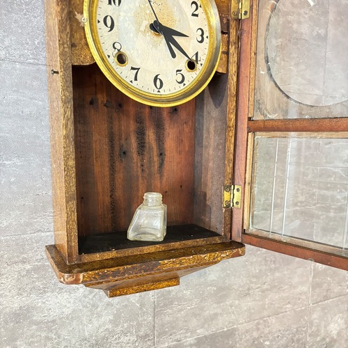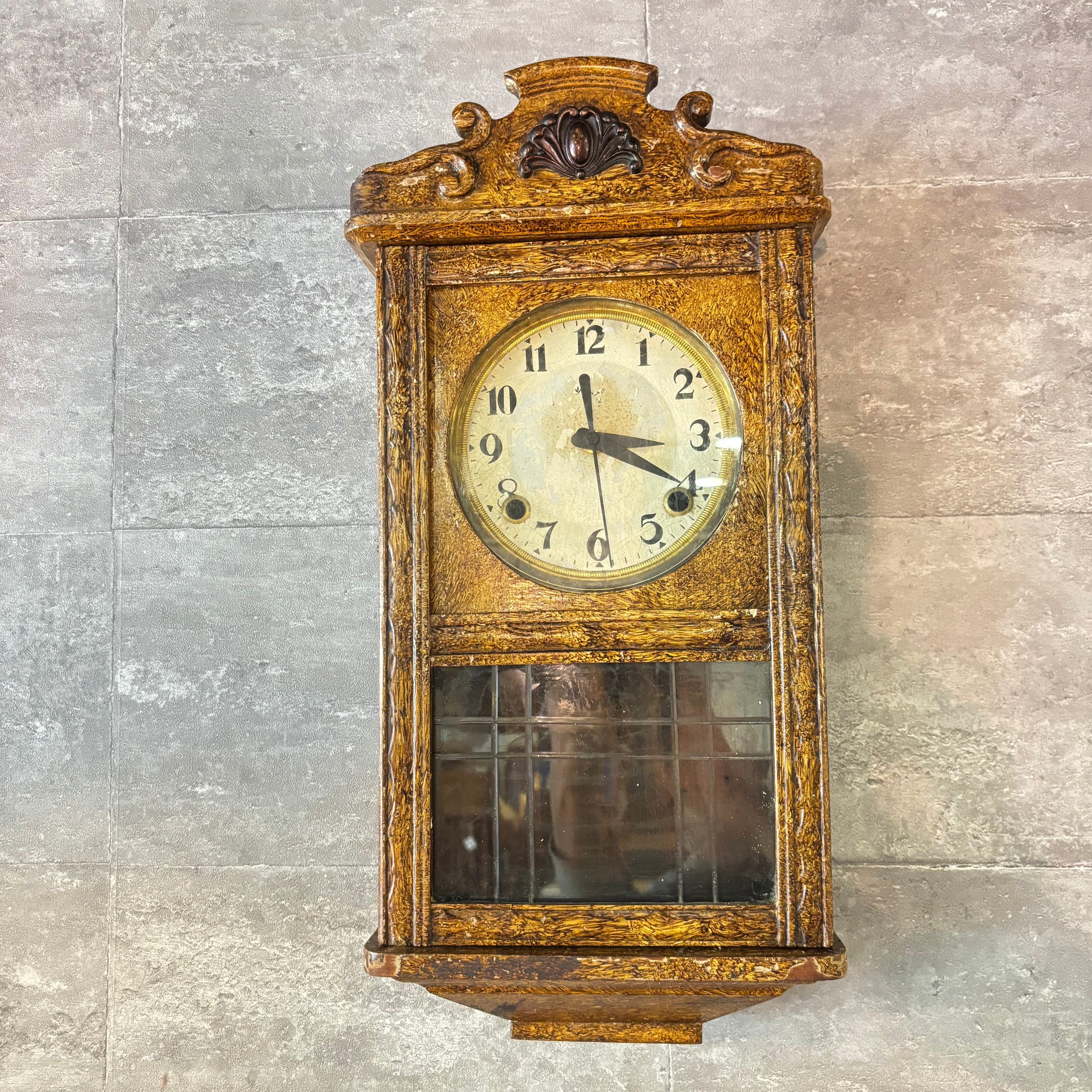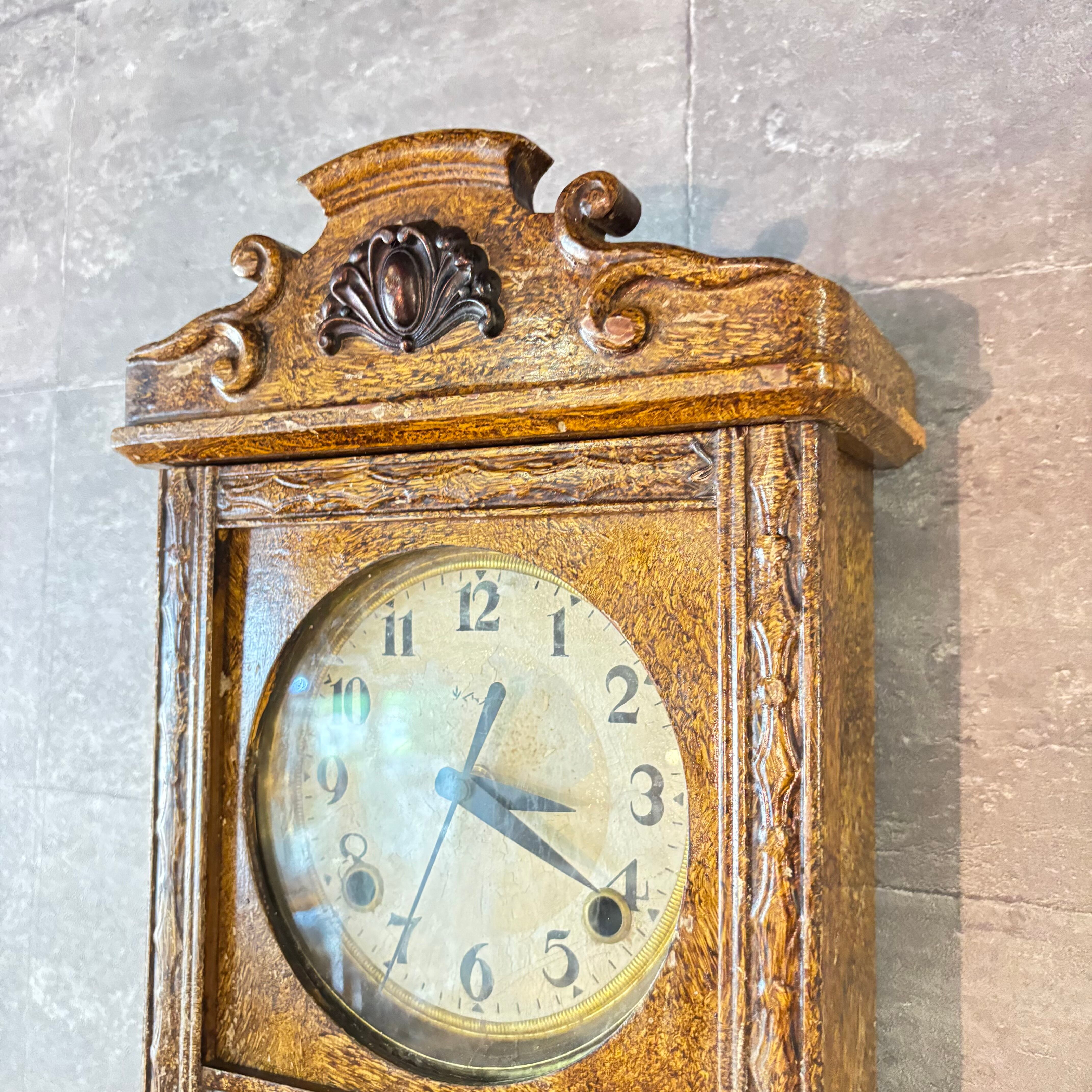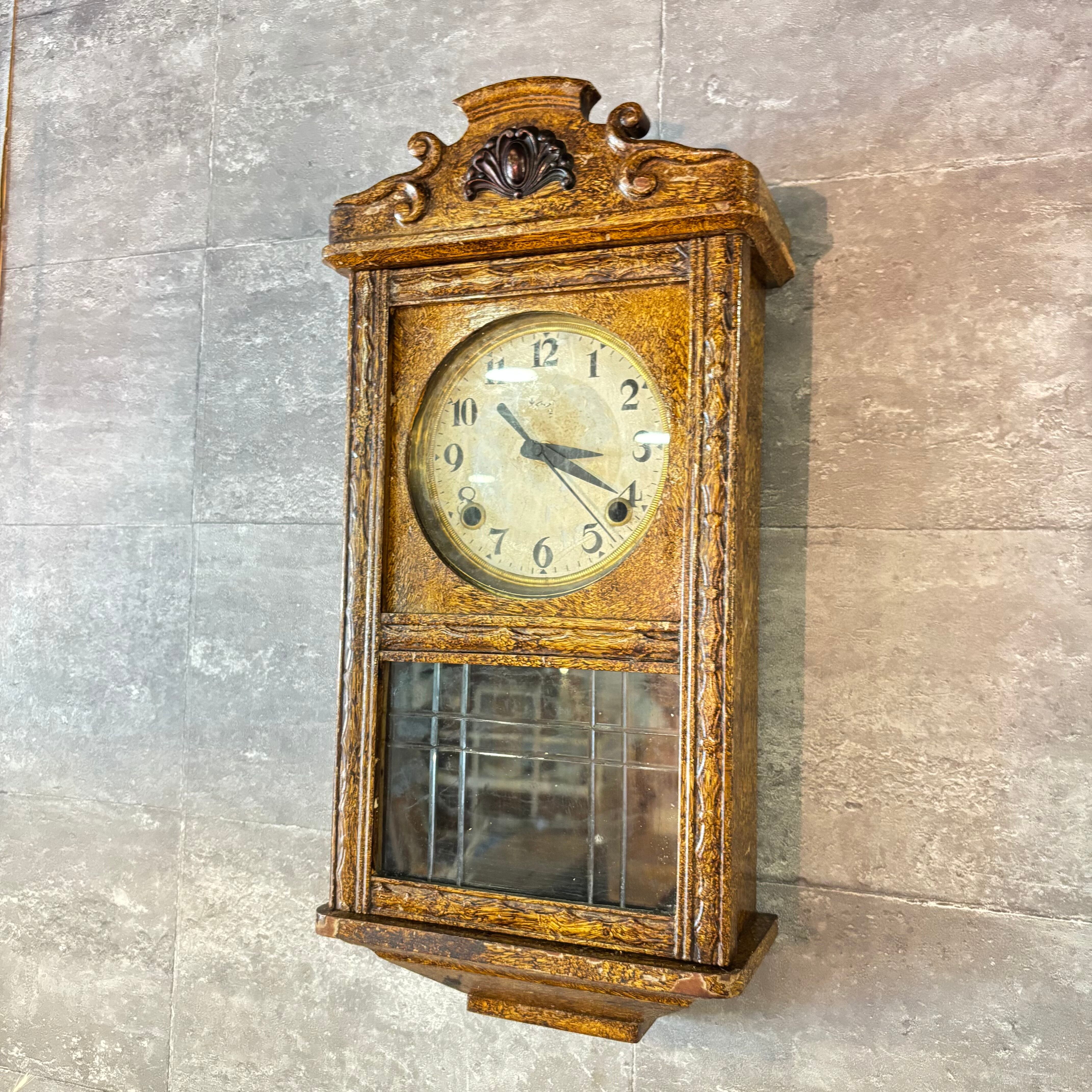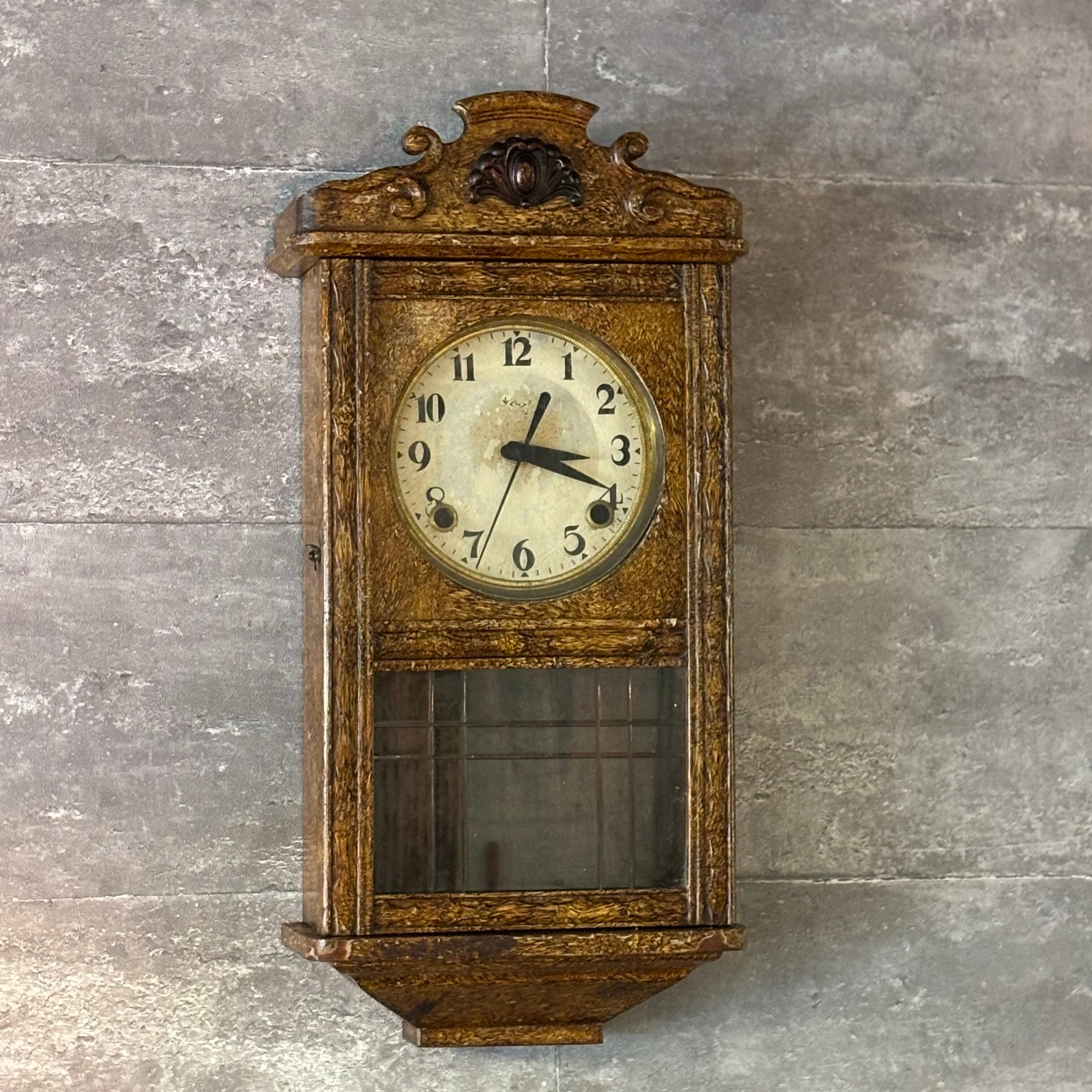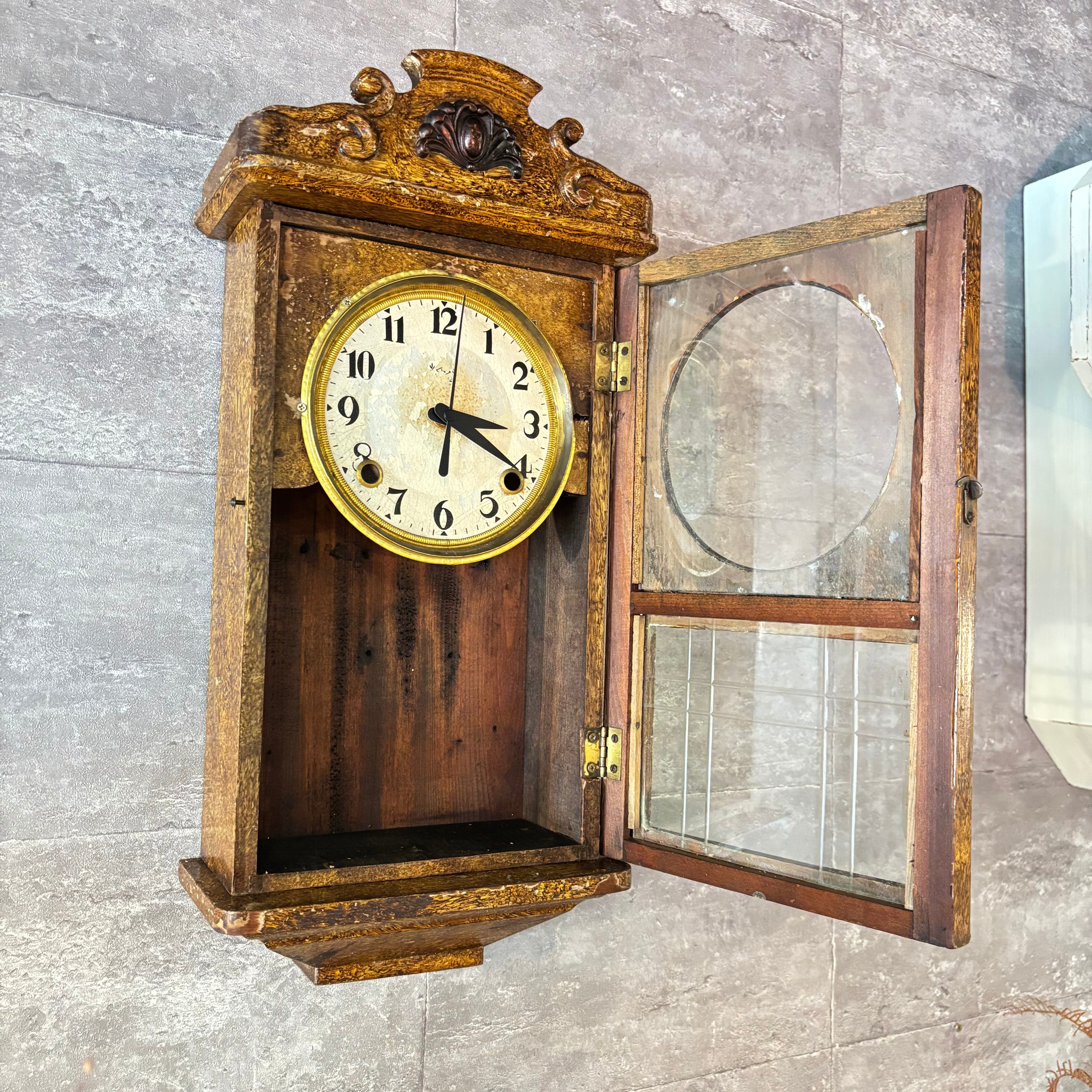 古い掛け時計のムーブメントと針を新品に交換 振り子がないものに変更していますのでカチカチと言う音もしません 落ち着いた色味でどの部屋にも合いそうなデザイン テスト電池1つ付き(単三電池) サイズH460×W220×D100mm 沖縄、離島の方は通常の送料をご選択ください