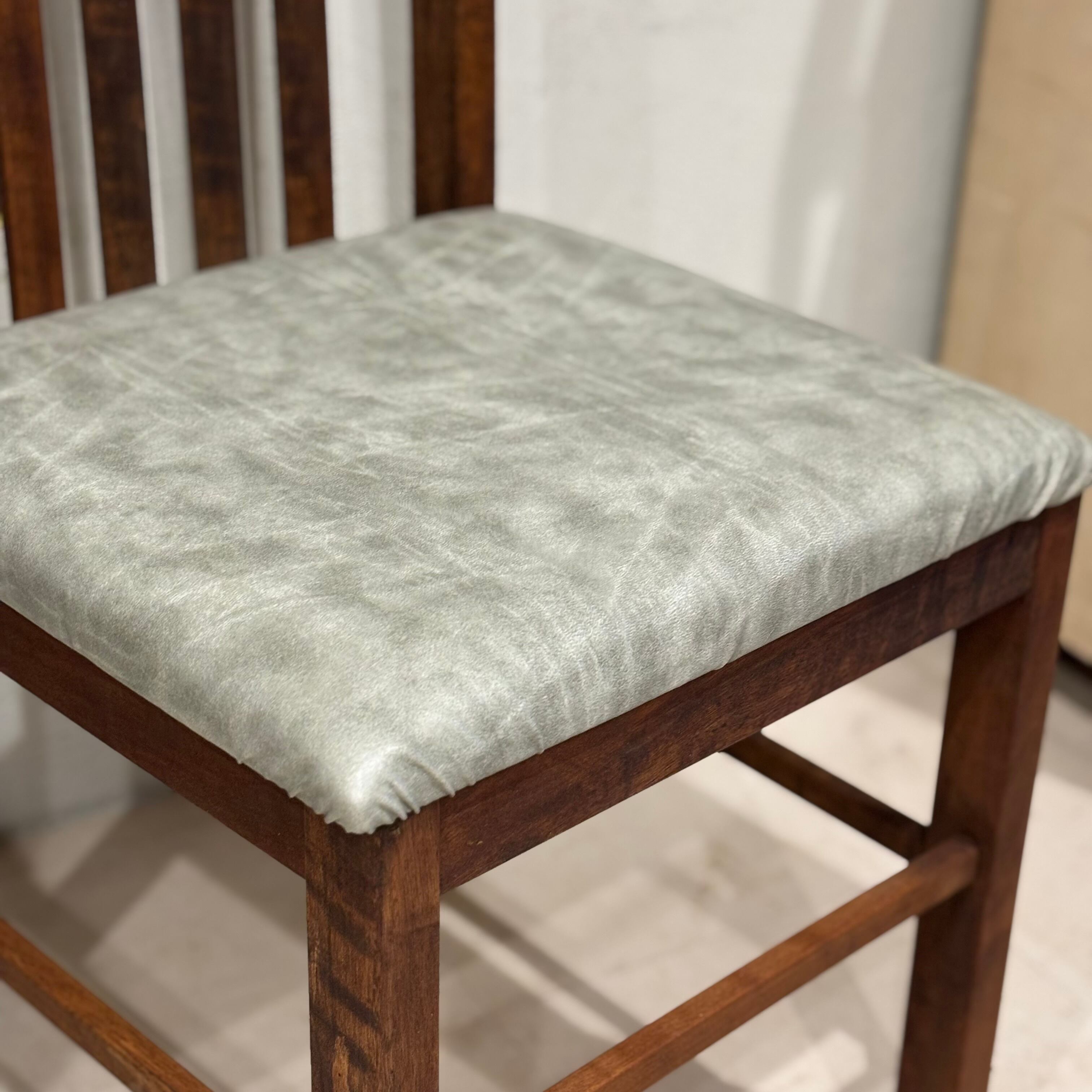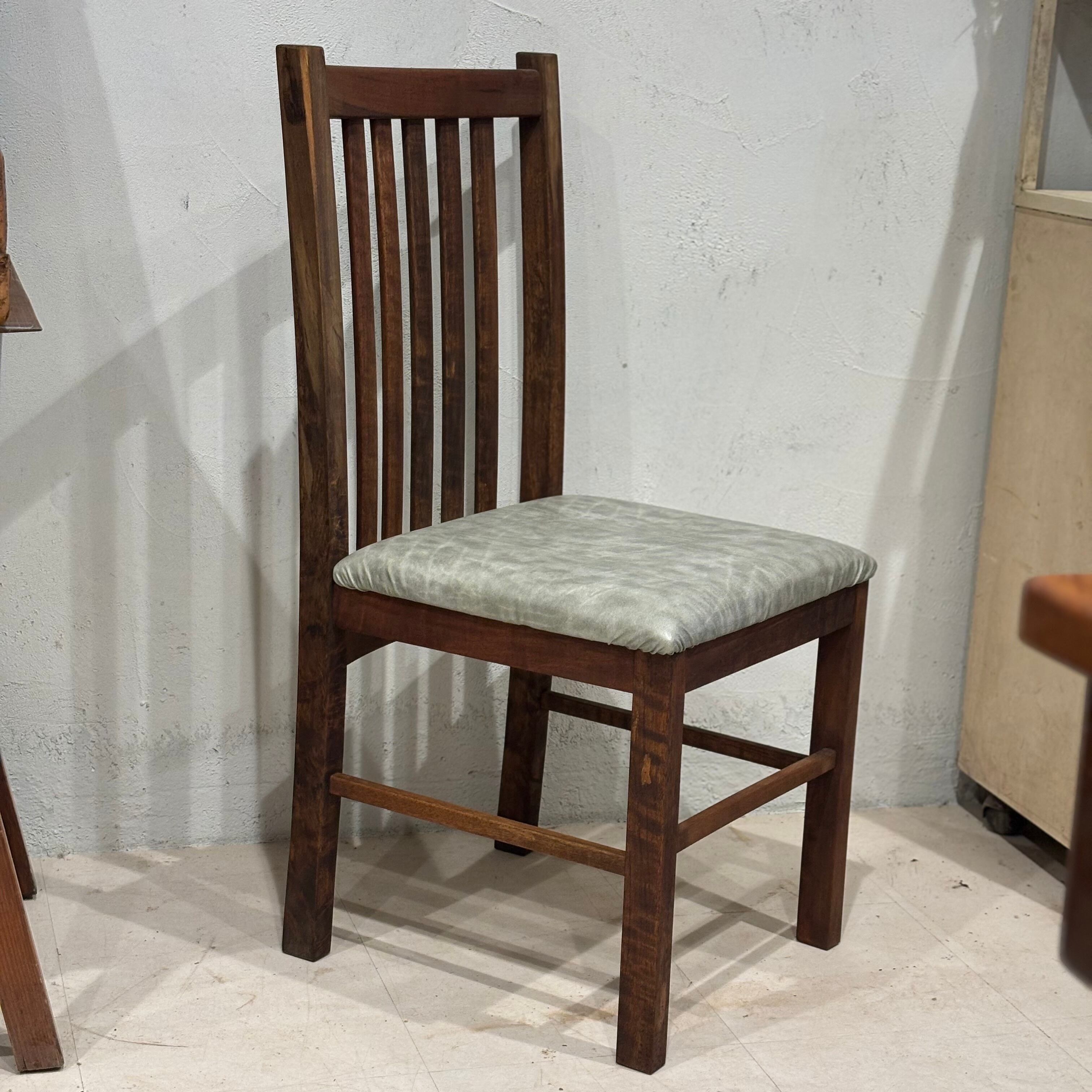 木製のチェア 座面を張り替えました フェイクレザー 骨組みはシンプルで使いやすいデザイン 3種類の座面をご用意しております こちらはグレー サイズW410×D420×H900mm 座面までの高さ430mm