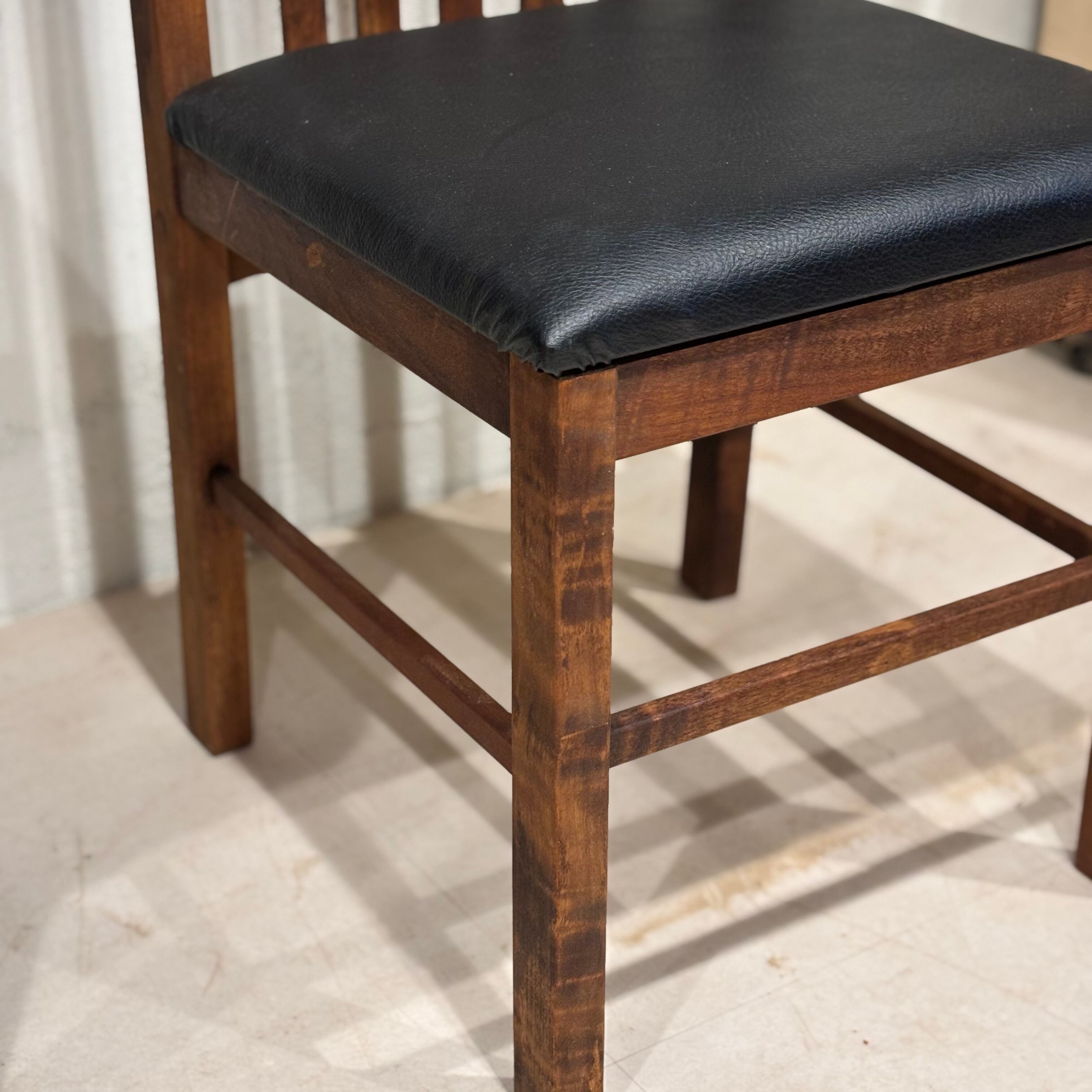 木製のチェア 座面を張り替えました フェイクレザー 骨組みはシンプルで使いやすいデザイン 3種類の座面をご用意しております こちらはブラック サイズW410×D420×H900mm 座面までの高さ430mm