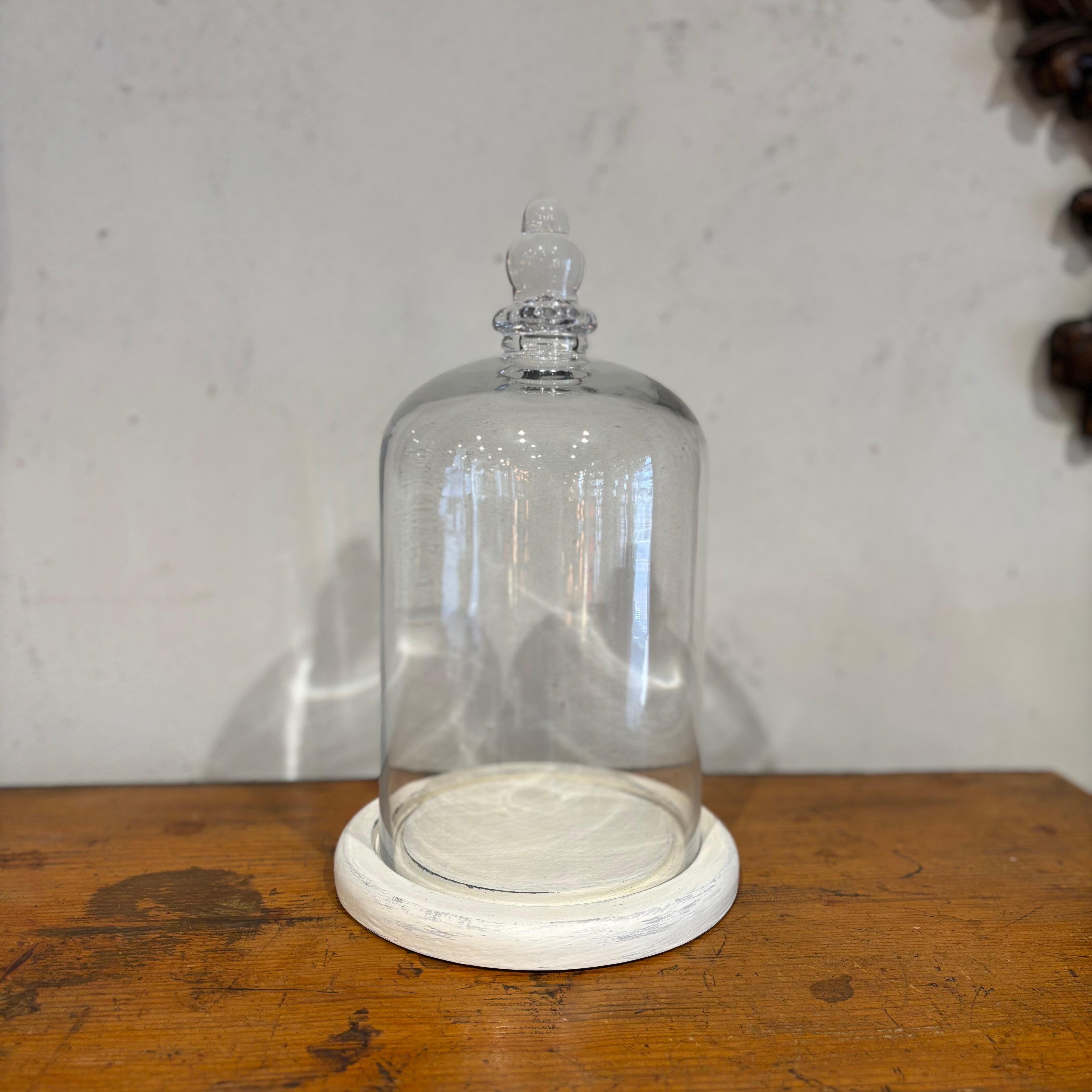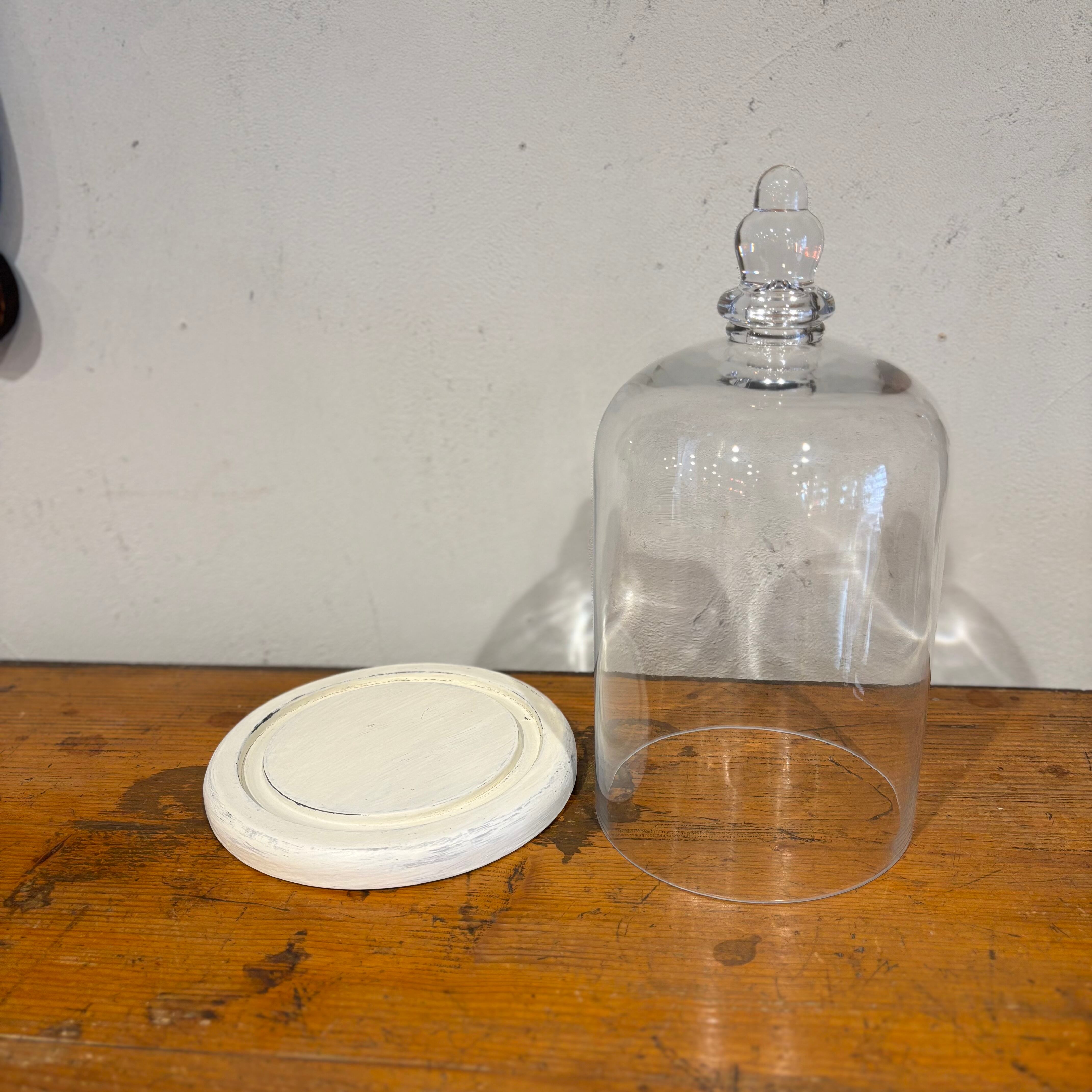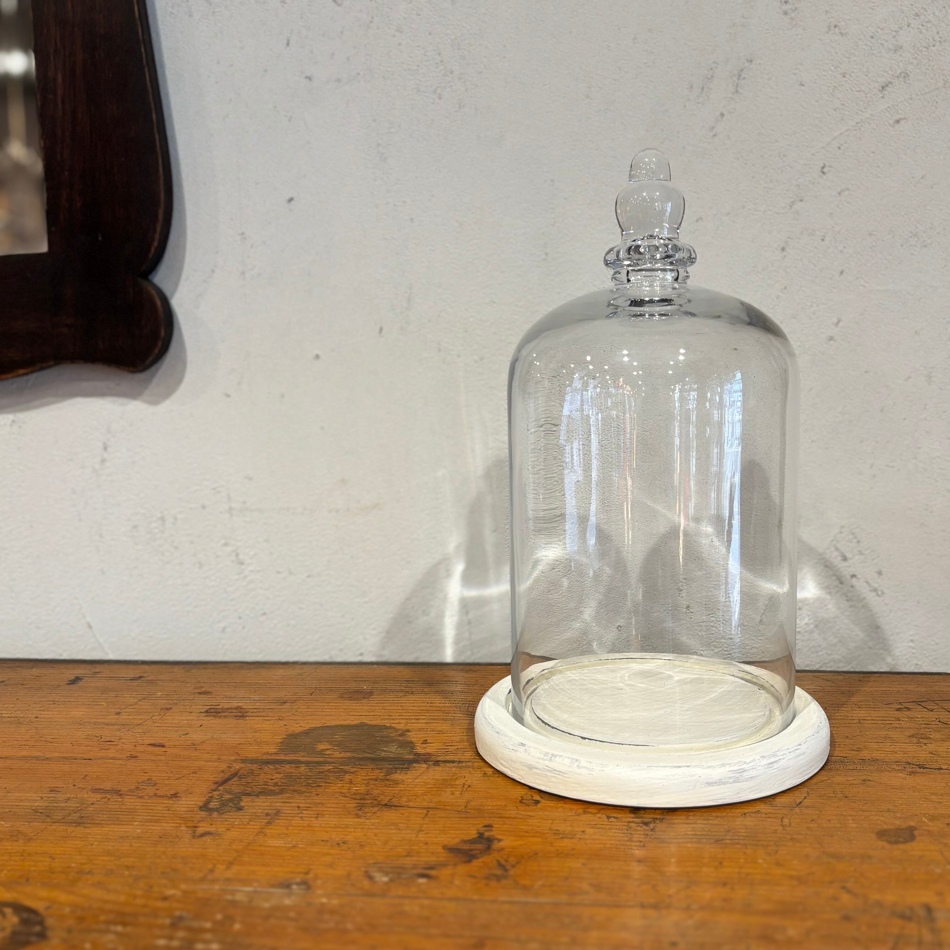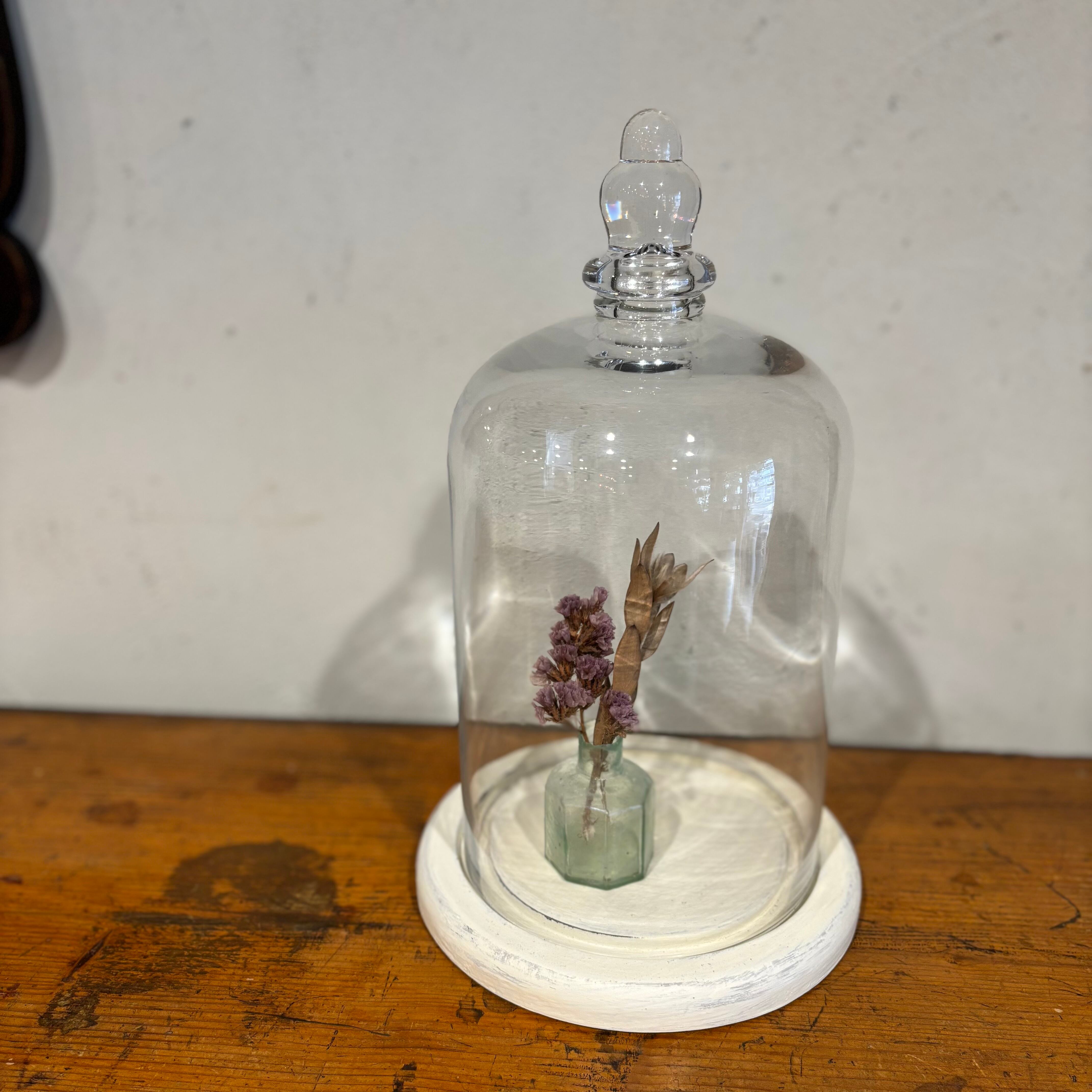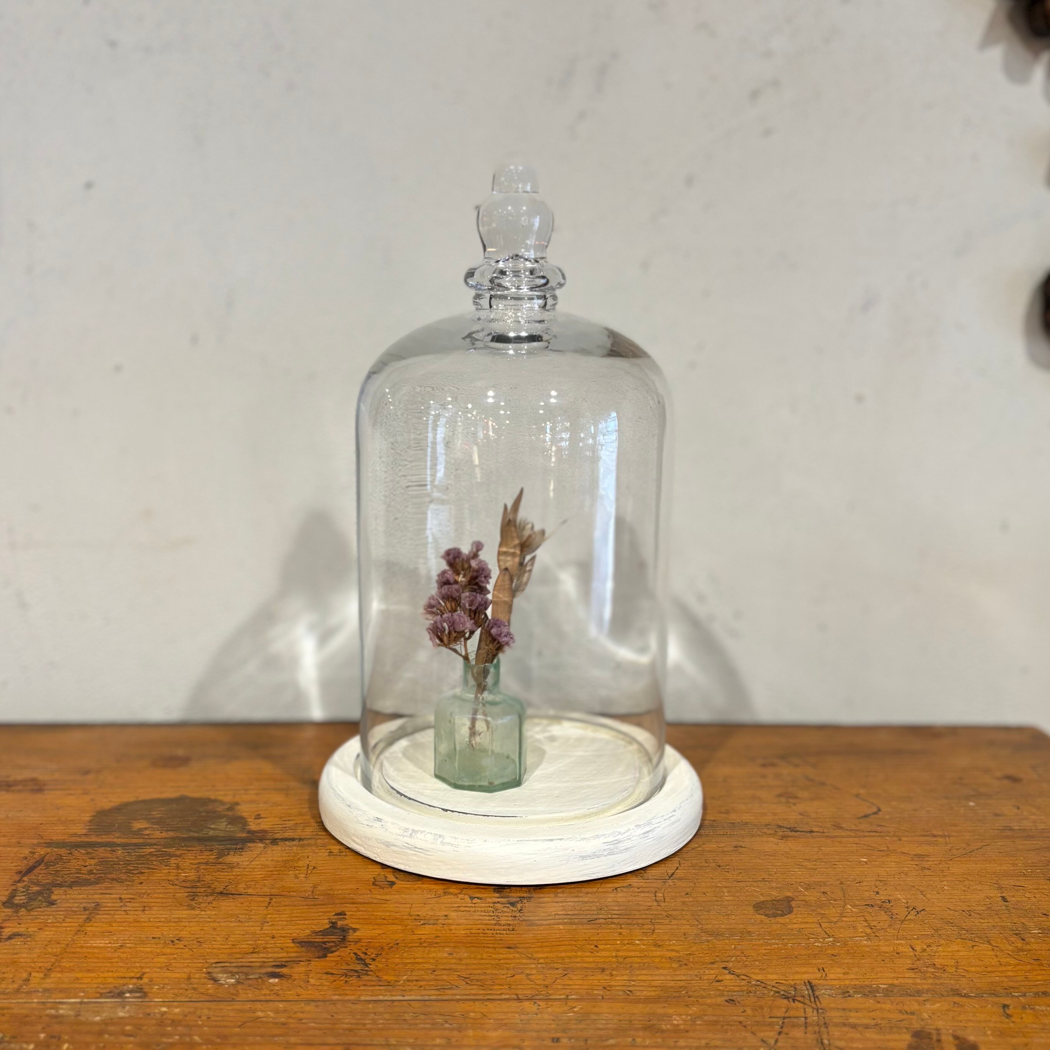 ガラスドーム 中にドライフラワーや小物を飾っていただけます 土台はシャビー塗装 サイズ ガラス直径148mm 土台直径183mm 総高310mm 土台の色違いもございます 沖縄、離島の方は通常の送料をご選択ください
