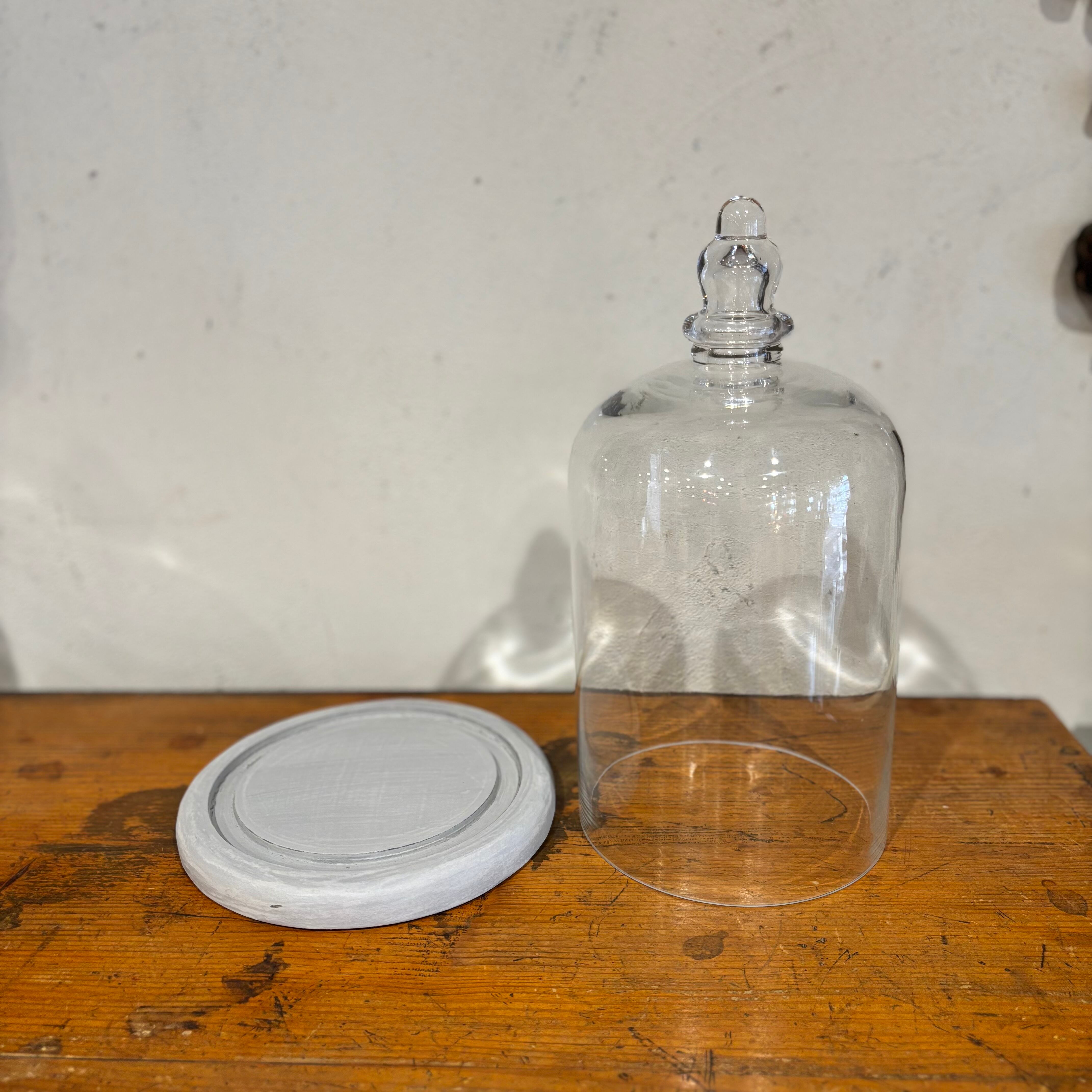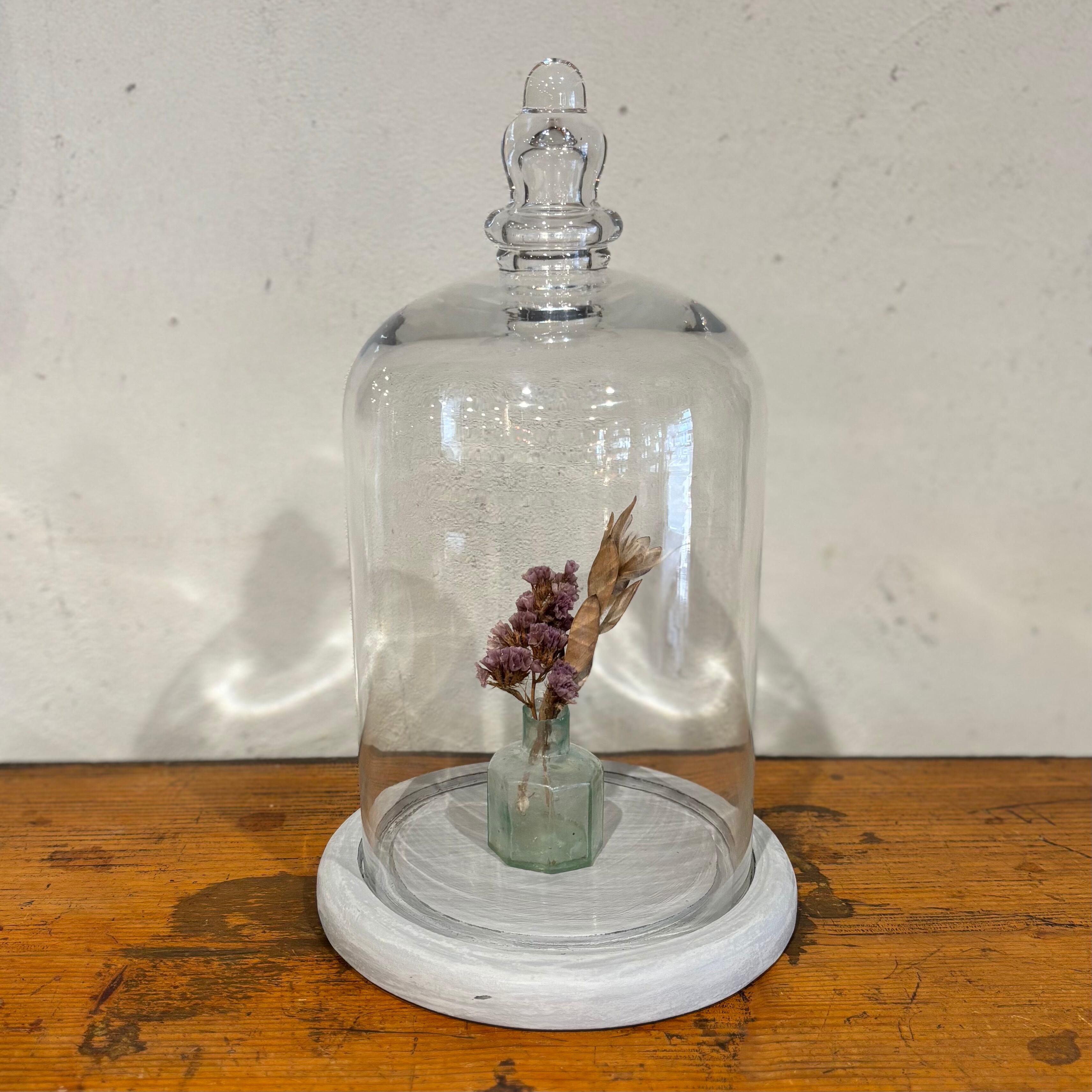ガラスドーム 中にドライフラワーや小物を飾っていただけます 土台はシャビー塗装 サイズ ガラス直径148mm 土台直径183mm 総高310mm 土台の色違いもございます 沖縄、離島の方は通常の送料をご選択ください