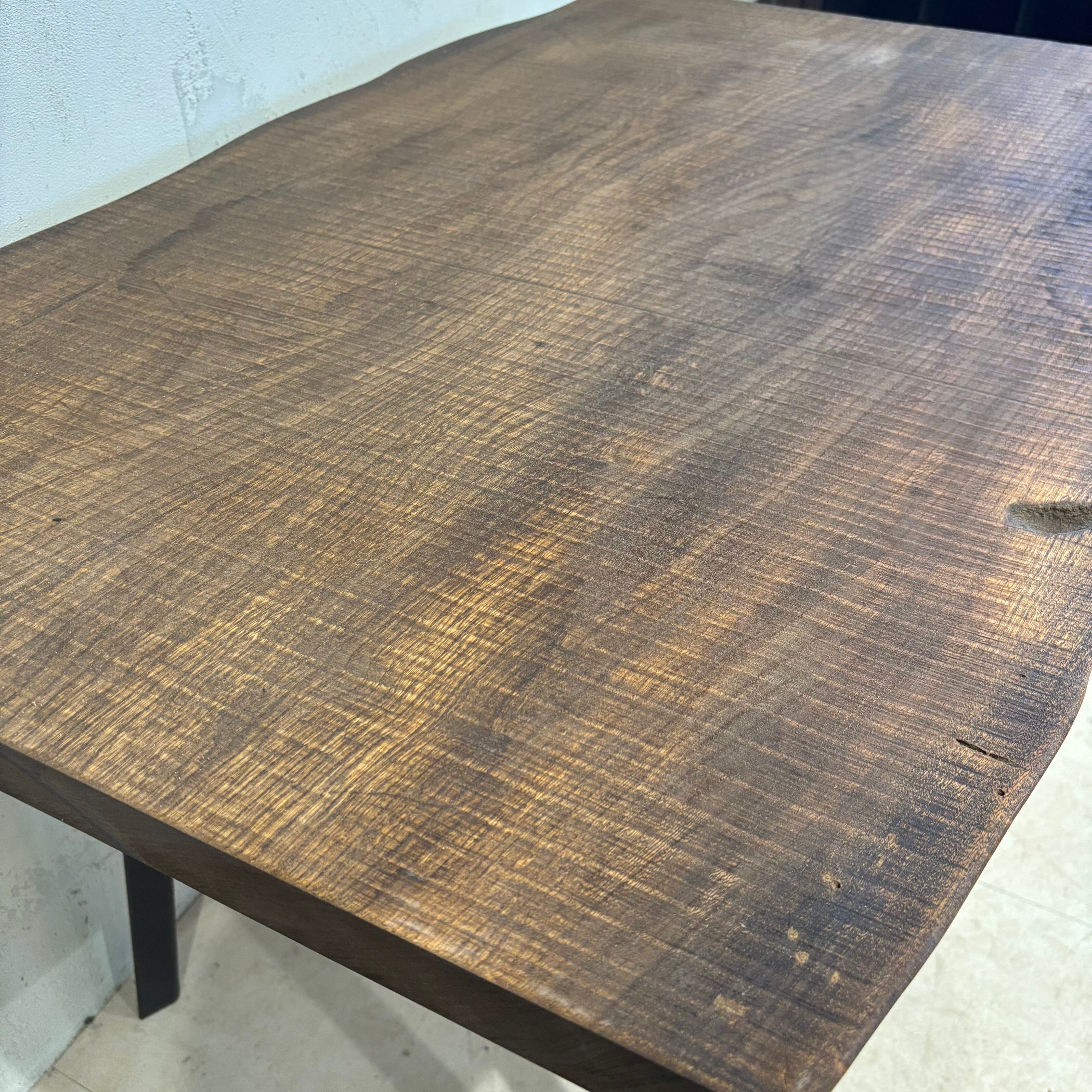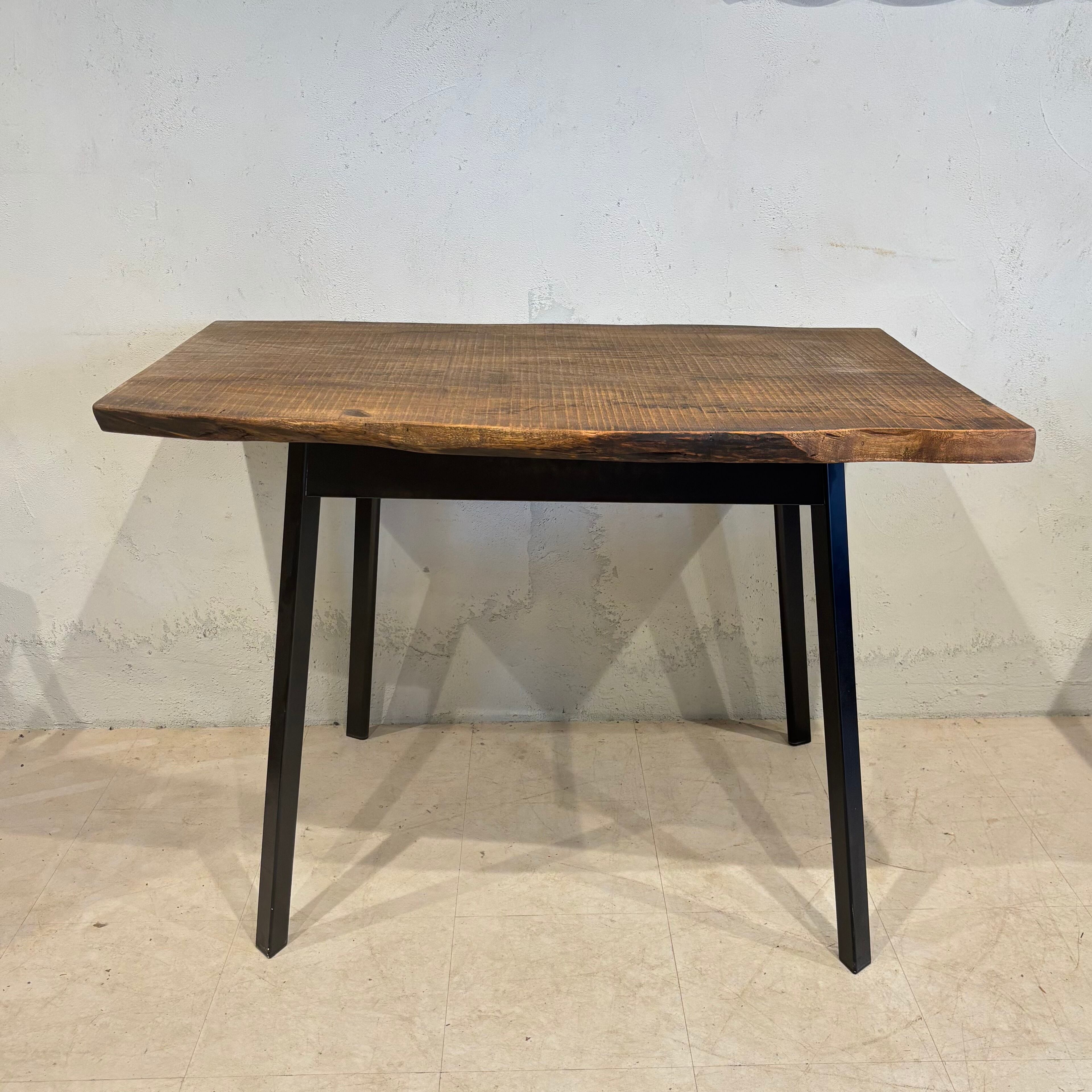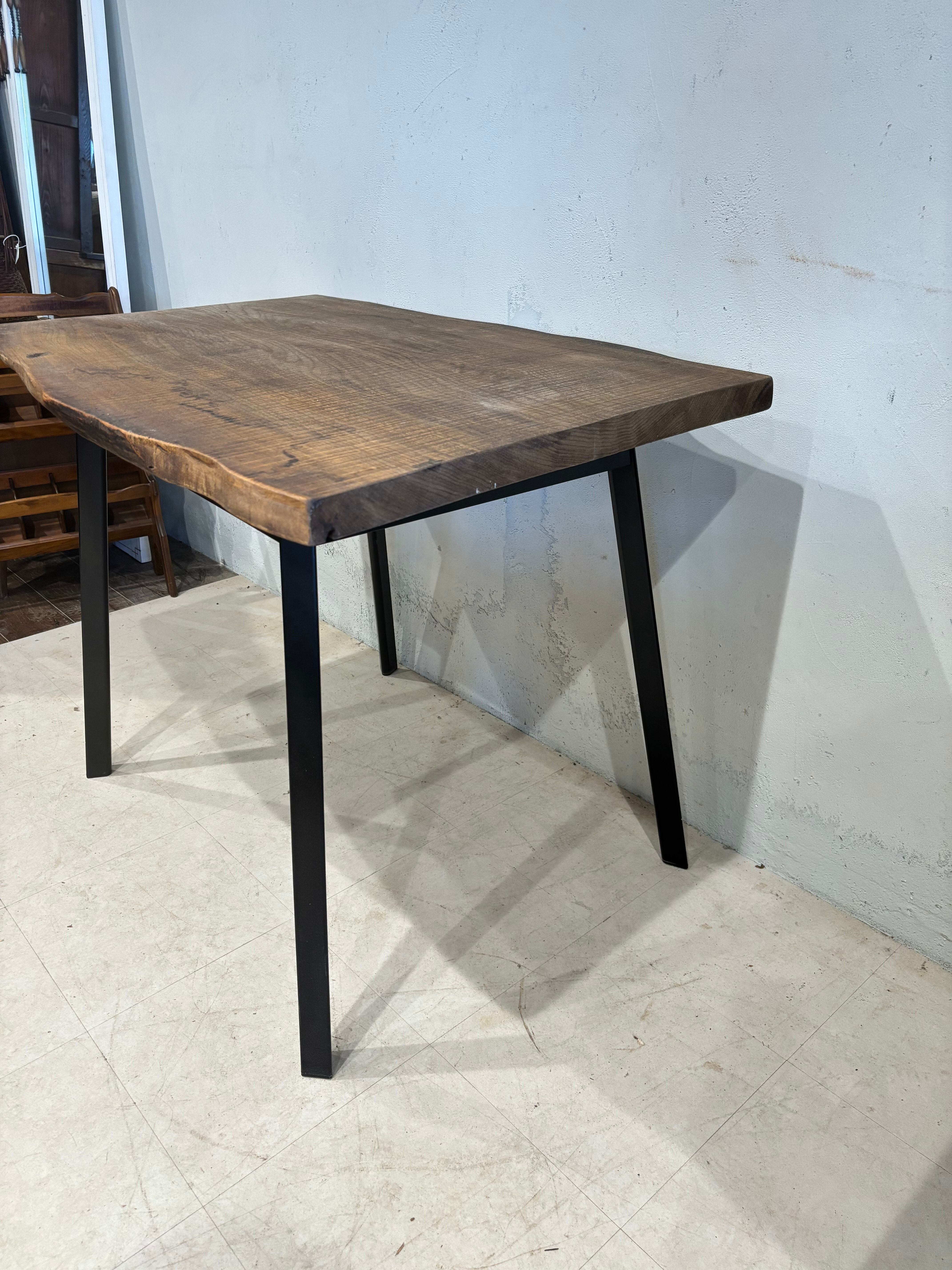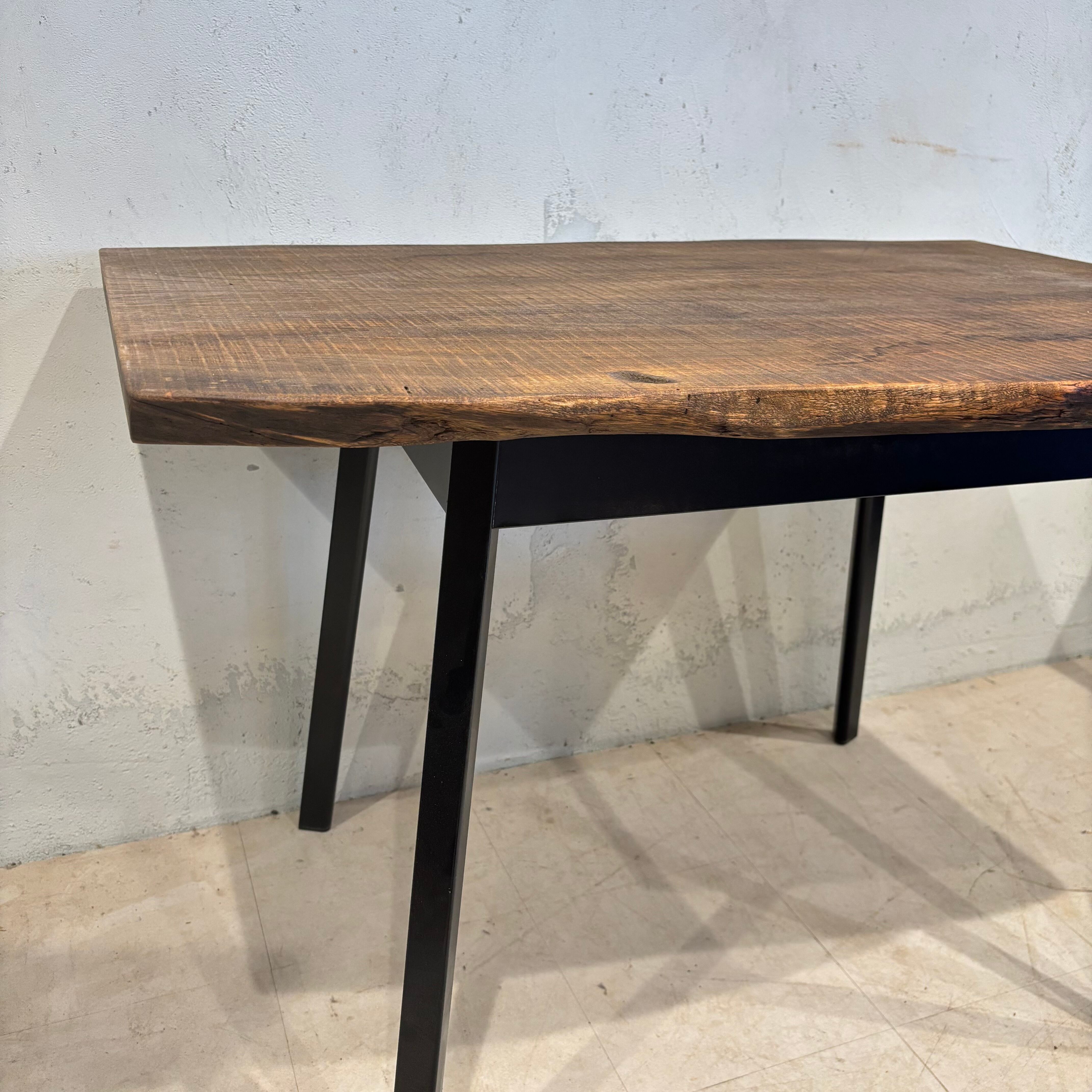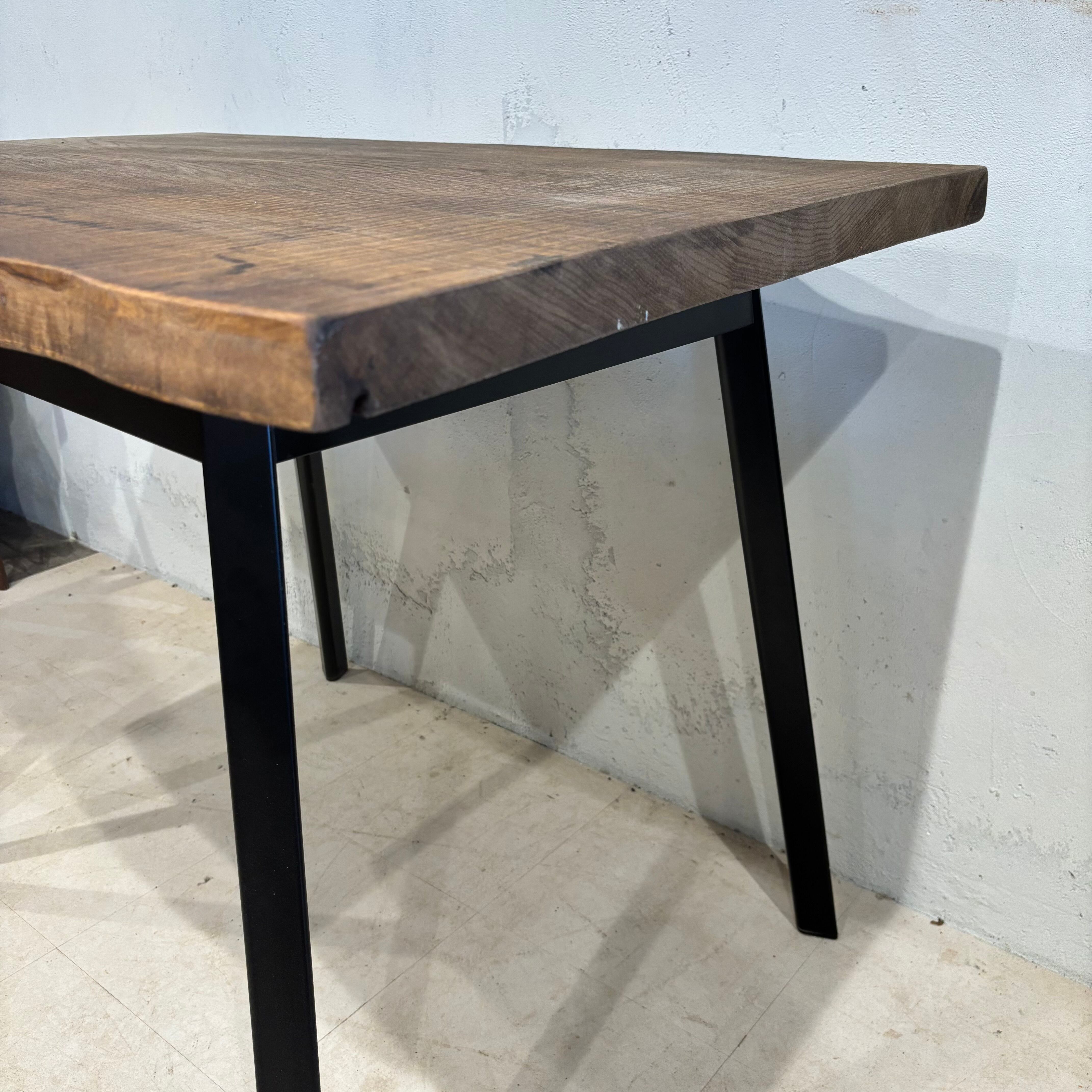 古いアイアン脚に一枚板を組み合わせたテーブル 耳付きの無垢材の一枚板でこのお値段はお買い得です サイズW1063×D720×H755mm