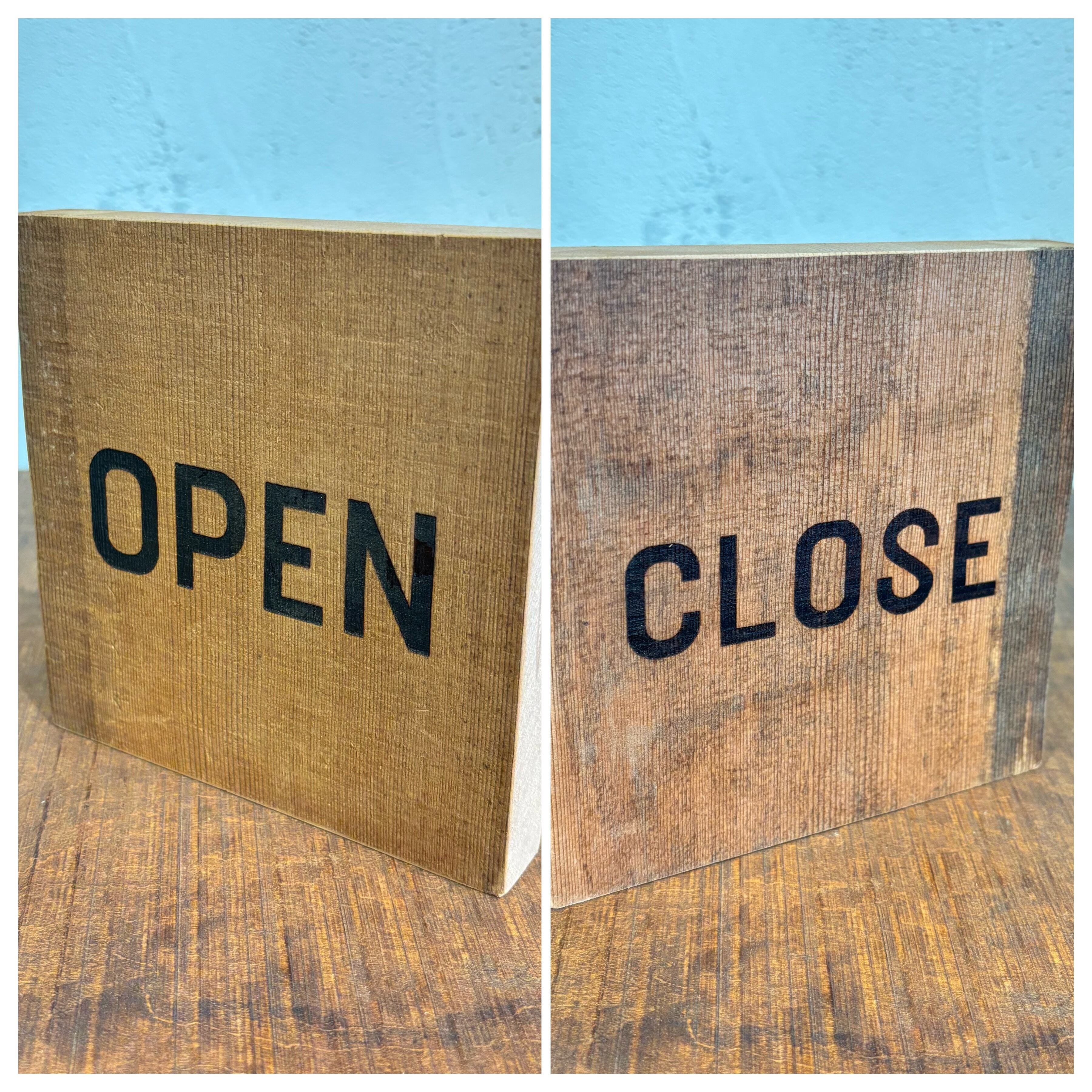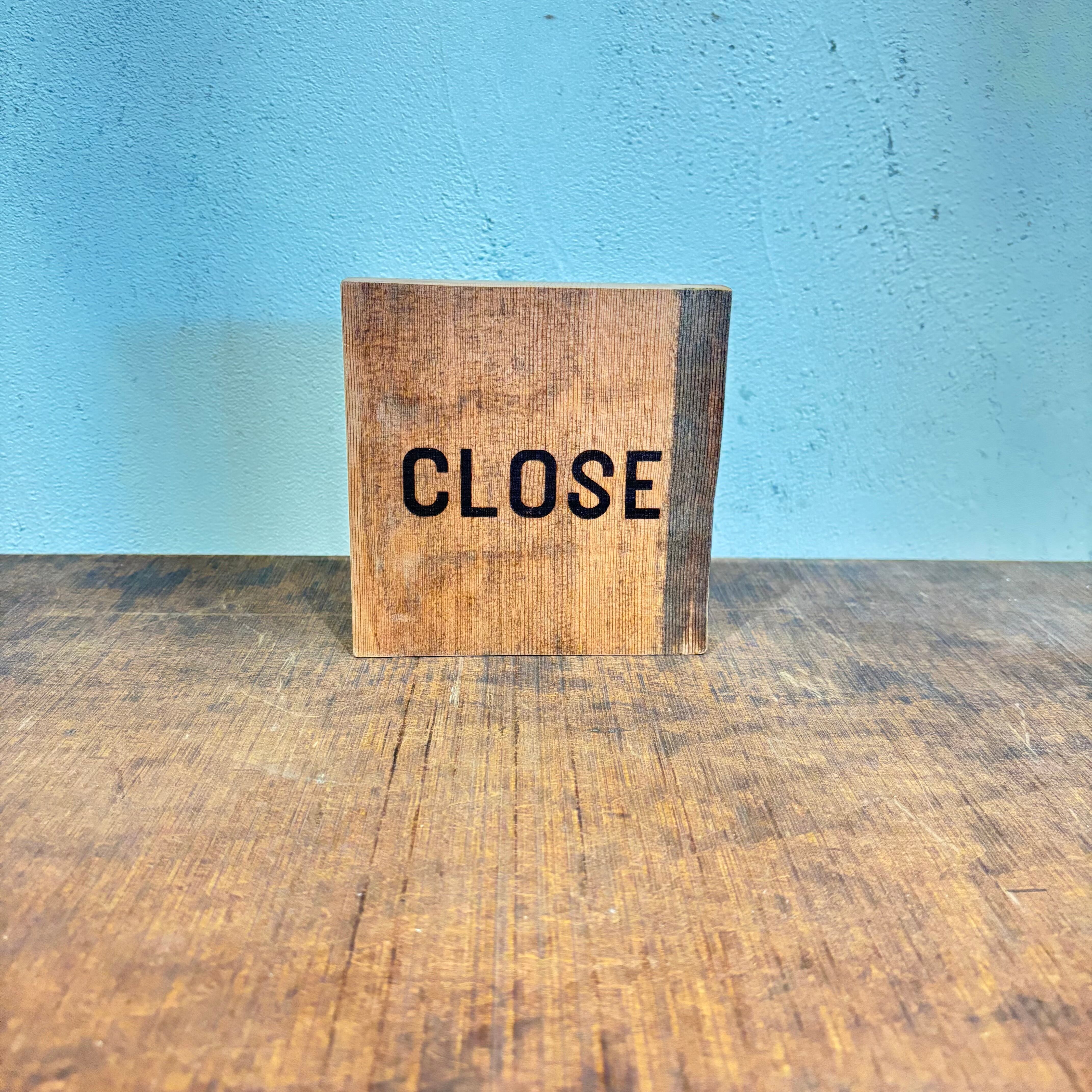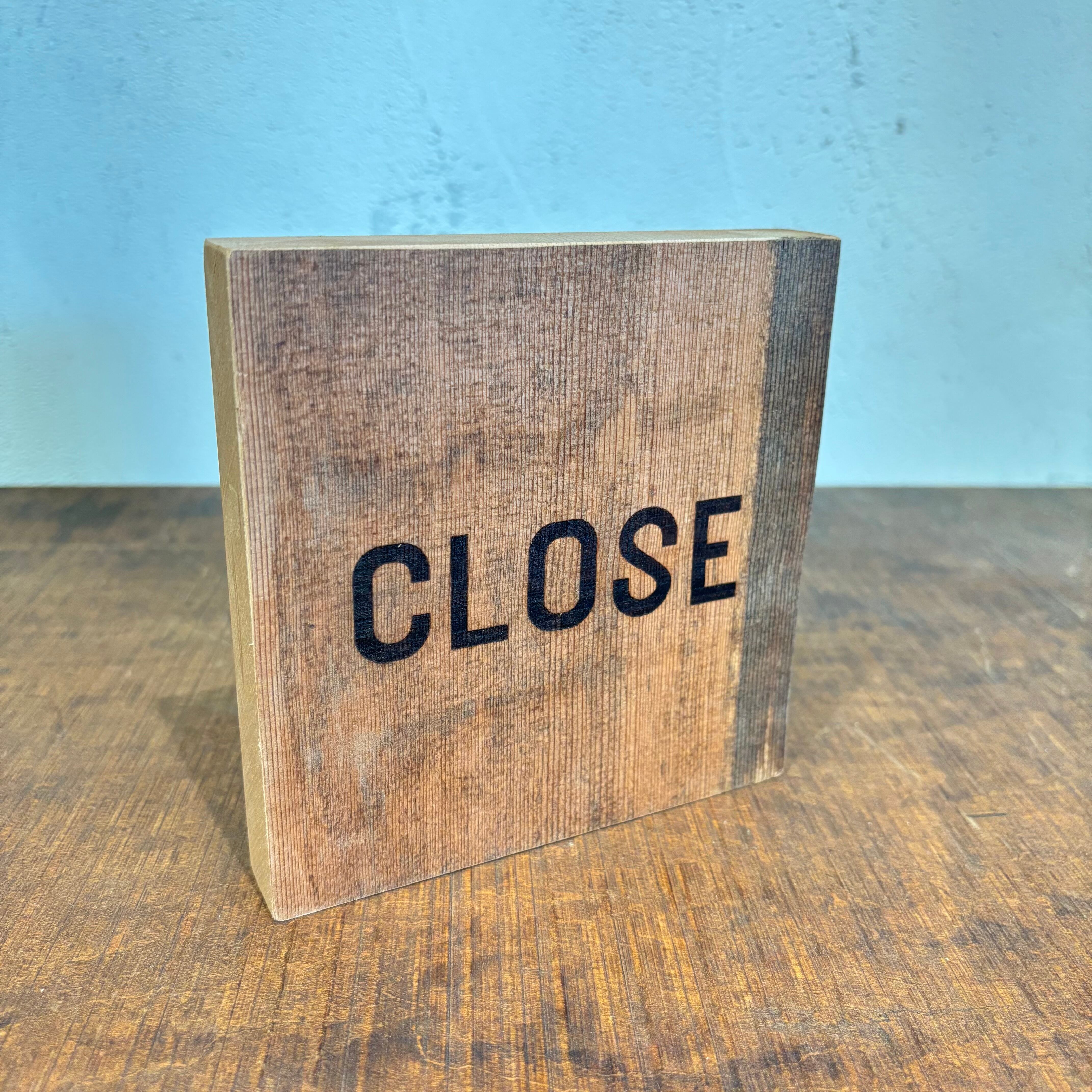 表裏でOPENとCLOSEになっております 自立するのでドアや窓のところにちょっと置いてもいいと思います サイズW 135×D20×H140mm レーザー加工で文字入れしております レーザー部分を擦るとコゲが他の部分に移ることがあります 擦らないようにお気をつけください