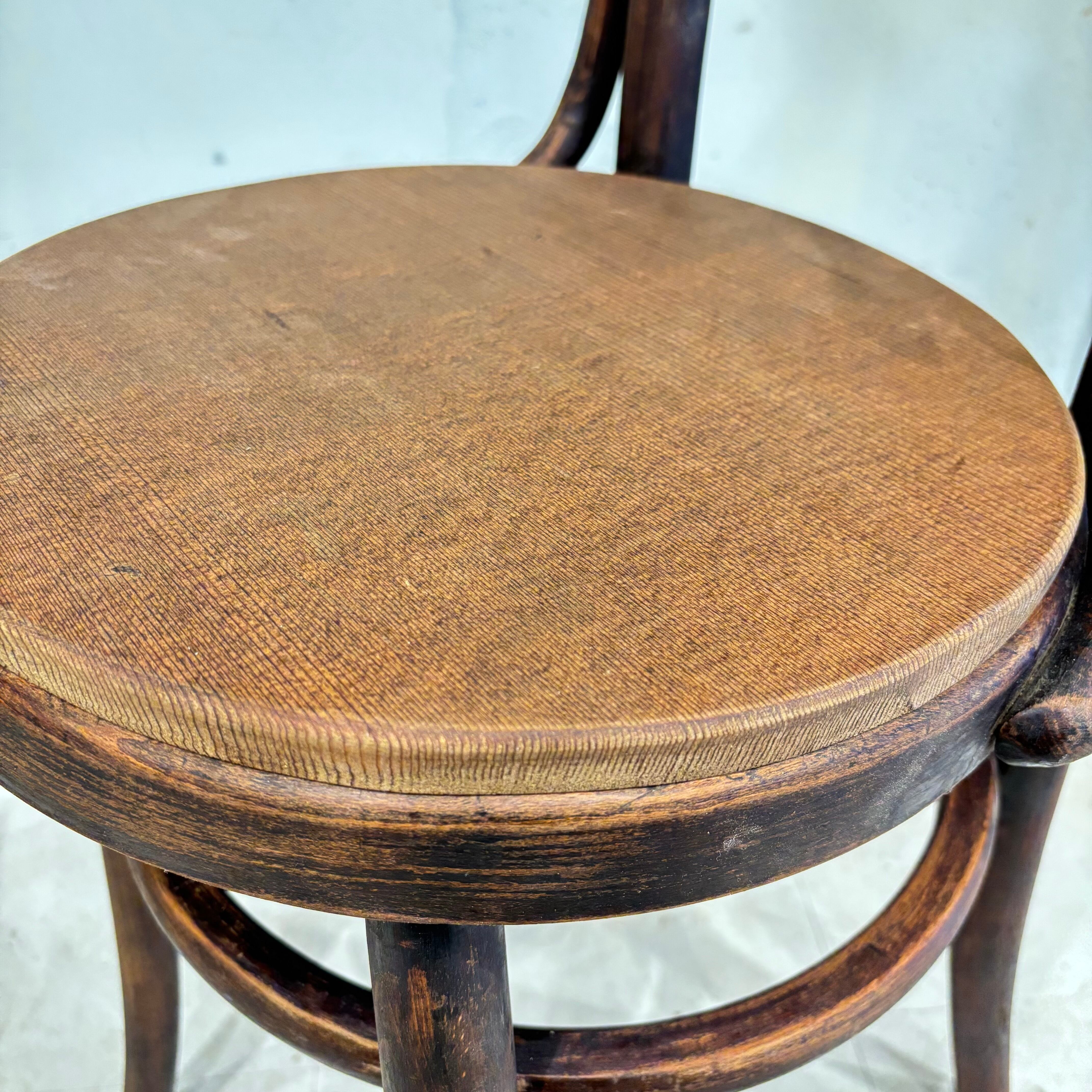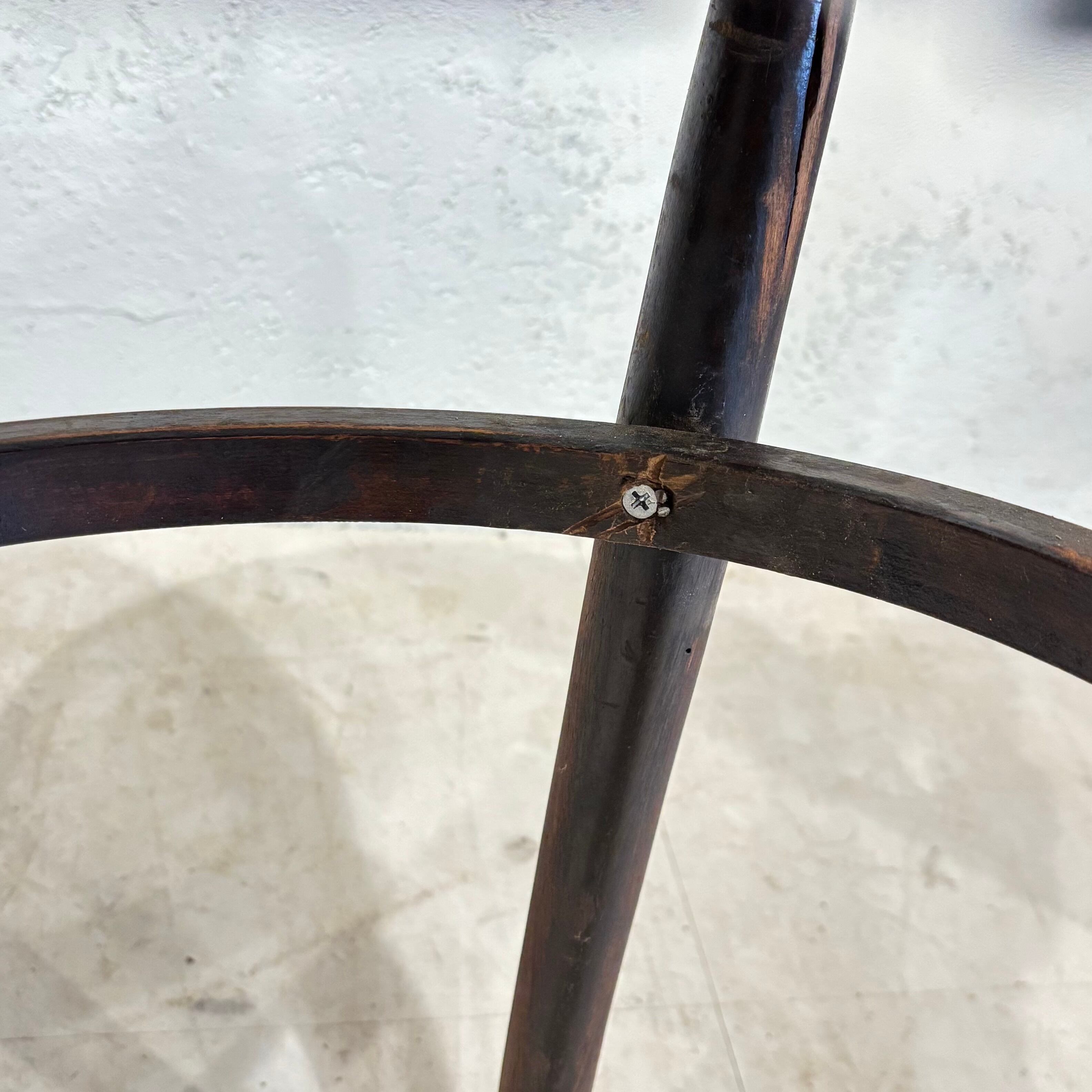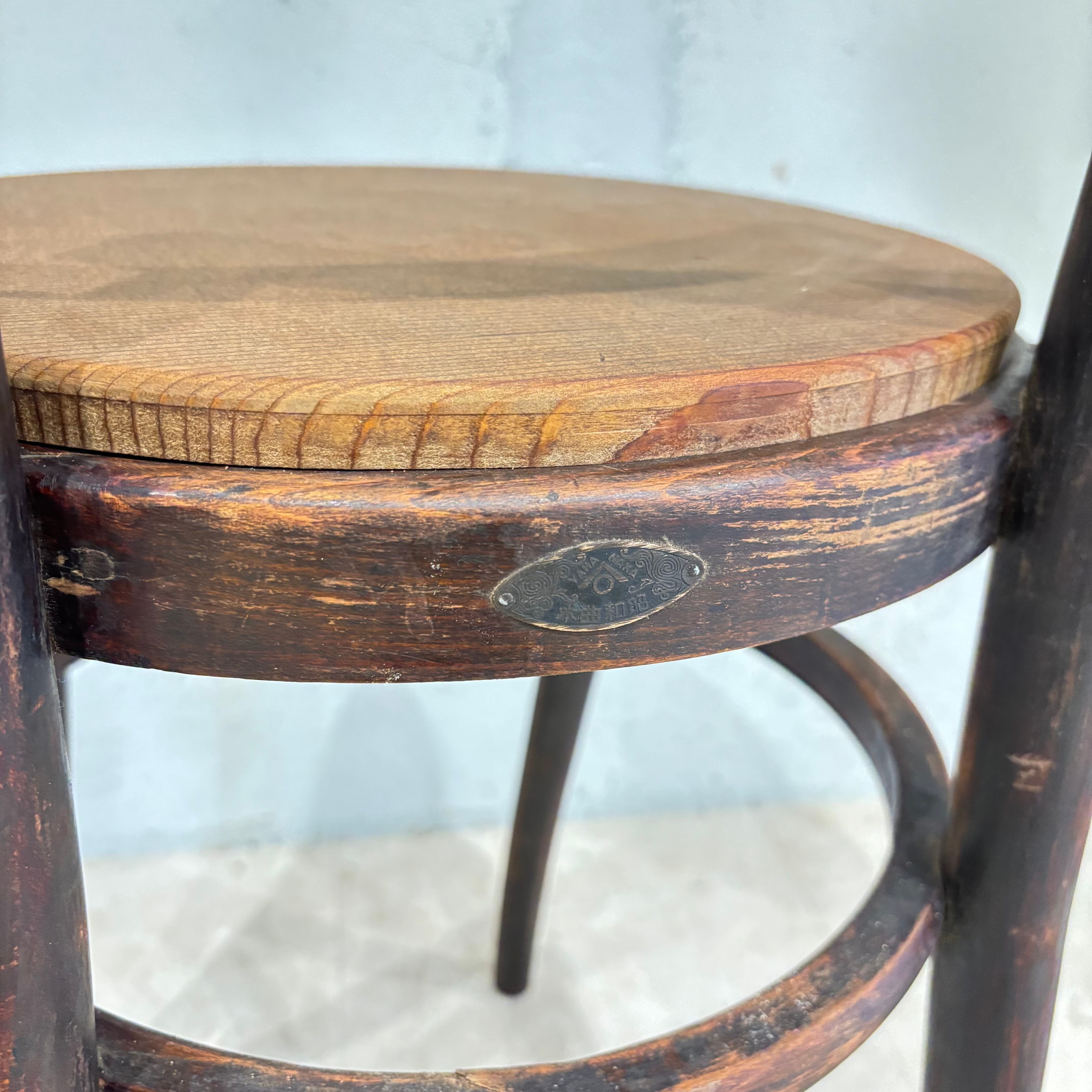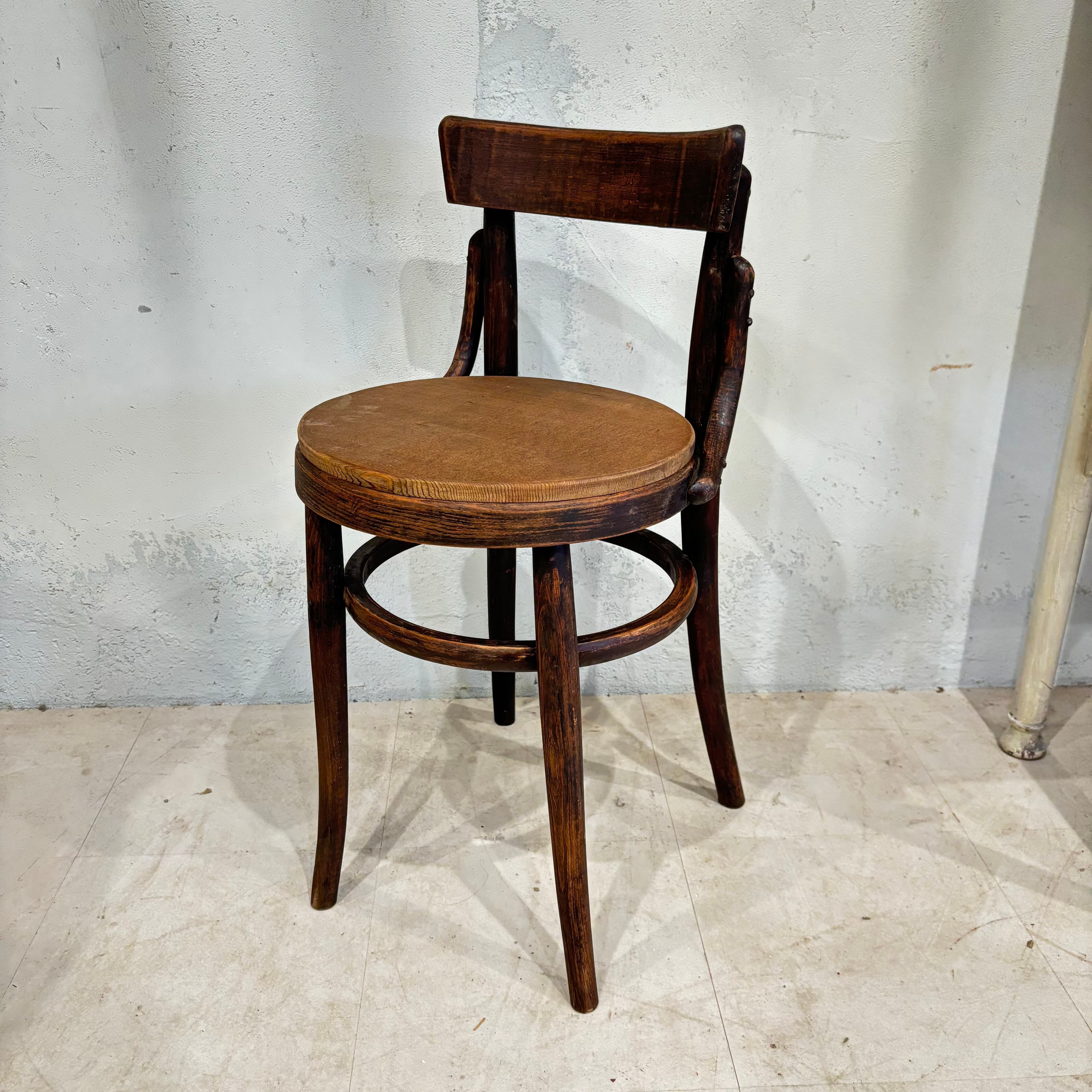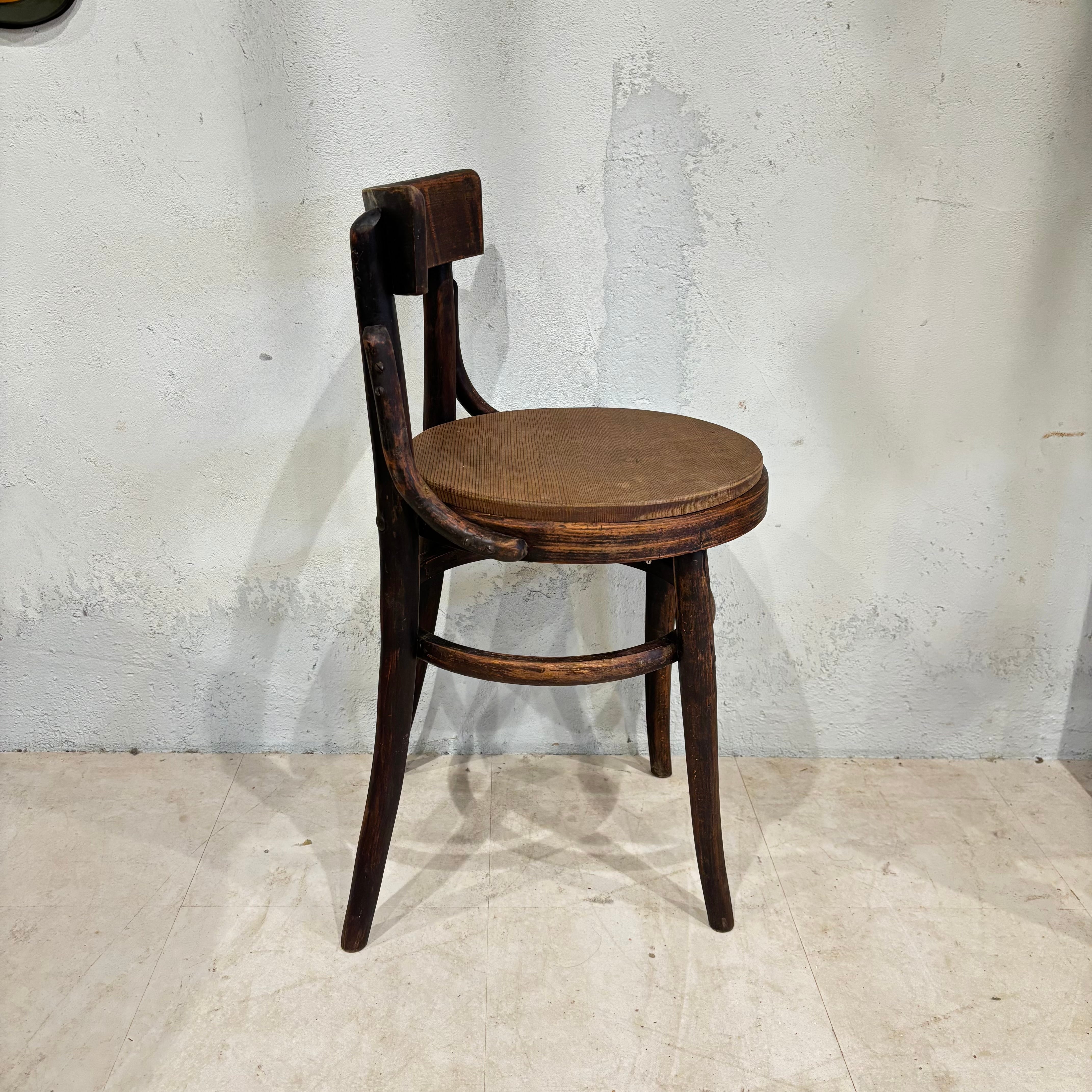 脚部分は補強、座面は無垢材に変更 塗装も新たにしております 昭和曲木のプレートが残っております ぐらつきがあるので花台などにいかがでしょうか? 座る場合は左右に揺れたり上に乗ったりしないようにしてください サイズW370×D350×H685mm 座面までの高さ約460mm 座面直径約330mm