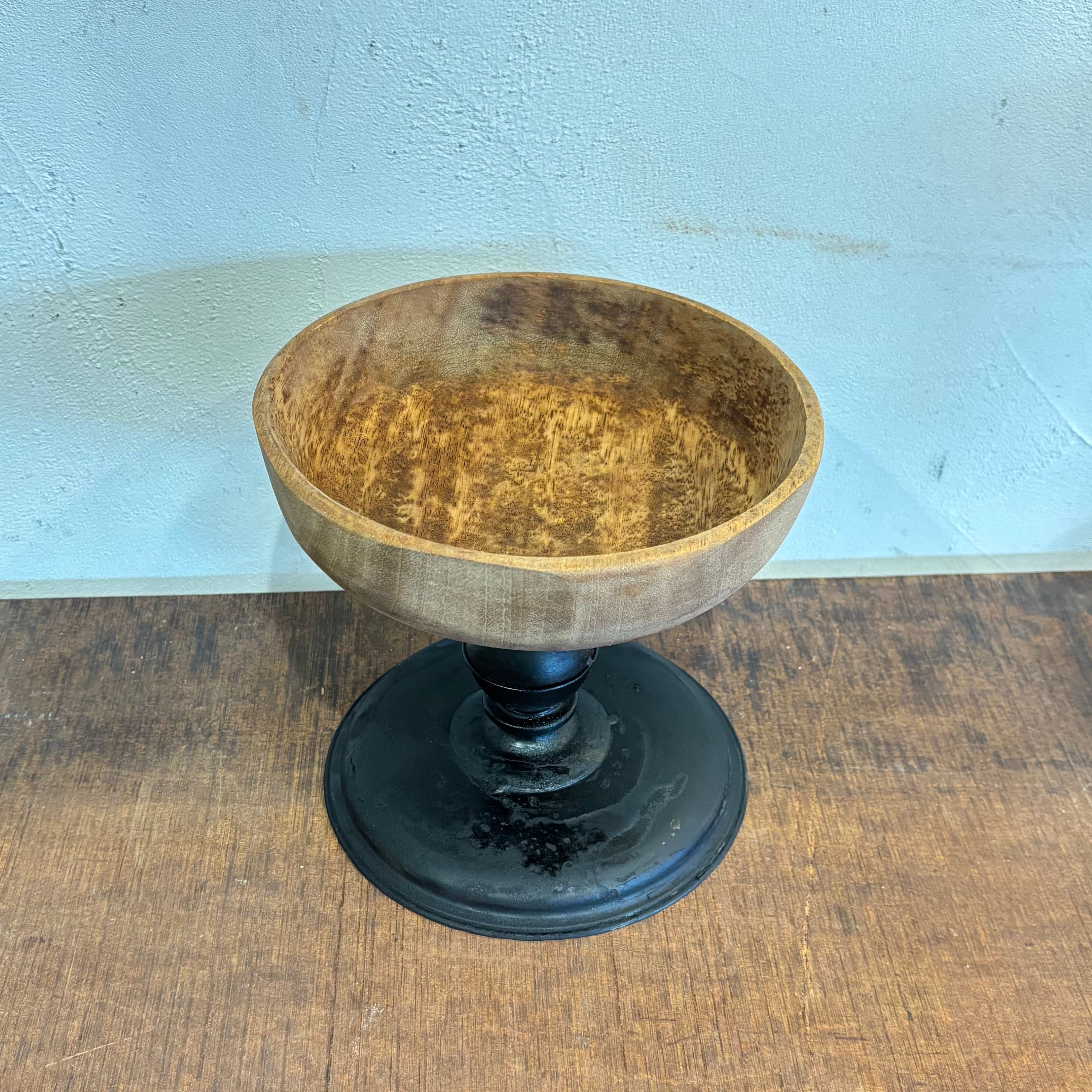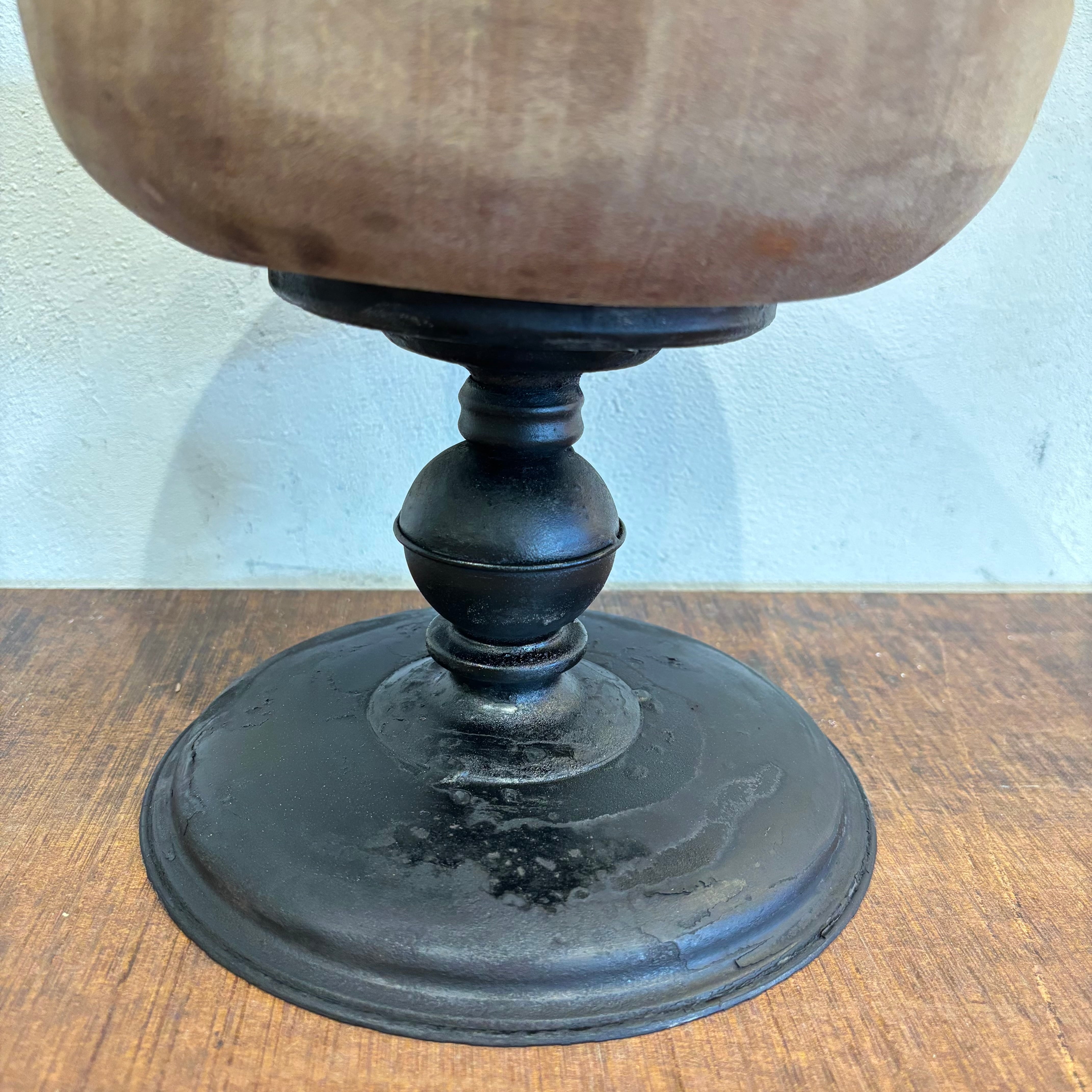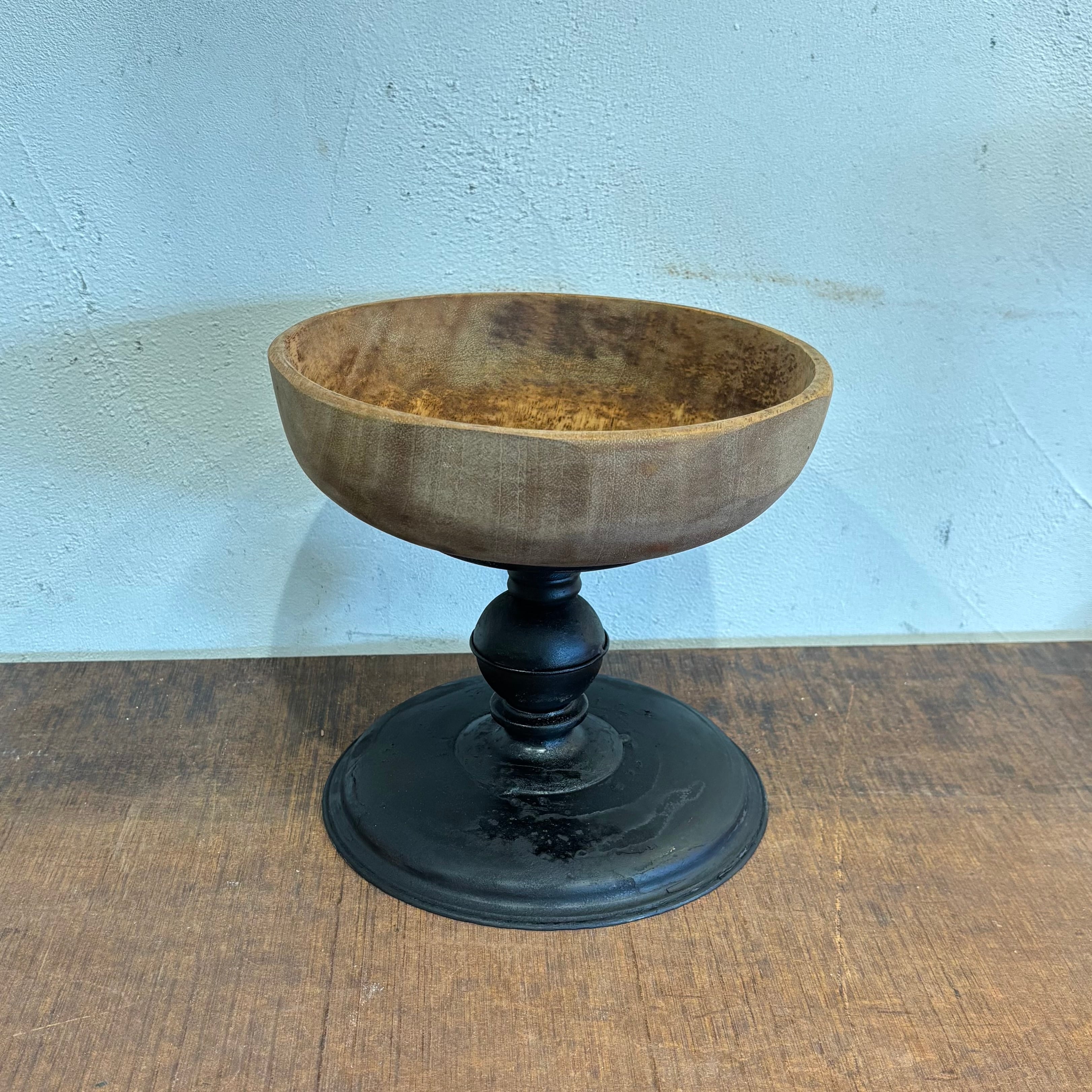 異素材の組み合わせの展示台 深さのあるタイプのトレイなので小物入れなどにいかがでしょうか? 脚部分は塗装し直して雰囲気を出しております 高さ約200mm トレイ直径約225mm