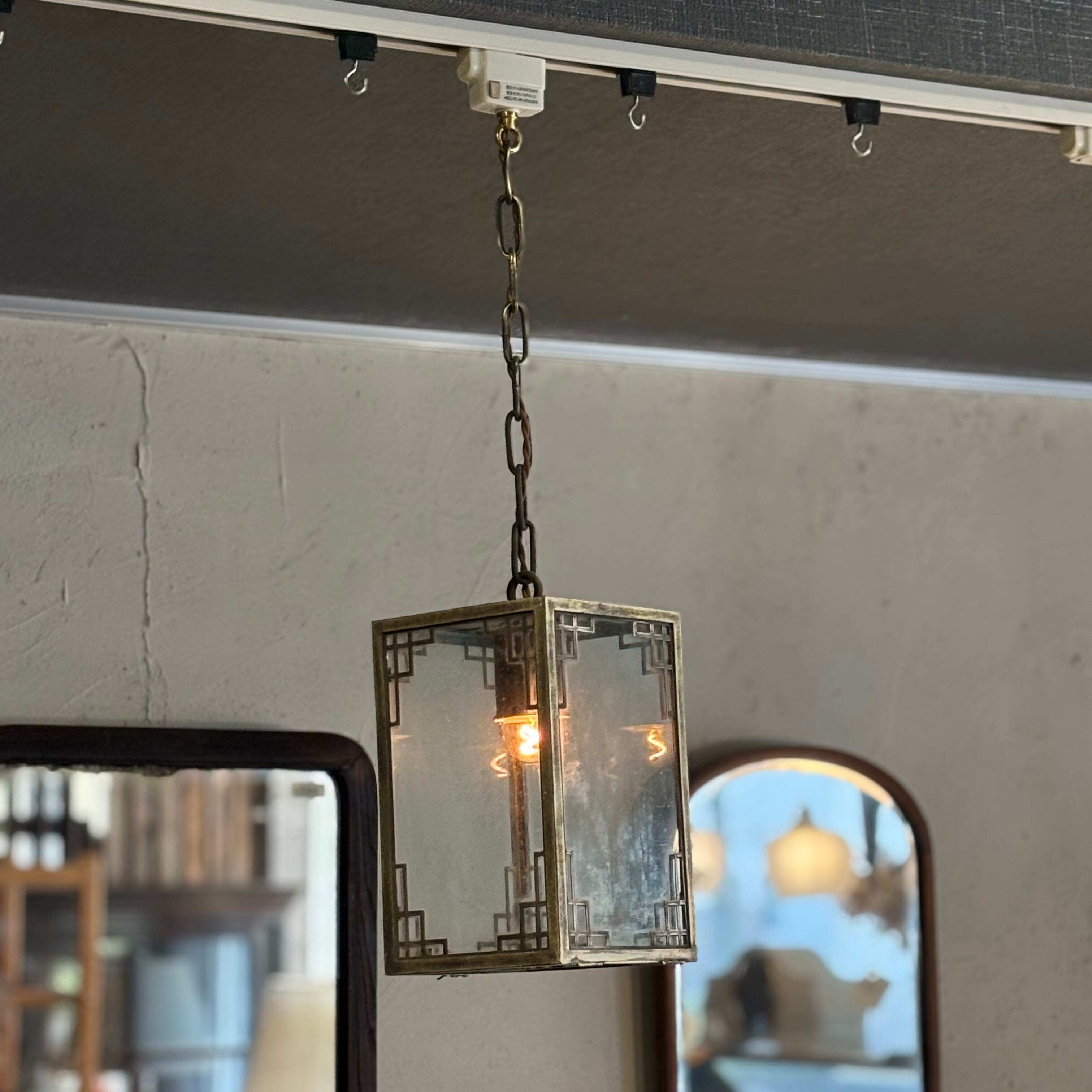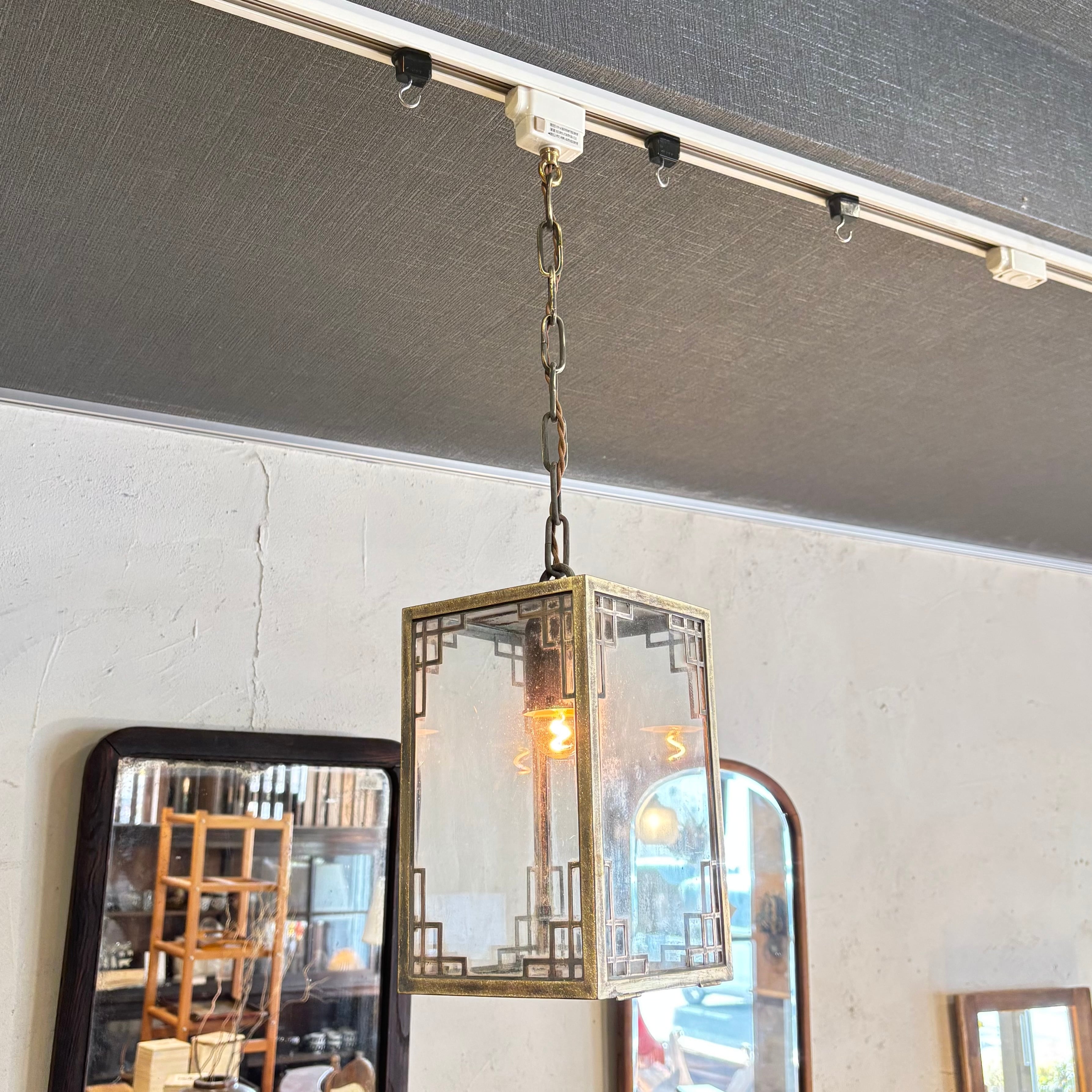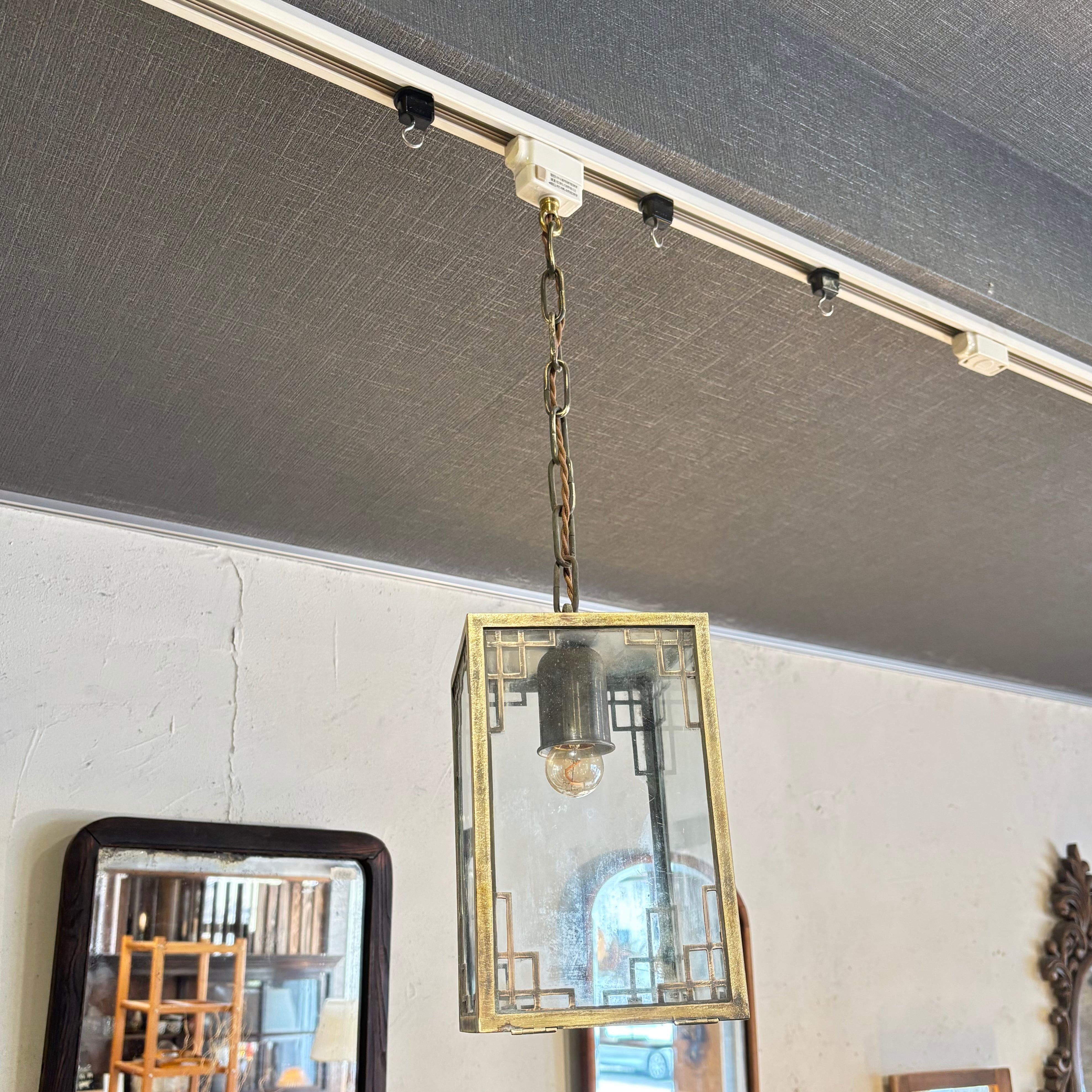 ガラスの行燈のような形 和室にも洋室にも似合うデザイン お店などにも雰囲気が良くなると思います 底が開く仕様になっております 小さなクギを外すと開きます 無くさないようにお気をつけください ガラス行燈サイズ約W152×D155×H240mm 天井からの高さ約610mm LED E26 テスト電球付き