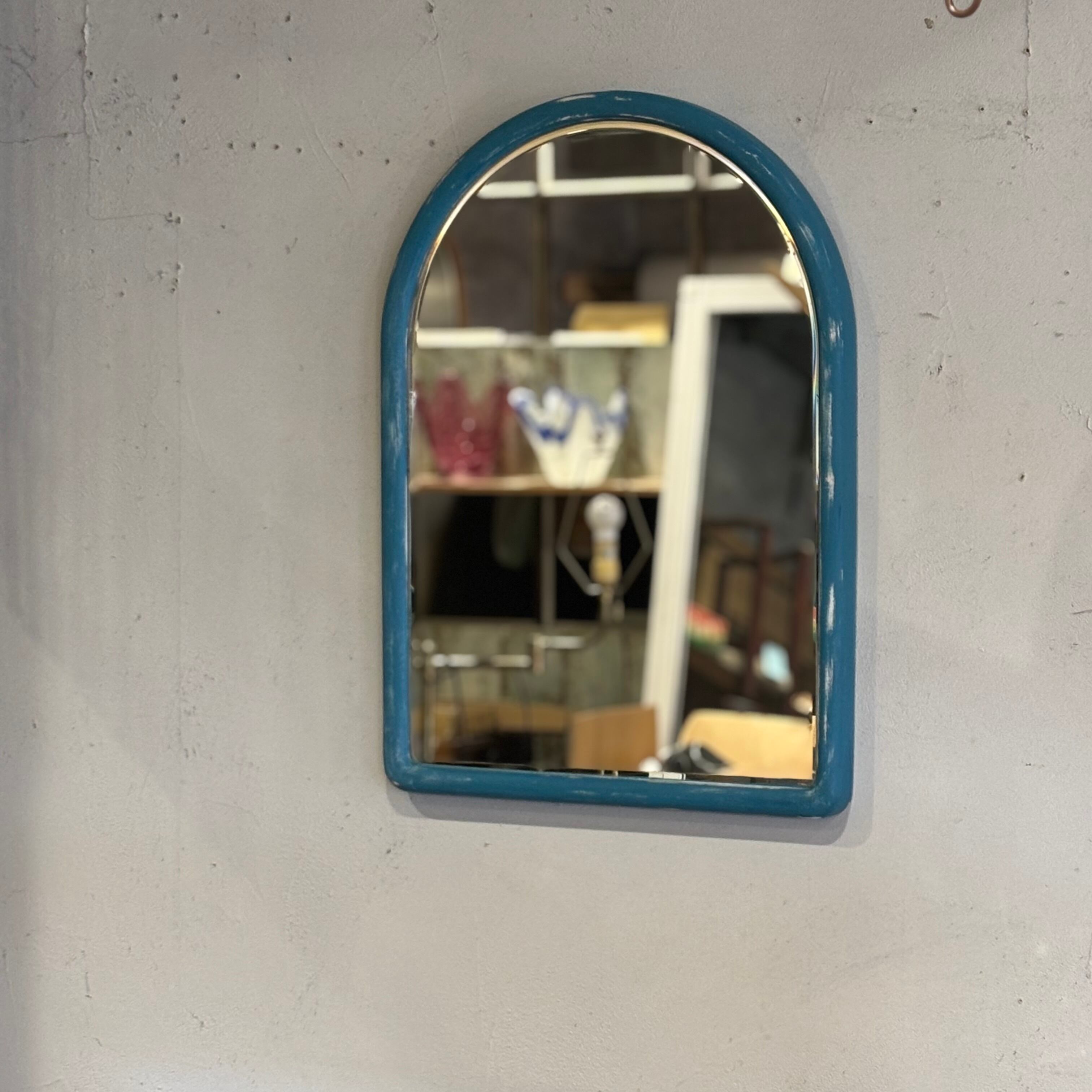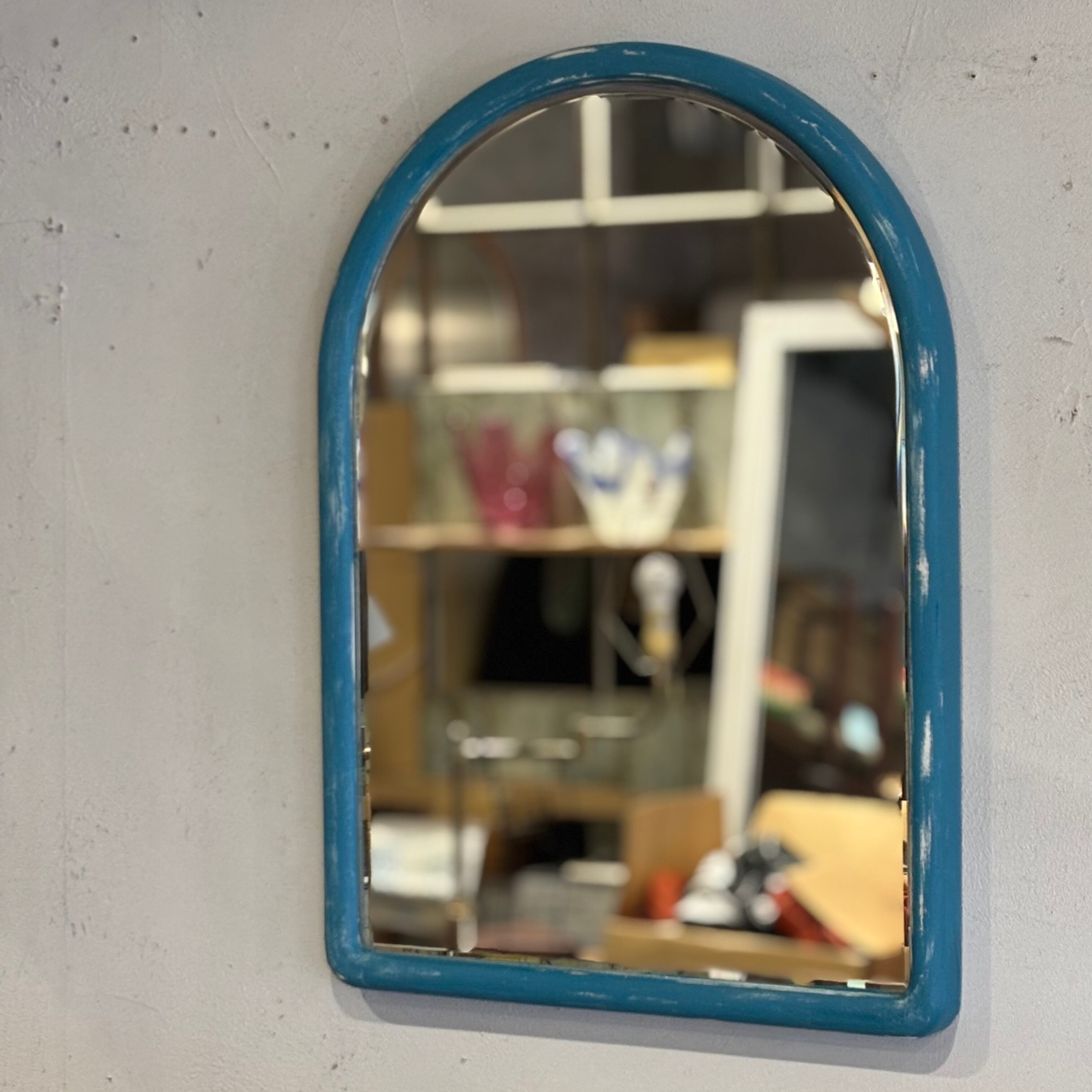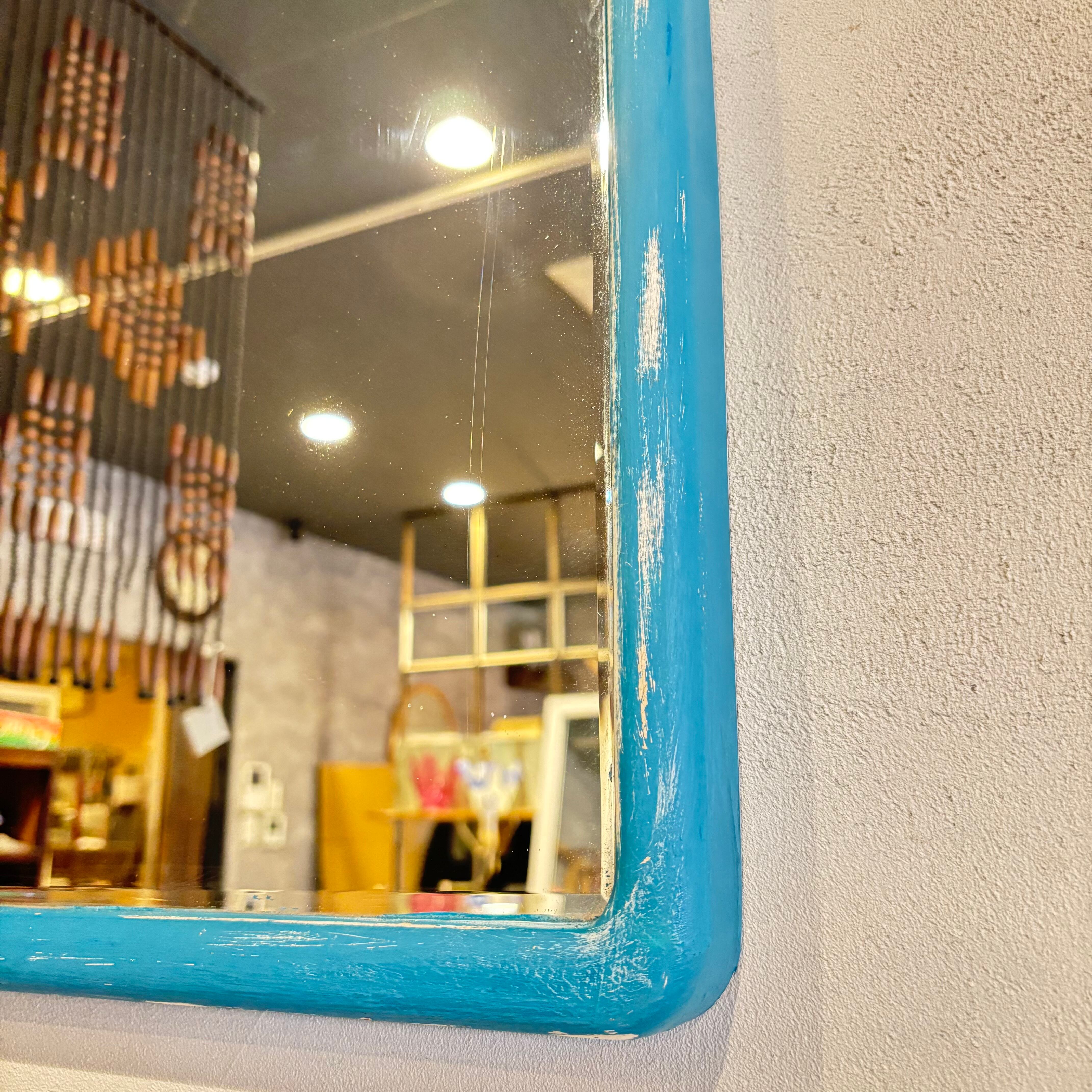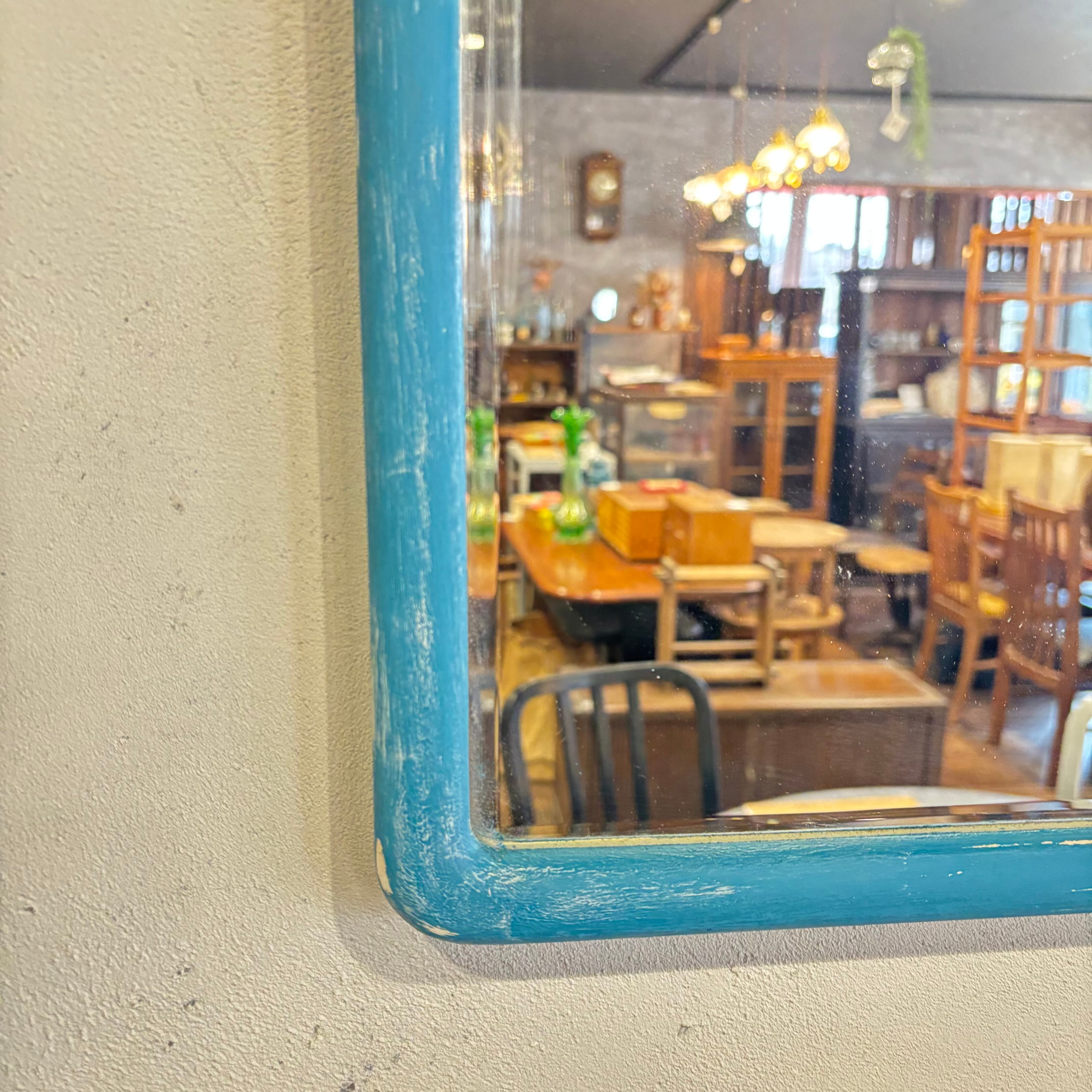 古いミラー 木枠をペイントし、シャビー感を出しております ミラー自体もキズ等ございます 古い物の対してのご理解をお願いいたします サイズW440×H697×D30mm