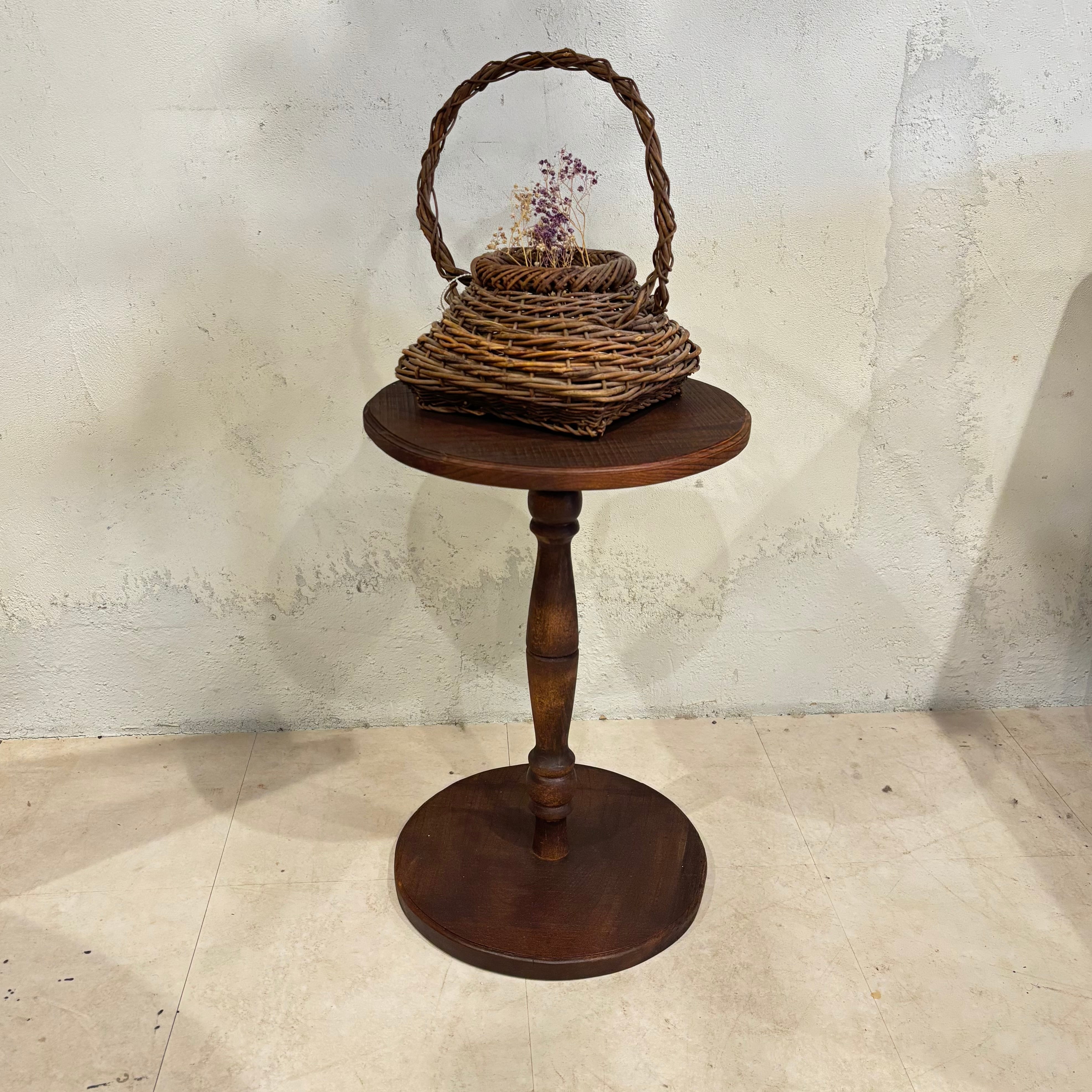 無垢材の花台 ソファサイドなどにもピッタリのサイズです 直径約340mm 高さ約493mm 真ん中で分解できます