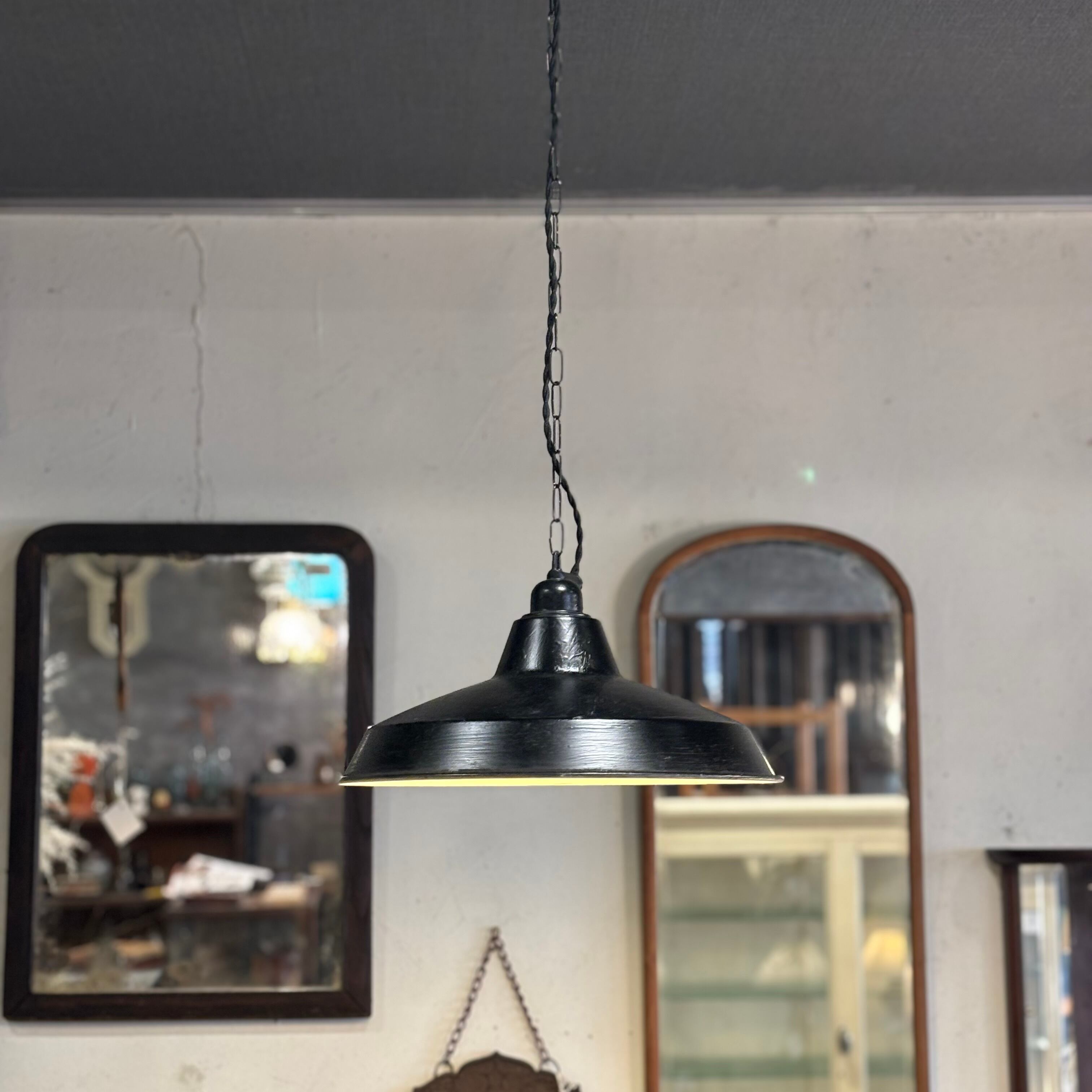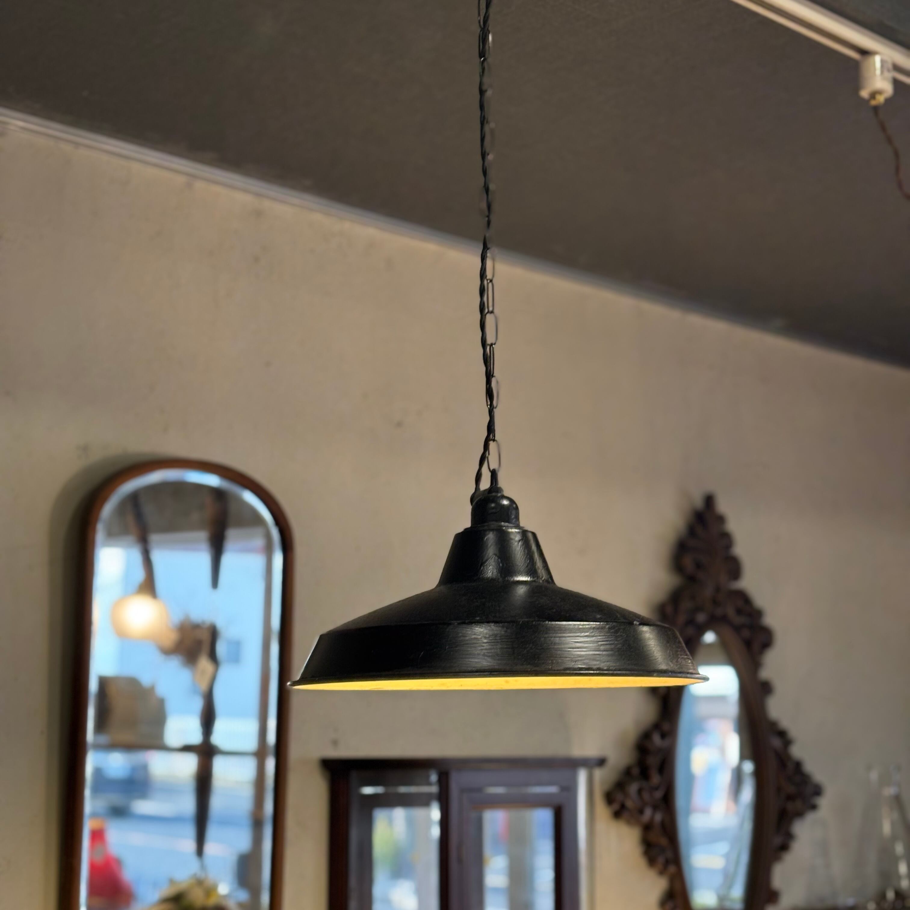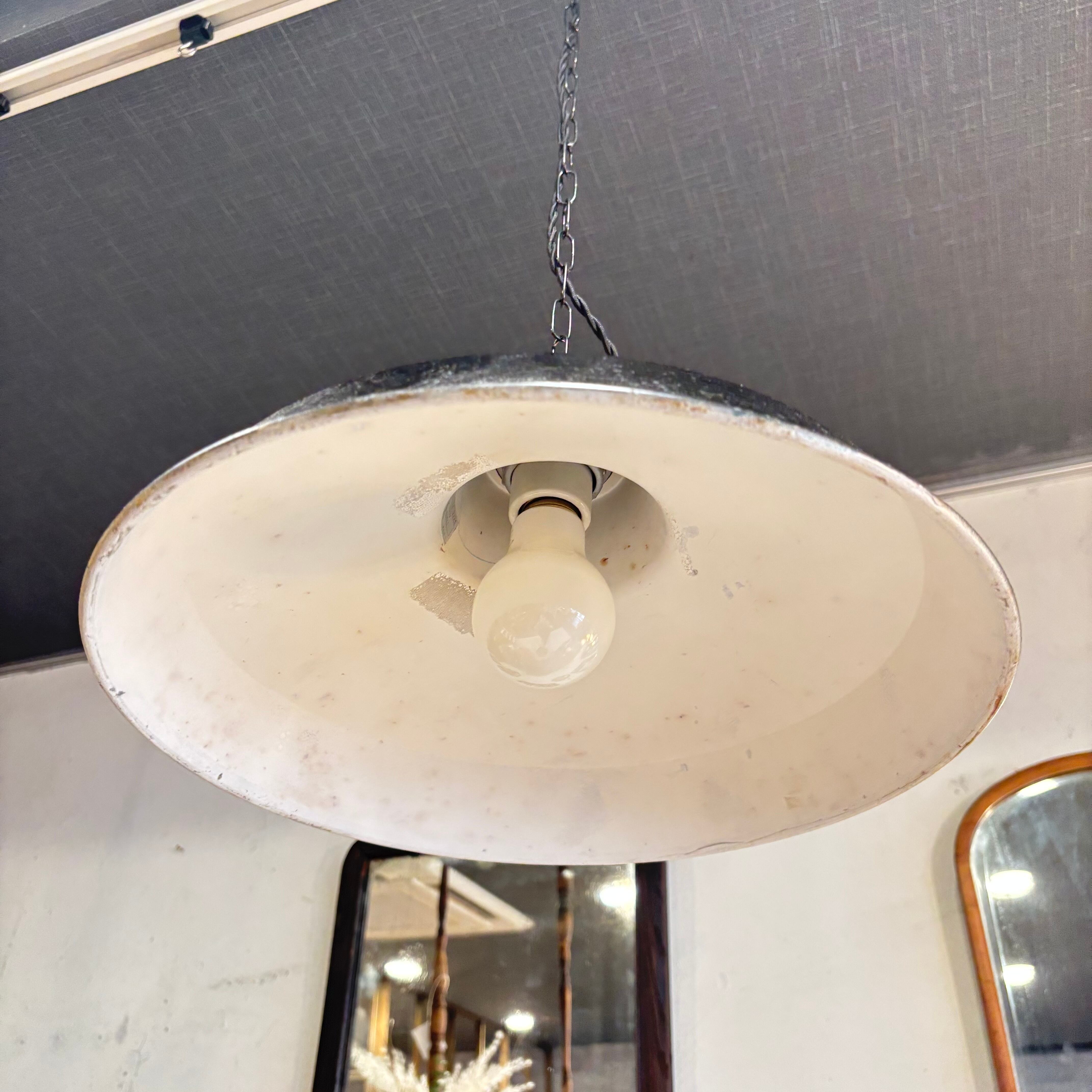 古い照明 チェーンと配線を新品に交換 笠部分は塗装ムラがございます 天井側のパーツにも汚れあり 直径約355mm 天井からの高さ約730mm LED E26 テスト電球付き