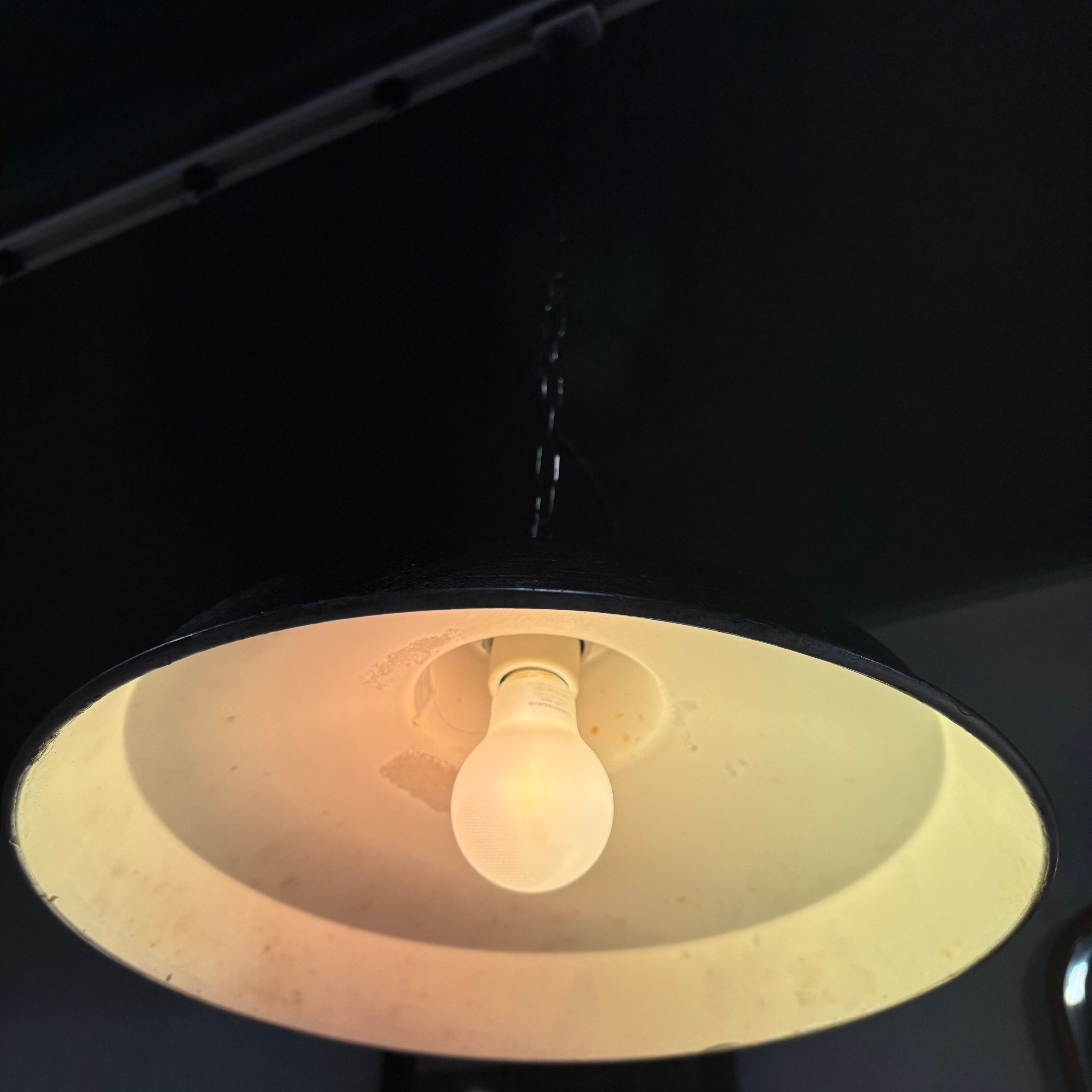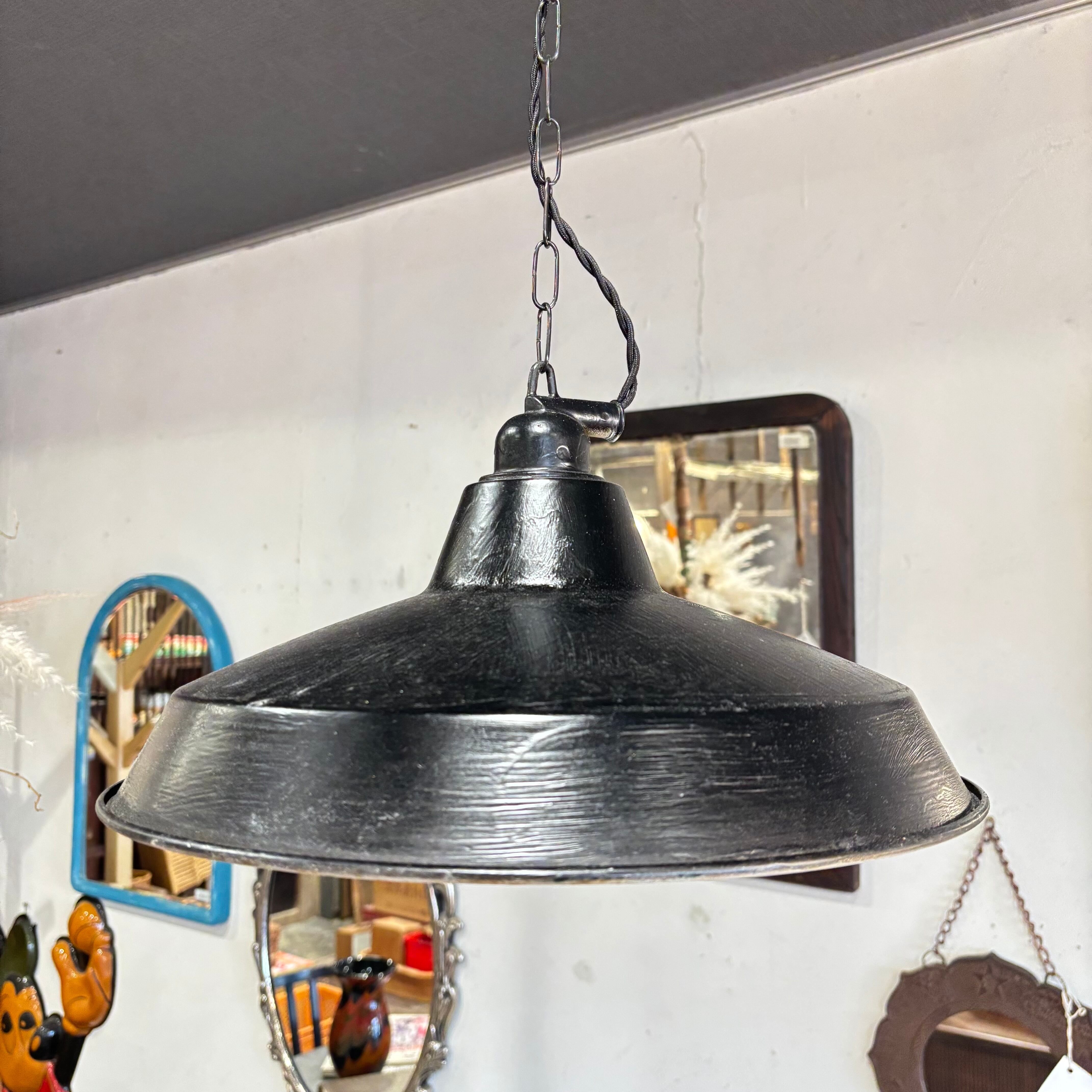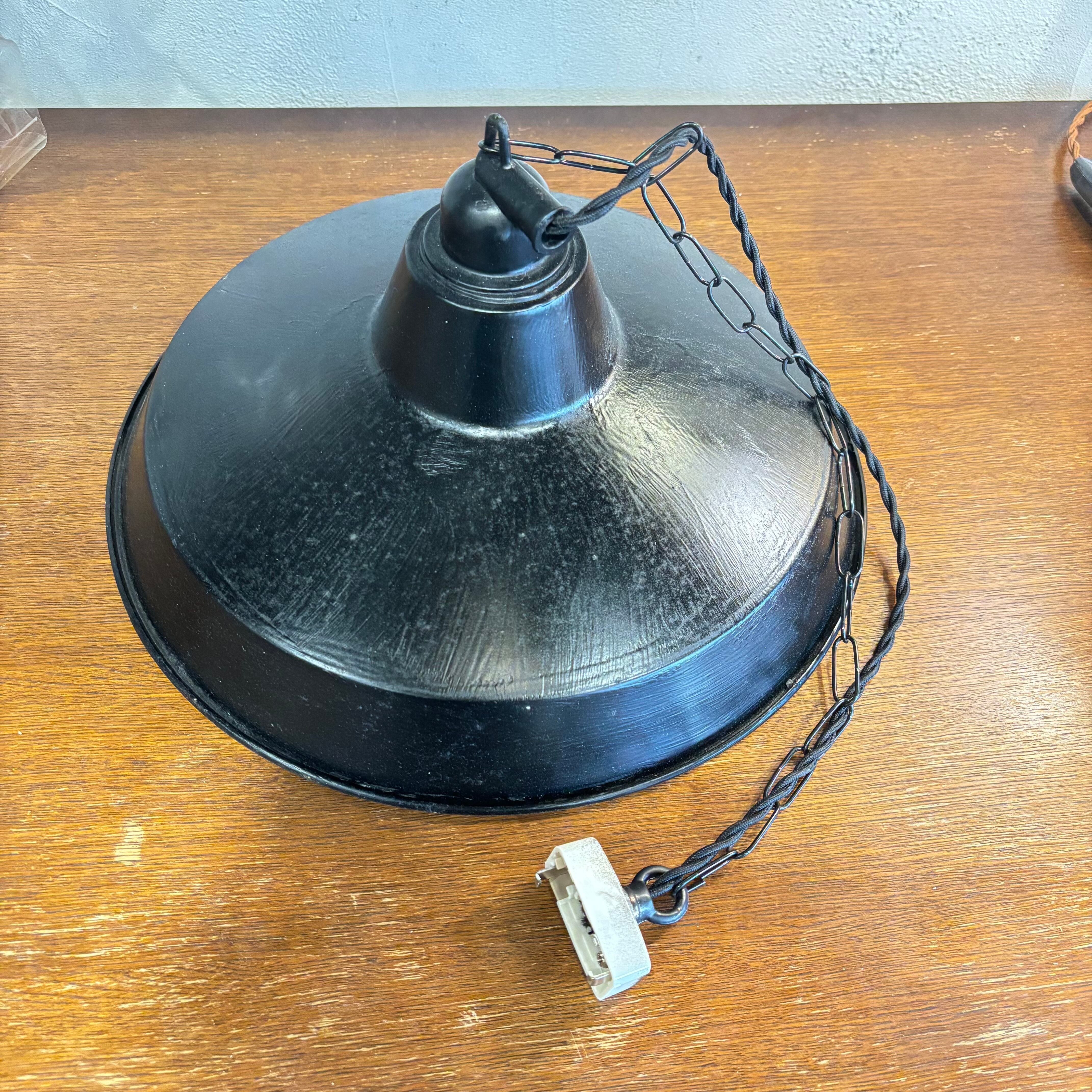 古い照明 チェーンと配線を新品に交換 笠部分は塗装ムラがございます 天井側のパーツにも汚れあり 直径約355mm 天井からの高さ約730mm LED E26 テスト電球付き