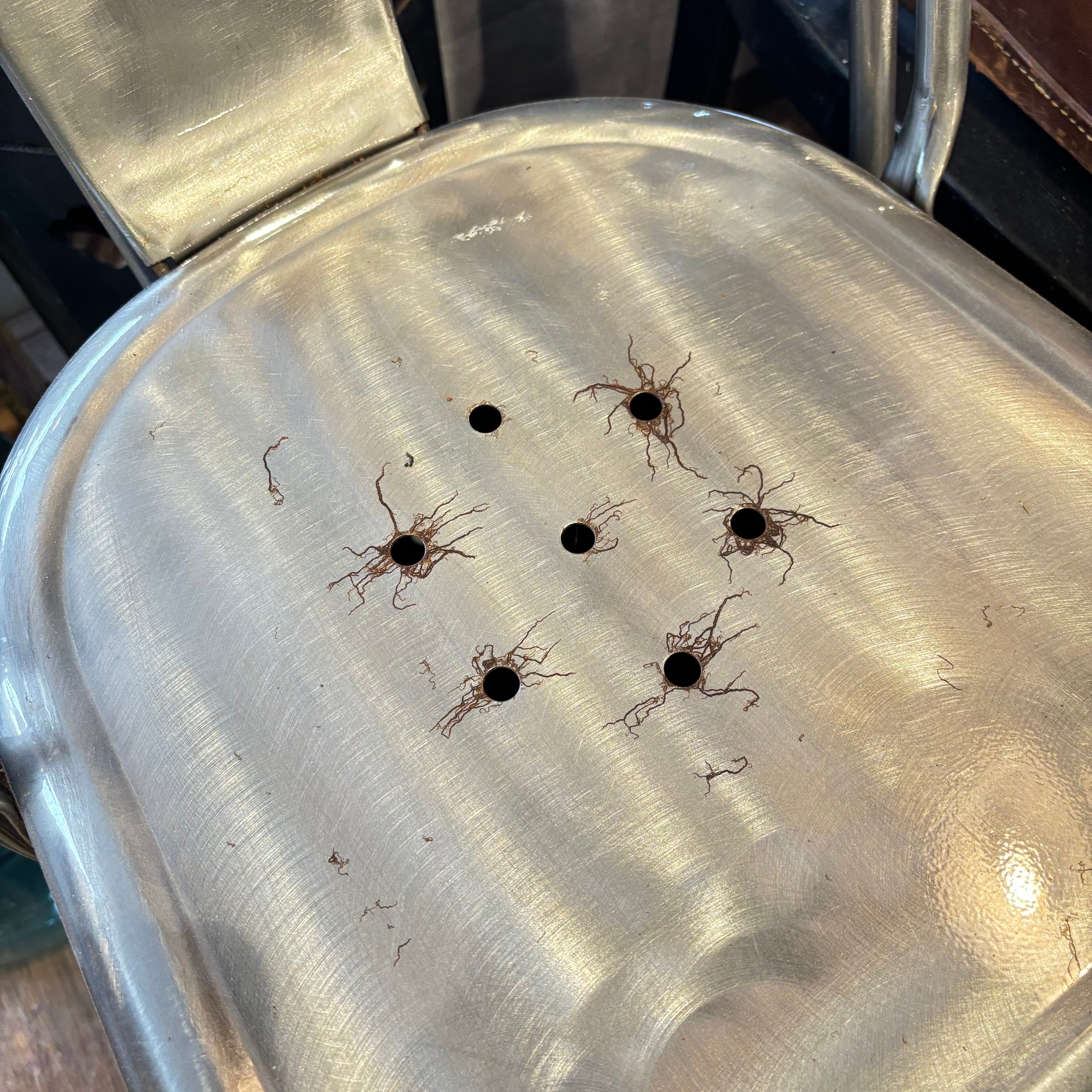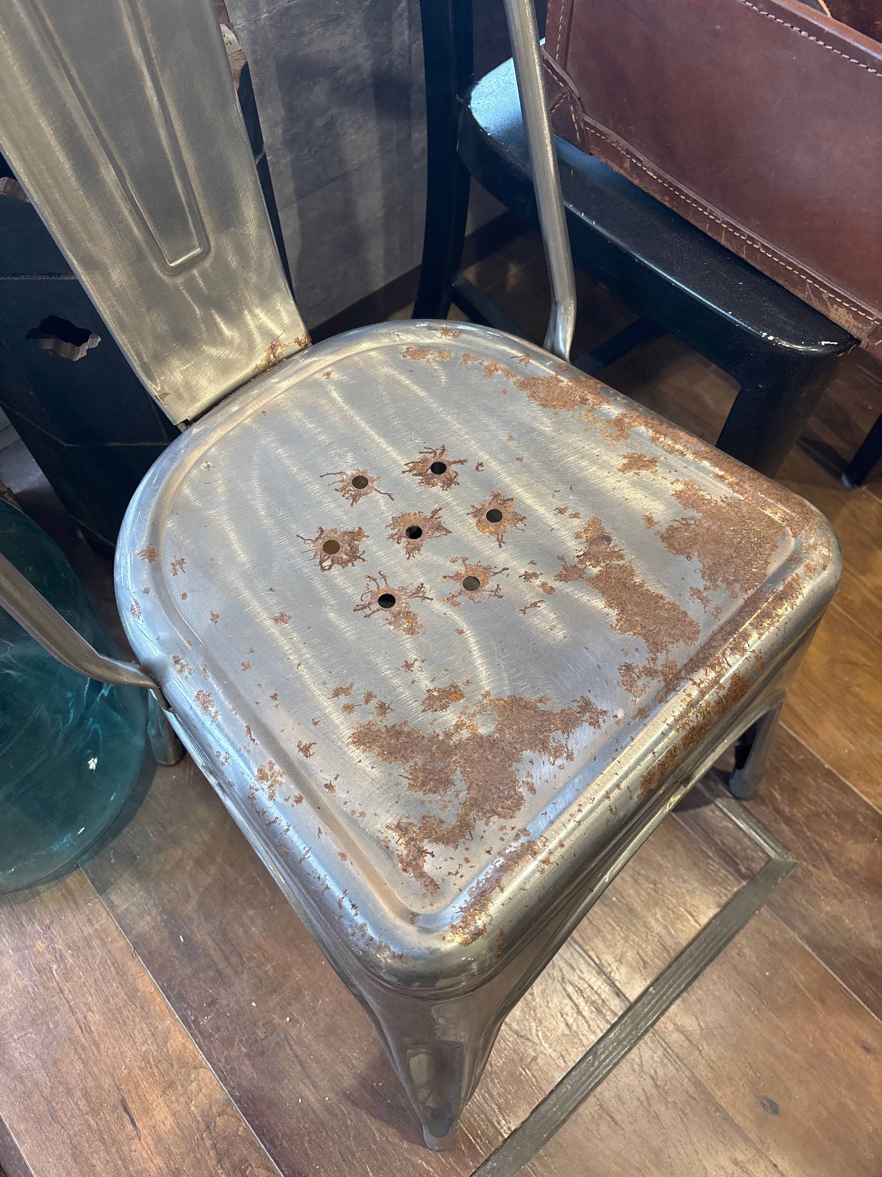 古いチェアなのでサビなどございます いい感じに味も出ております スタッキング可能 個体差あり 選べません サイズW350×D480×H440mm総高850mm