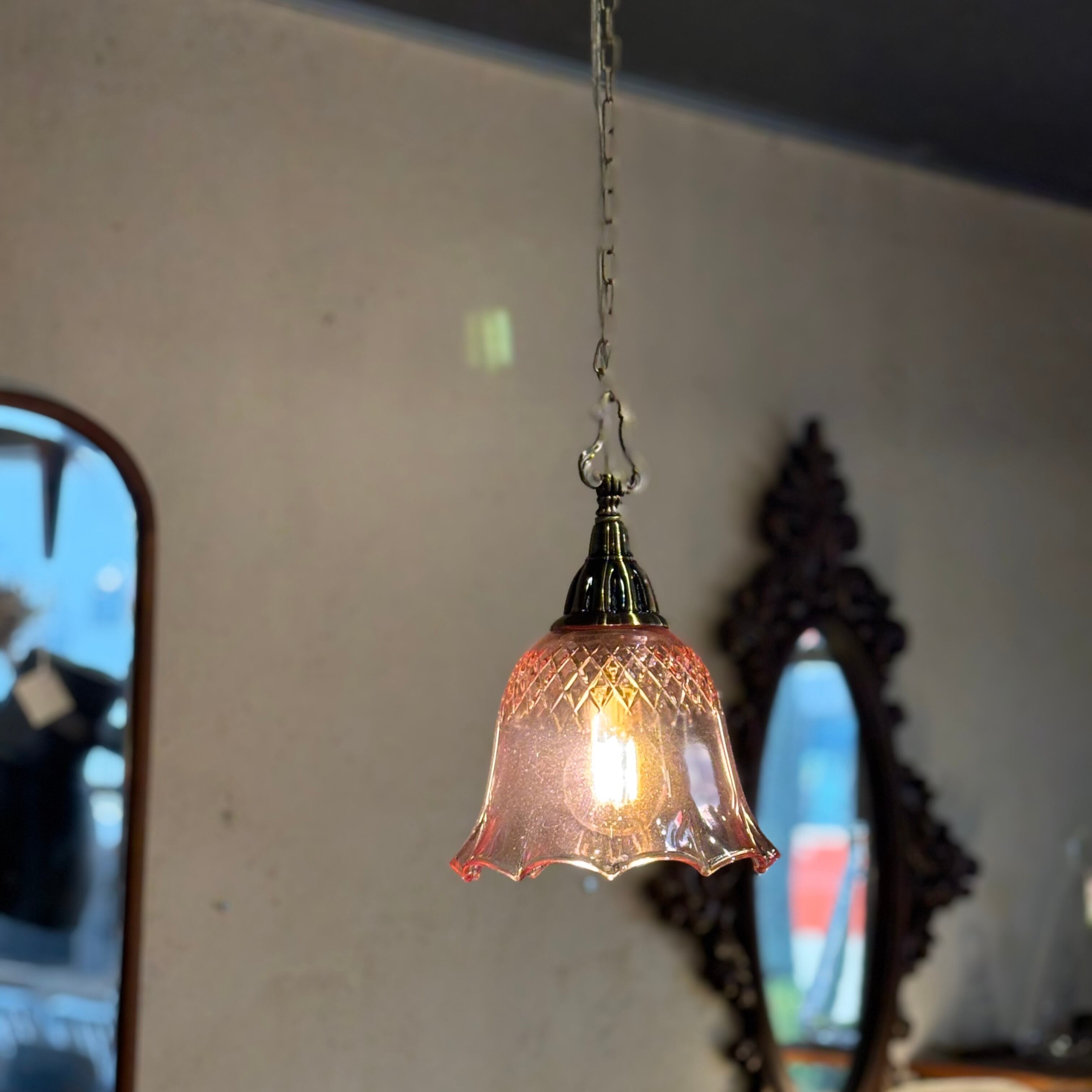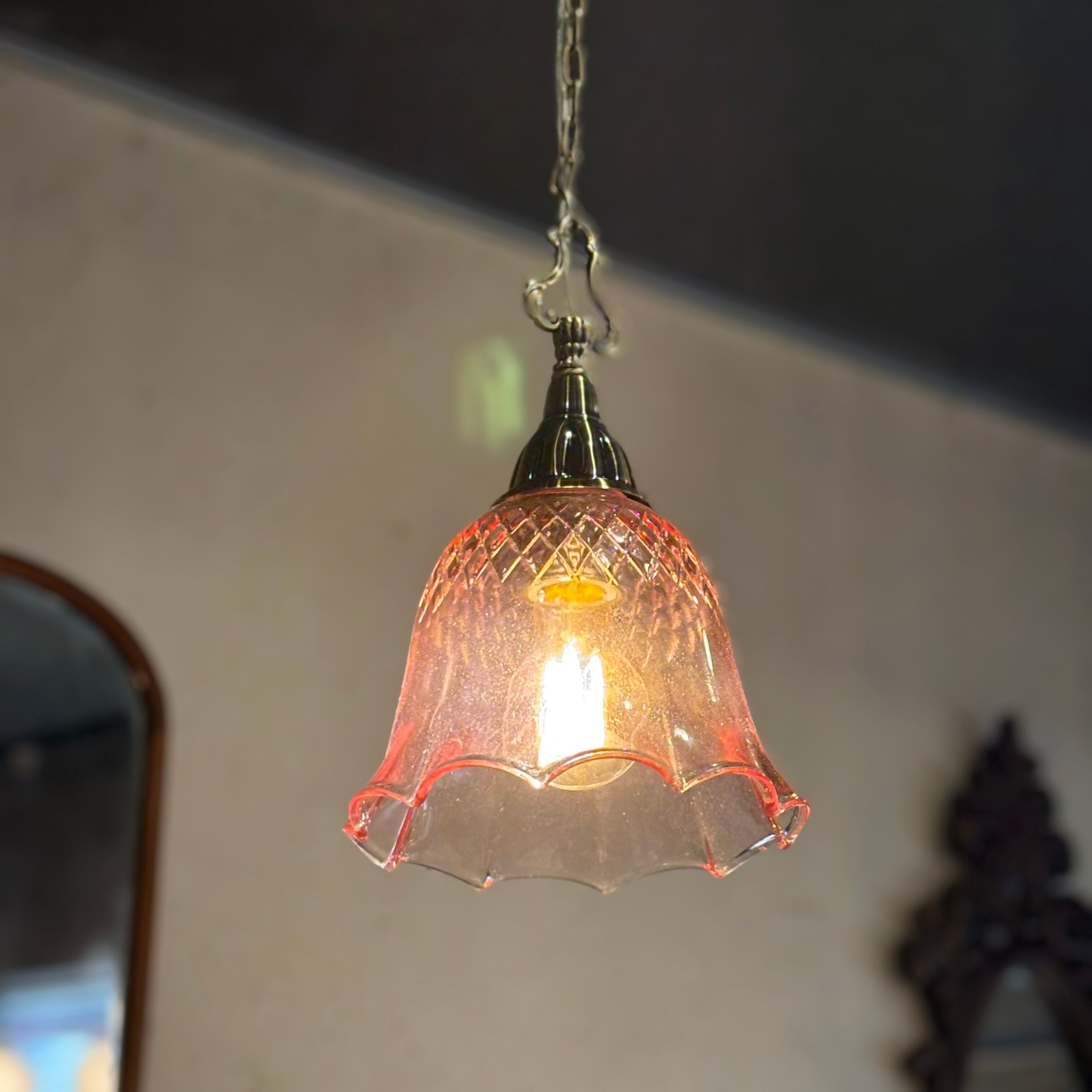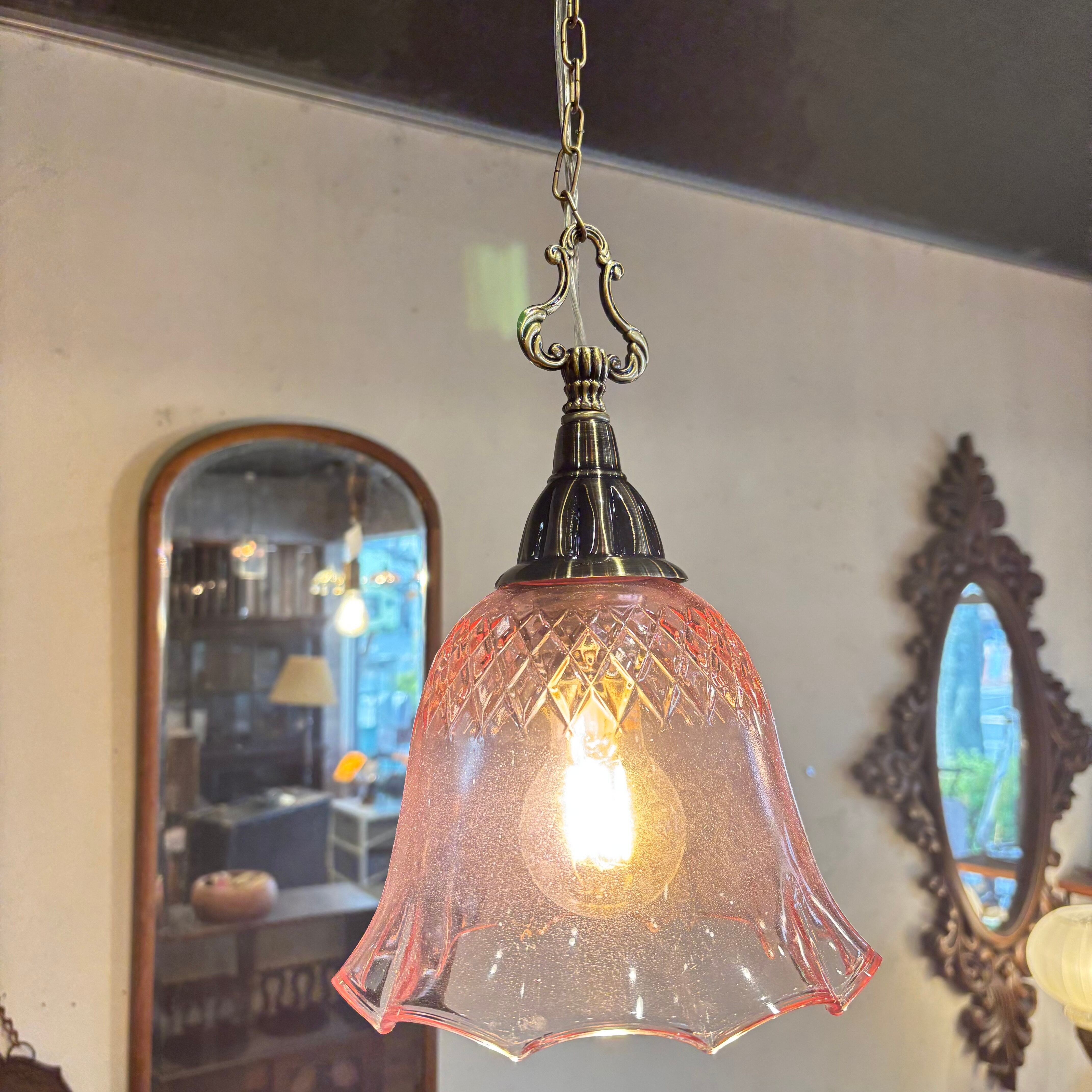 現行品 白熱灯 テスト電球付き E26 ガラスシェード直径約190mm 天井からの長さ約740mm