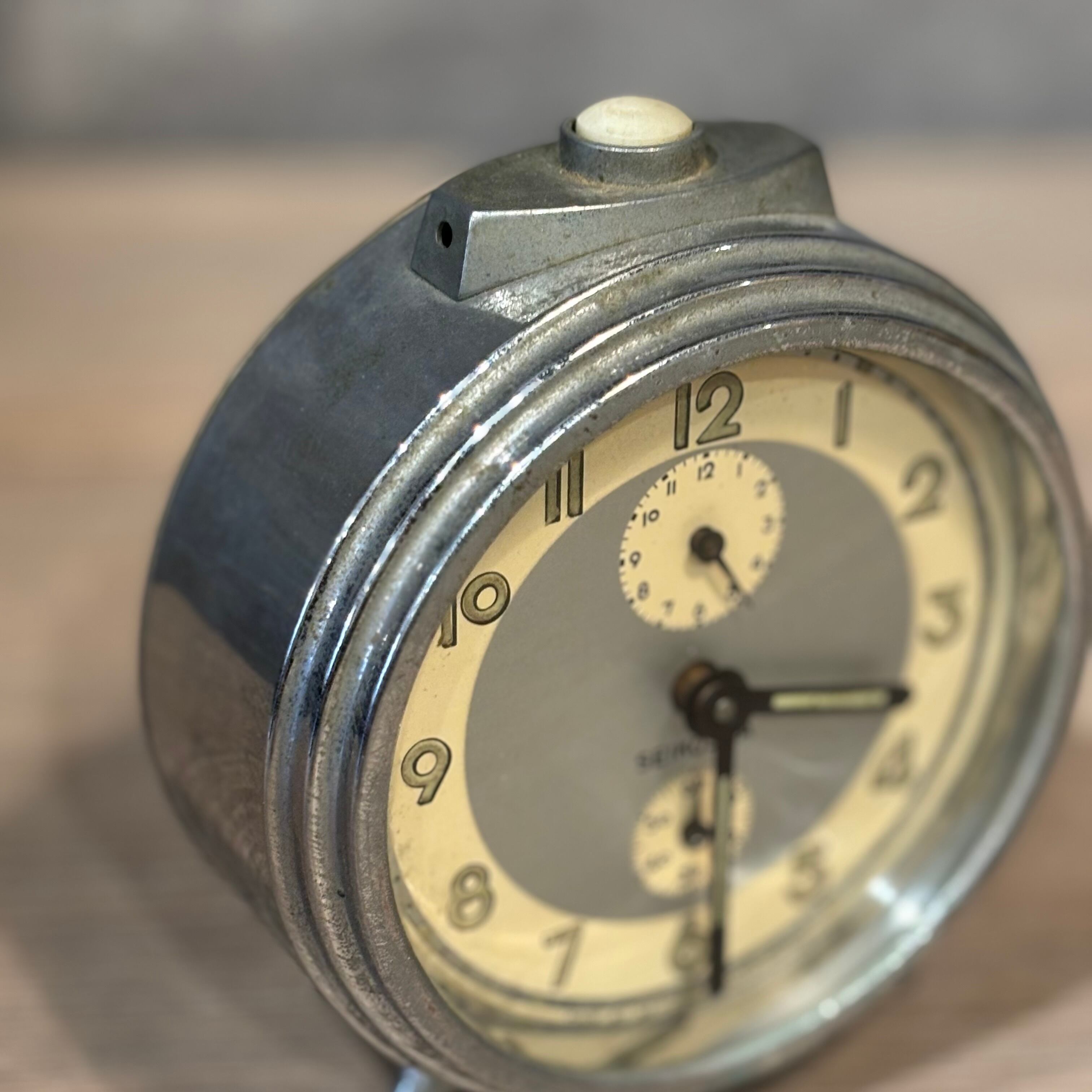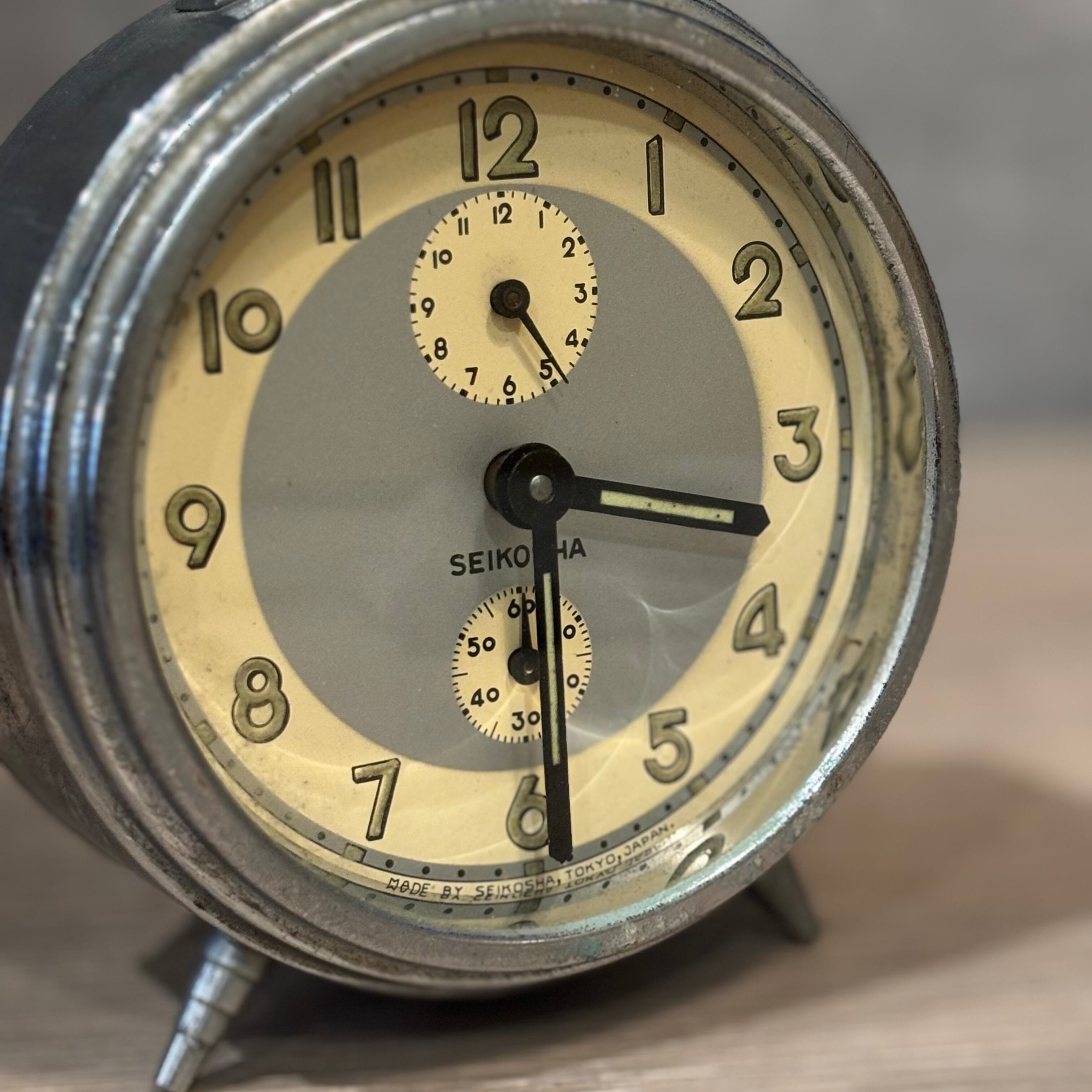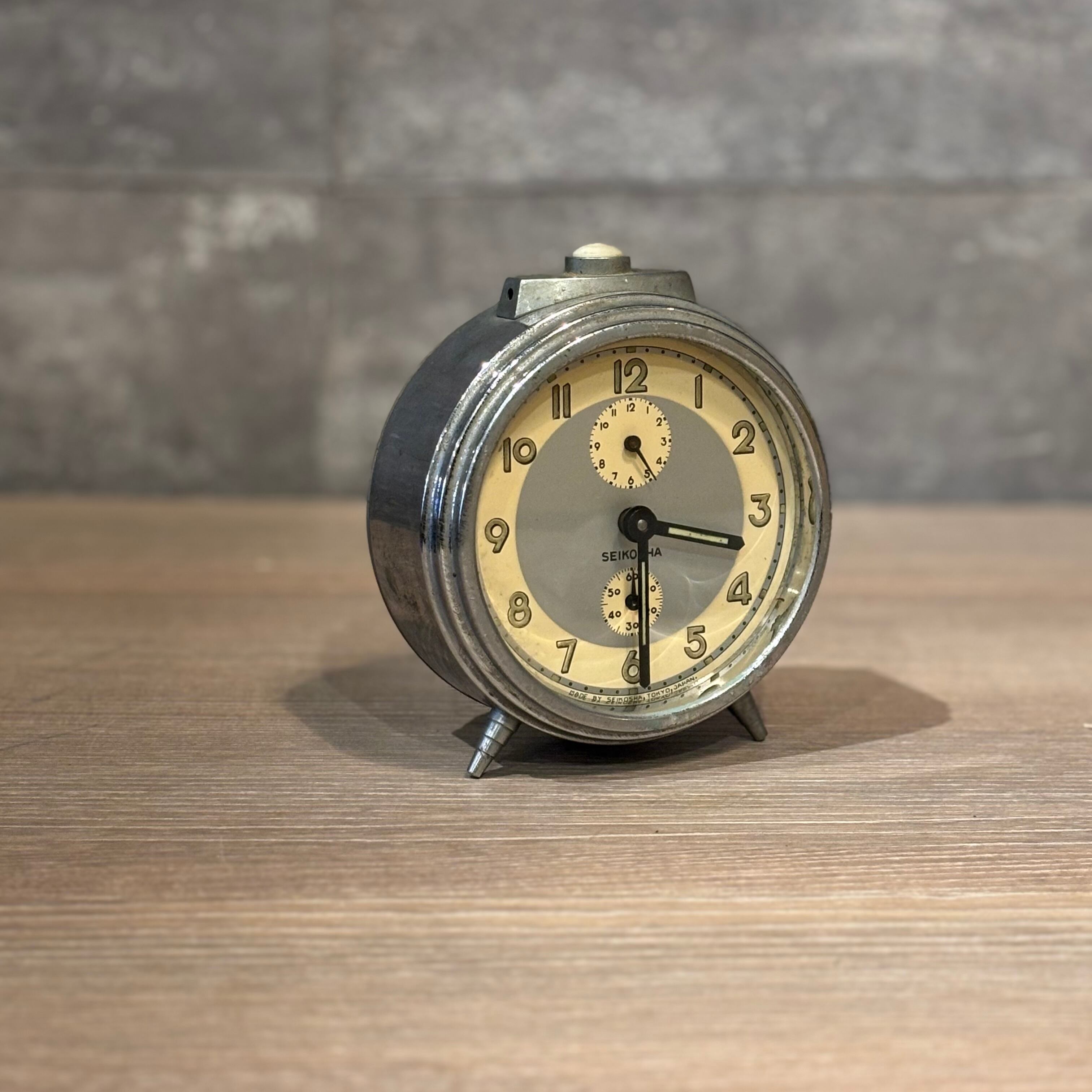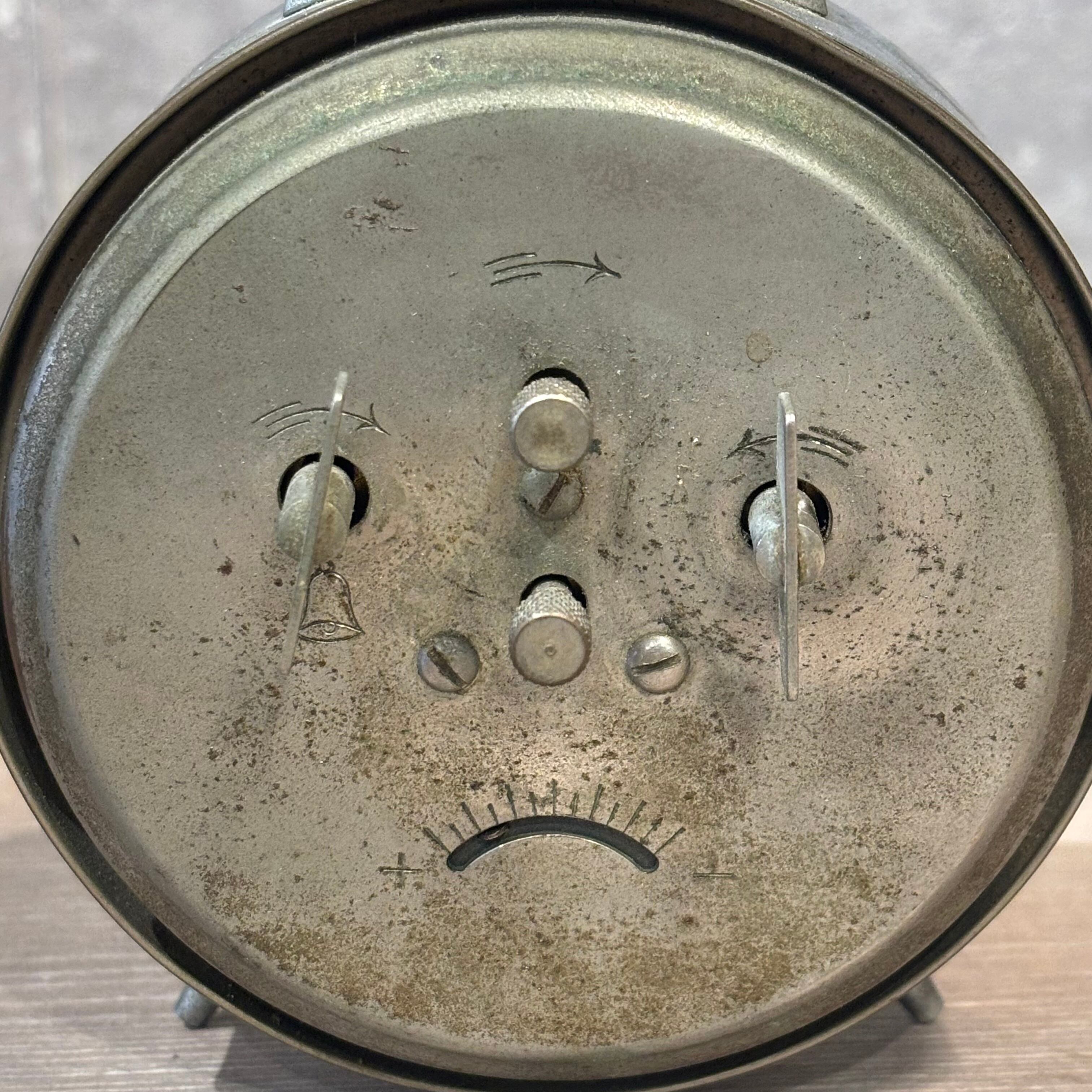 昭和のゼンマイ式の置き時計 文字盤のデザインがとても可愛いです インテリアとしても使えます アラーム機能もありますが、ジャンク品として購入をお願いいたします ゼンマイはそれぞれ内側に巻きます(矢印あり) 高さ約130mm