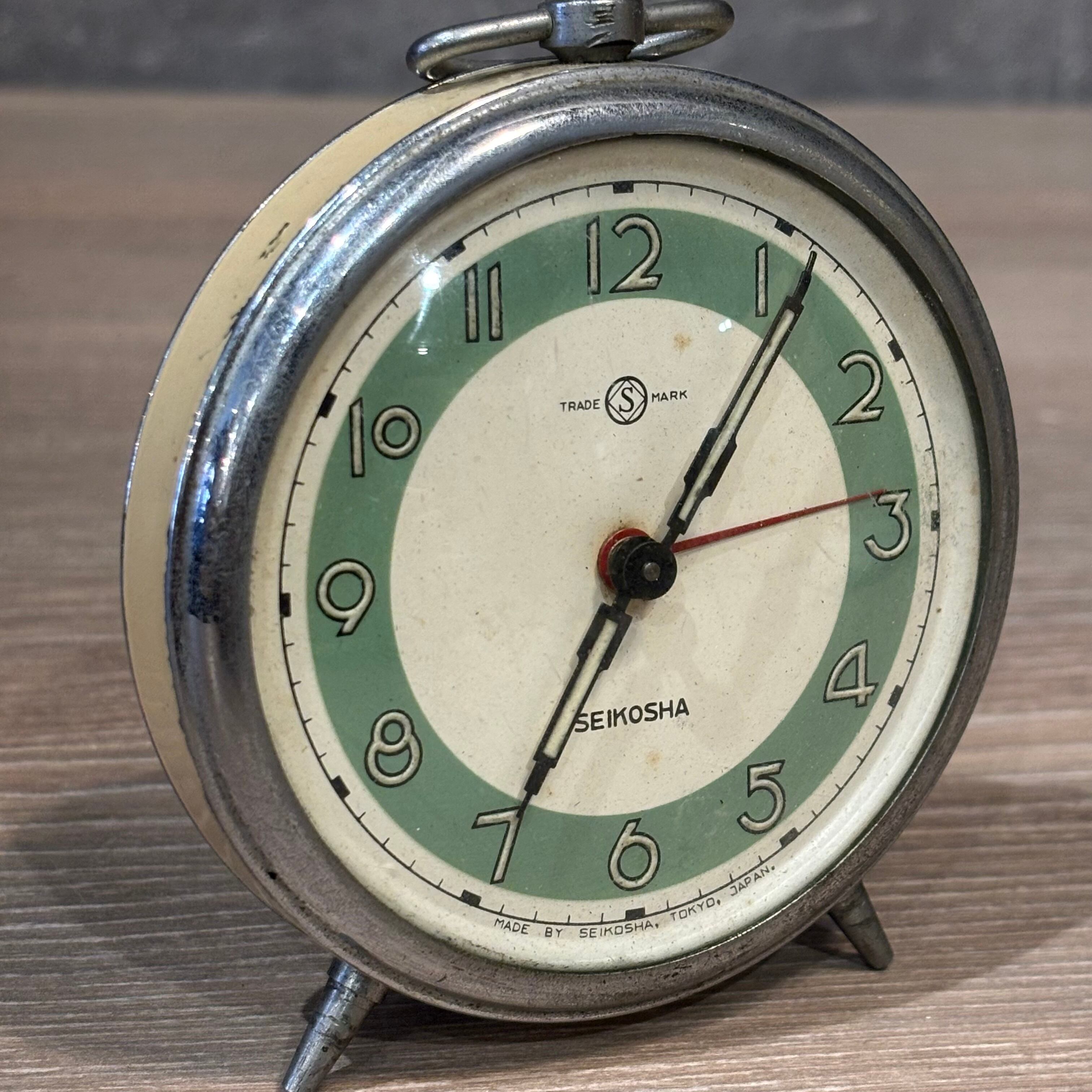 昭和のゼンマイ式の置き時計 文字盤のデザインがとても可愛いです インテリアとしても使えます アラーム機能もありますが、ジャンク品として購入をお願いいたします ゼンマイはそれぞれ巻けます(矢印あり) 高さ約110mm