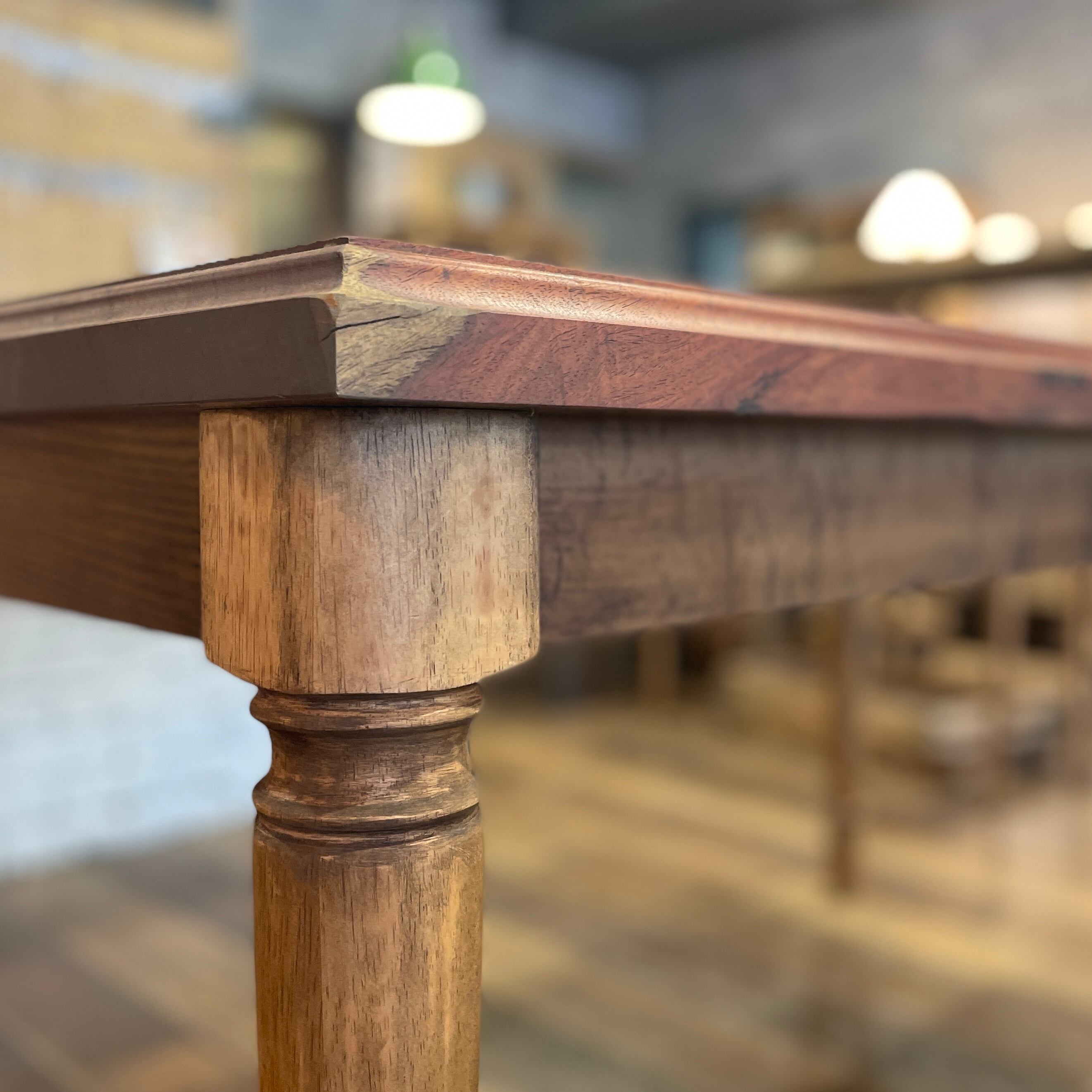 カリン一枚板を使用し製作した存在感のあるダイニングテーブル アンティークな雰囲気に仕上がりました 一部埋木箇所あり (pic.5参照) 脚取り外し可能 サイズ約W1480×D850×H720mm