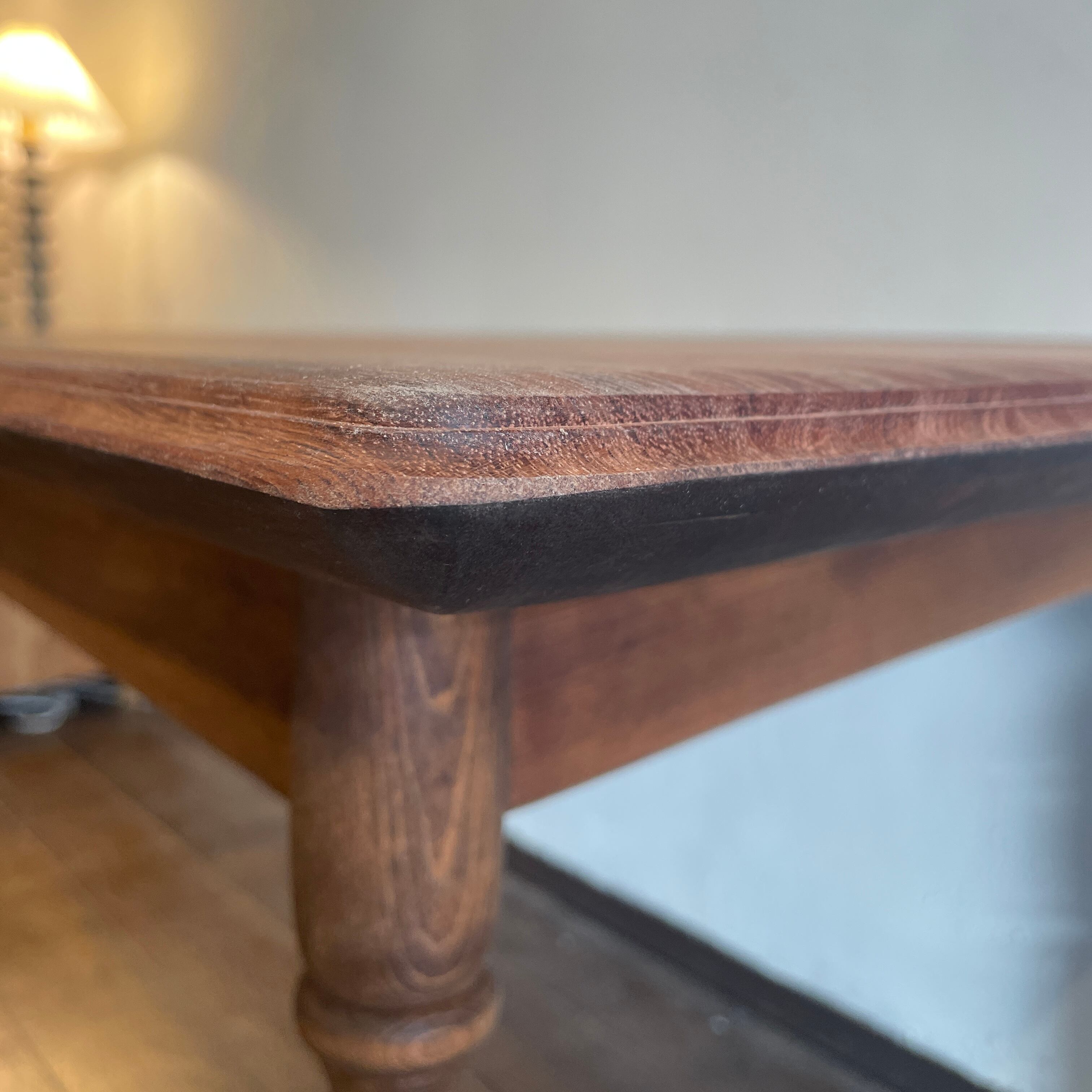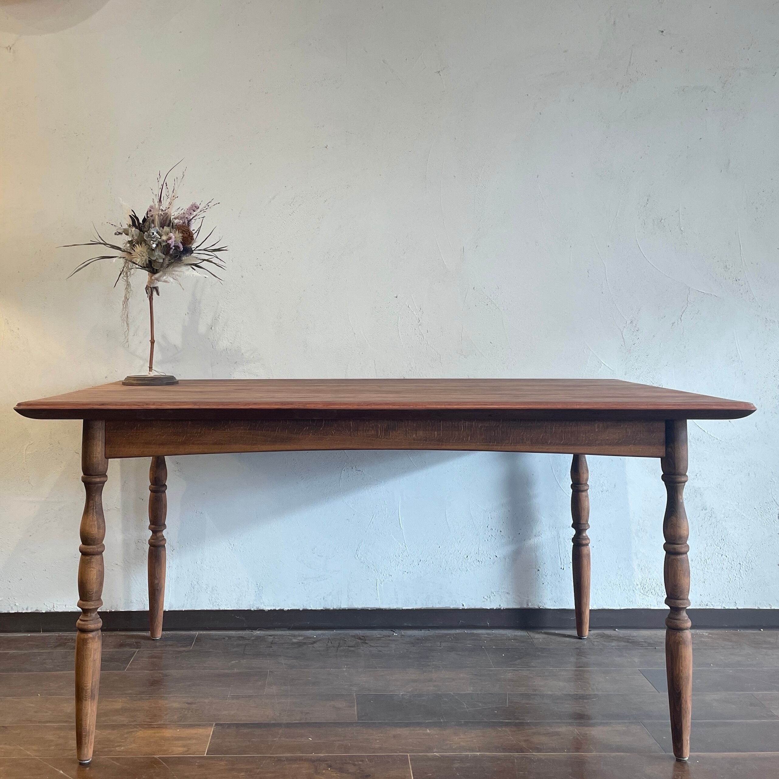 マホガニー材天板を使用しろくろ脚を組み合わせ完成した雰囲気の良いダイニングテーブル