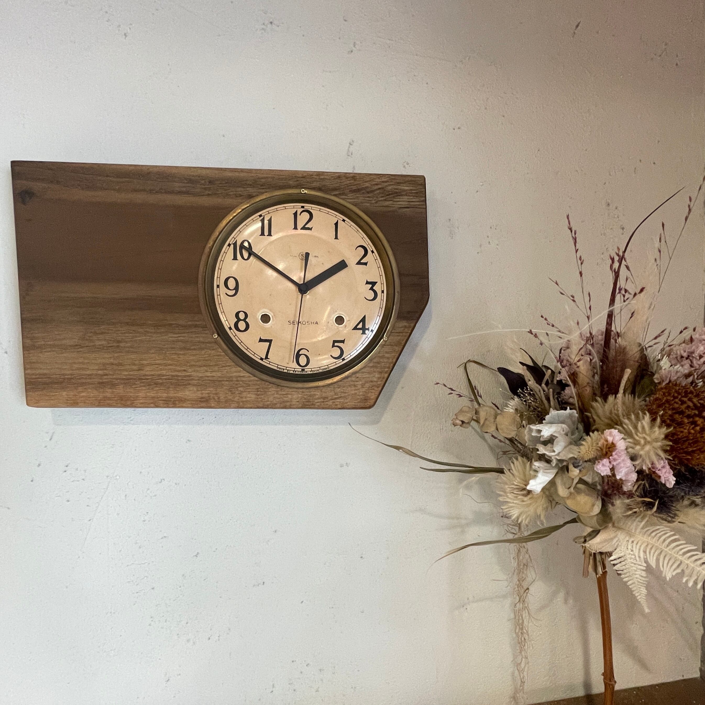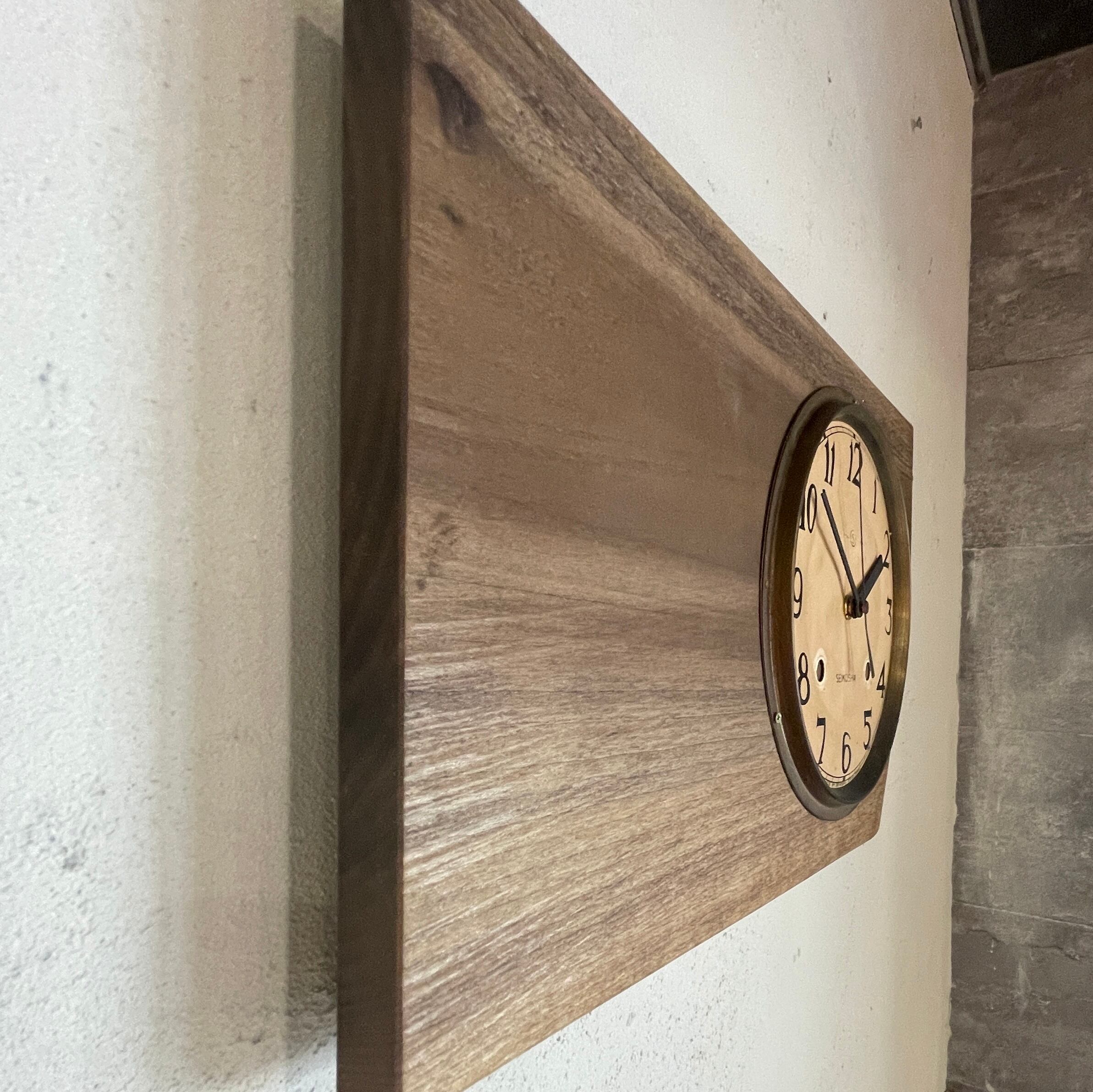 古材と古い文字盤の壁掛け時計 味わいある木板の形を活かし雰囲気よく仕上げました 全体サイズ W380×H235×D35(器具含む) 単三電池 一個使用(テスト電池付) ご覧のモニターにより多少色味が異なって見える場合がございます ご了承下さい