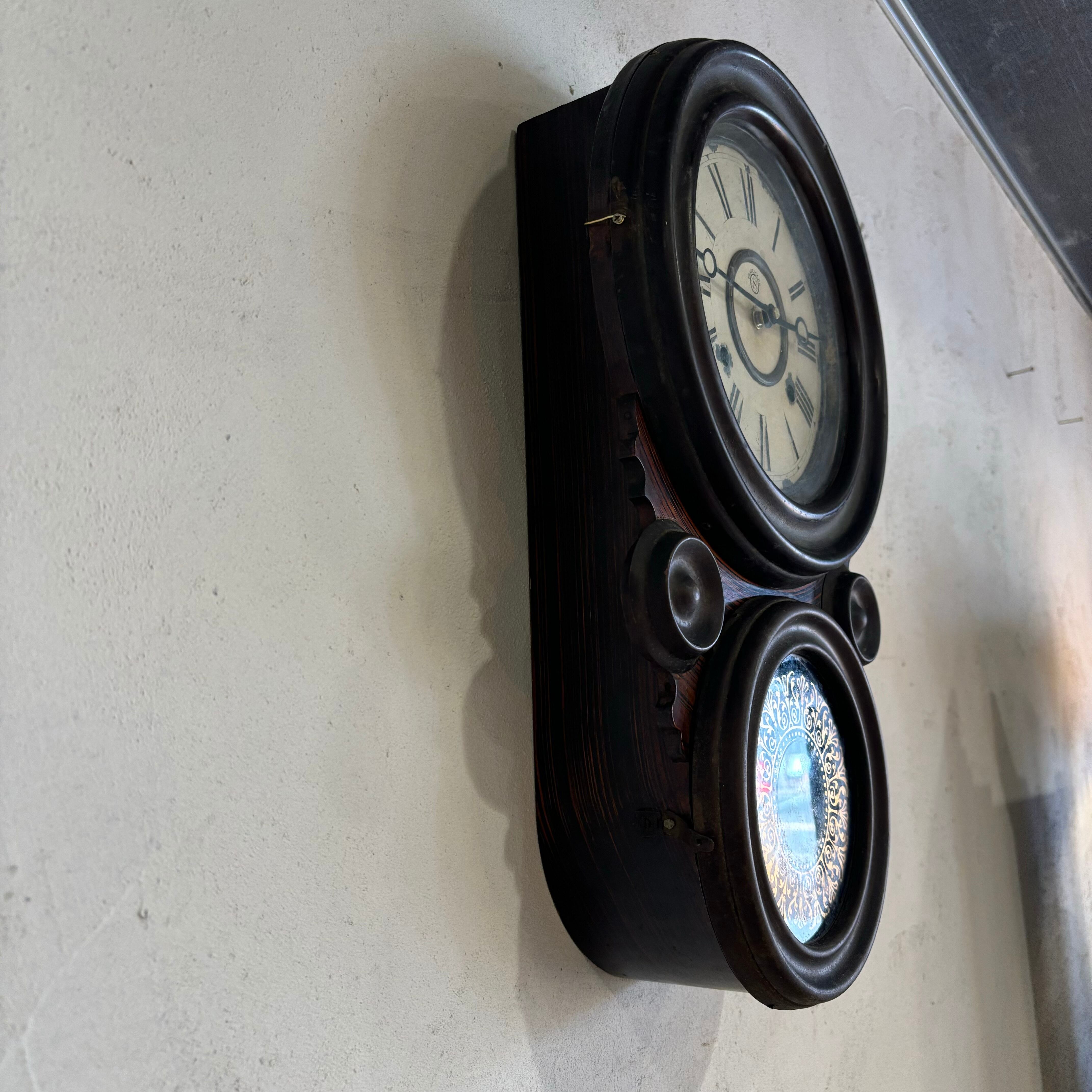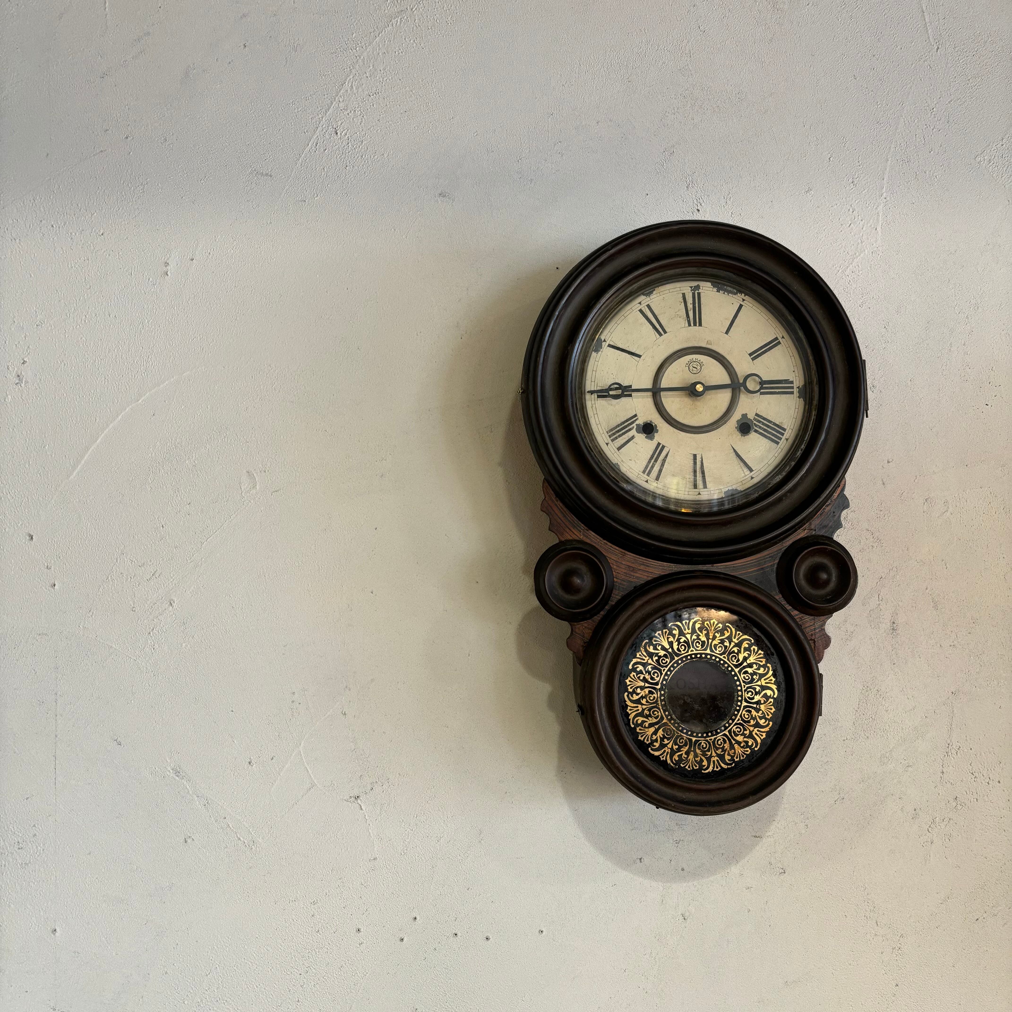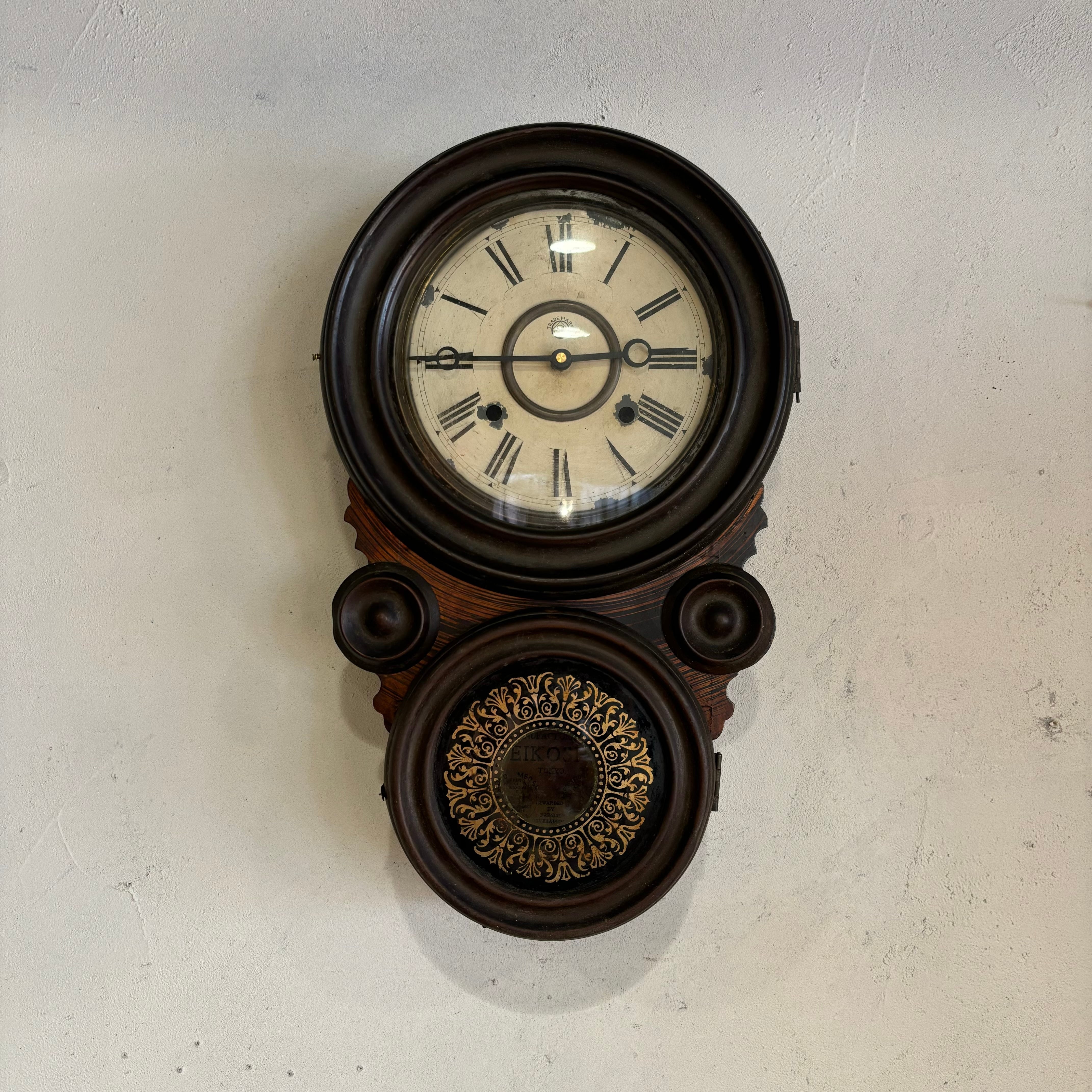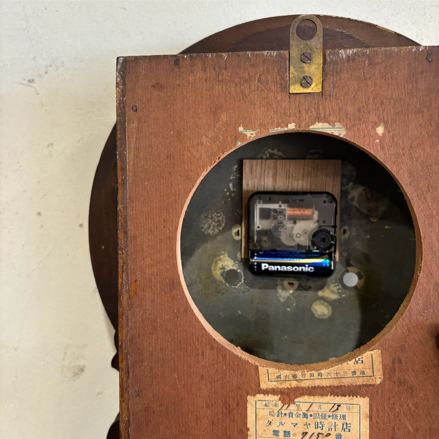 大正15年製造のダルマ時計 針とムーブメントは新品に交換しております 秒針のないタイプです 見た目の古さはそのままで使いやすく交換 振り子はないのでカチカチという音もしません 単三電池(テスト電池付き) 全長約480mm 奥行き約110mm