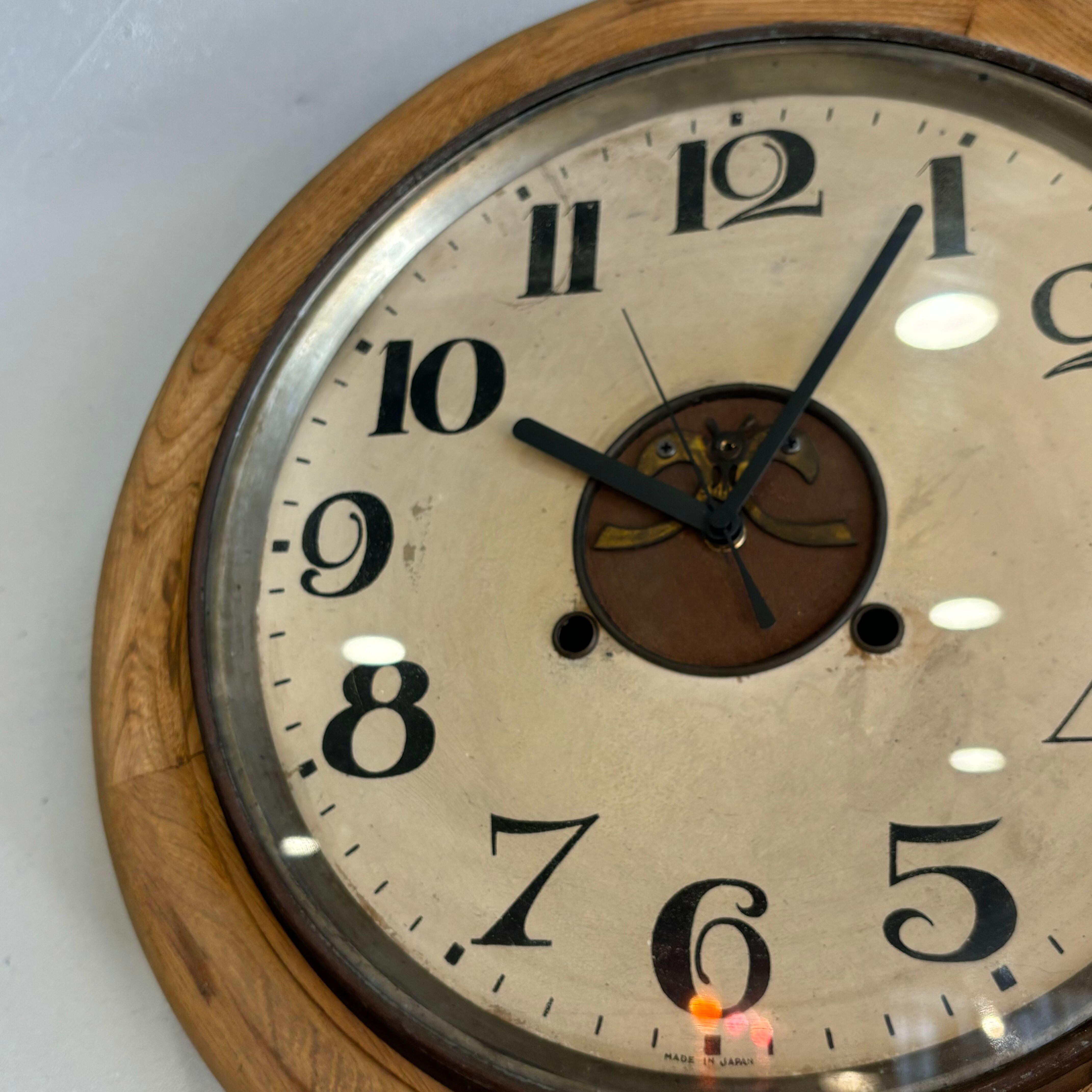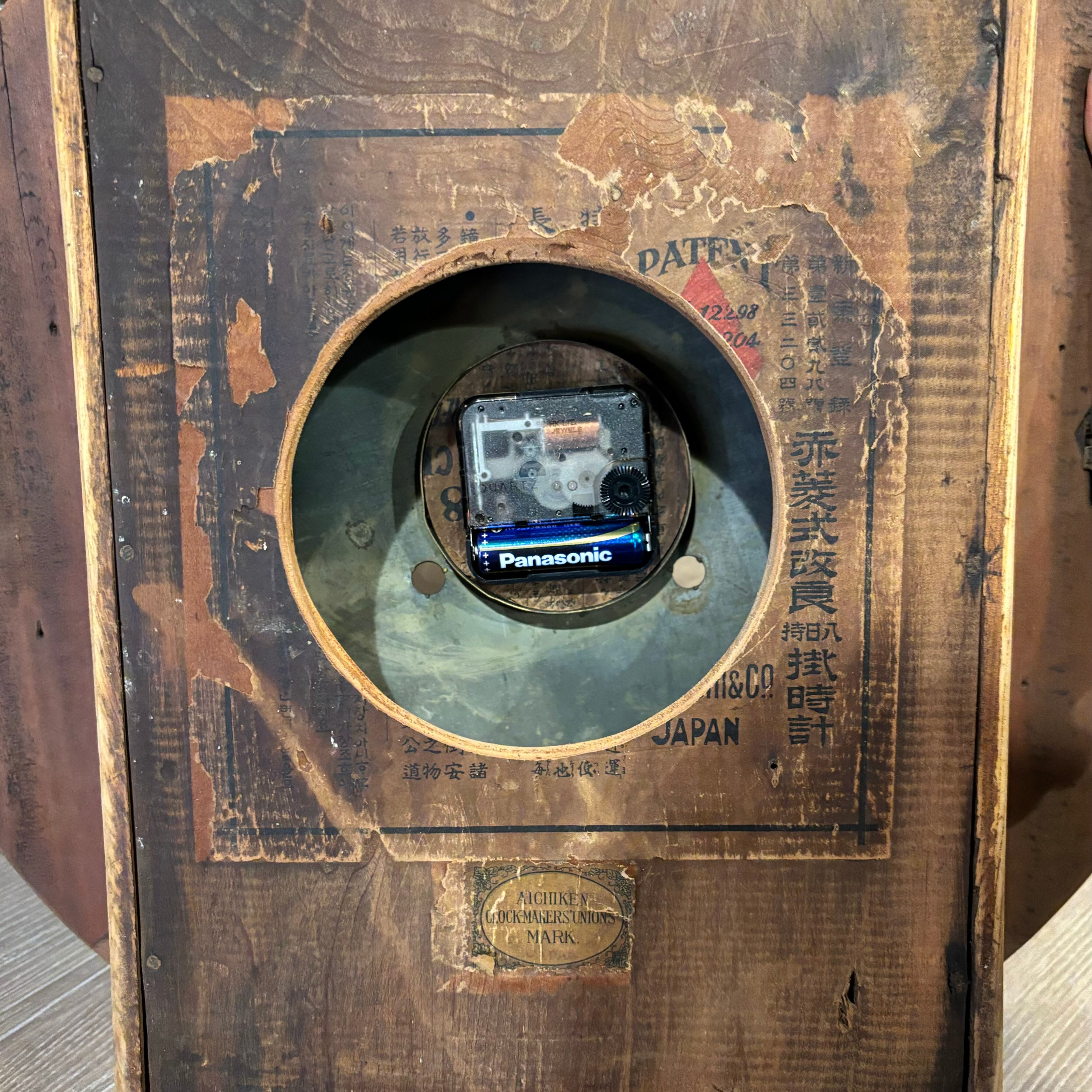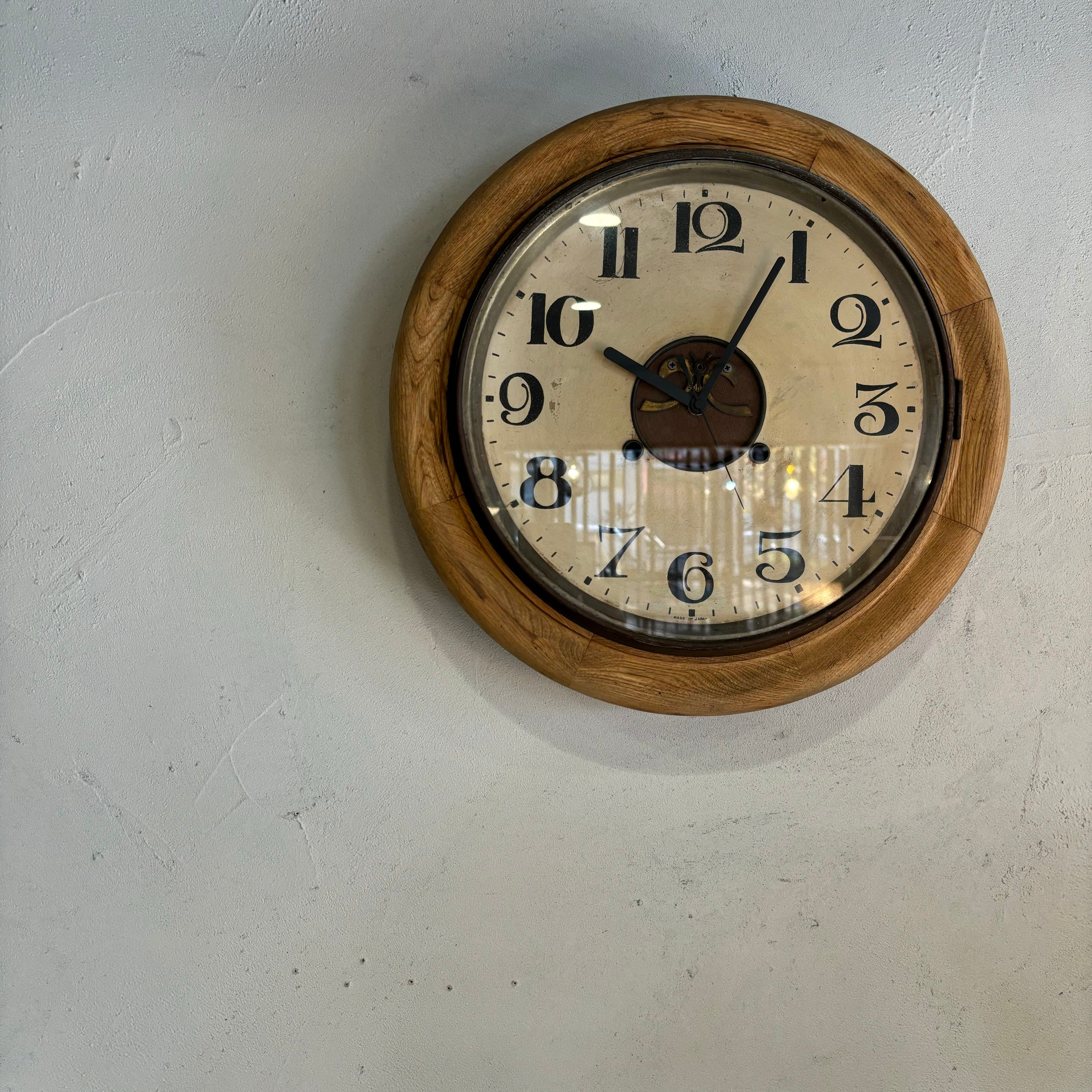 レトロな掛け時計を単三電池1つで動く様に修理 ムーブメントと針は新品に交換しております ガラスも古いまま使用 古さはそのままに 使いやすくリメイクしております 直径約400mm 奥行き約95mm