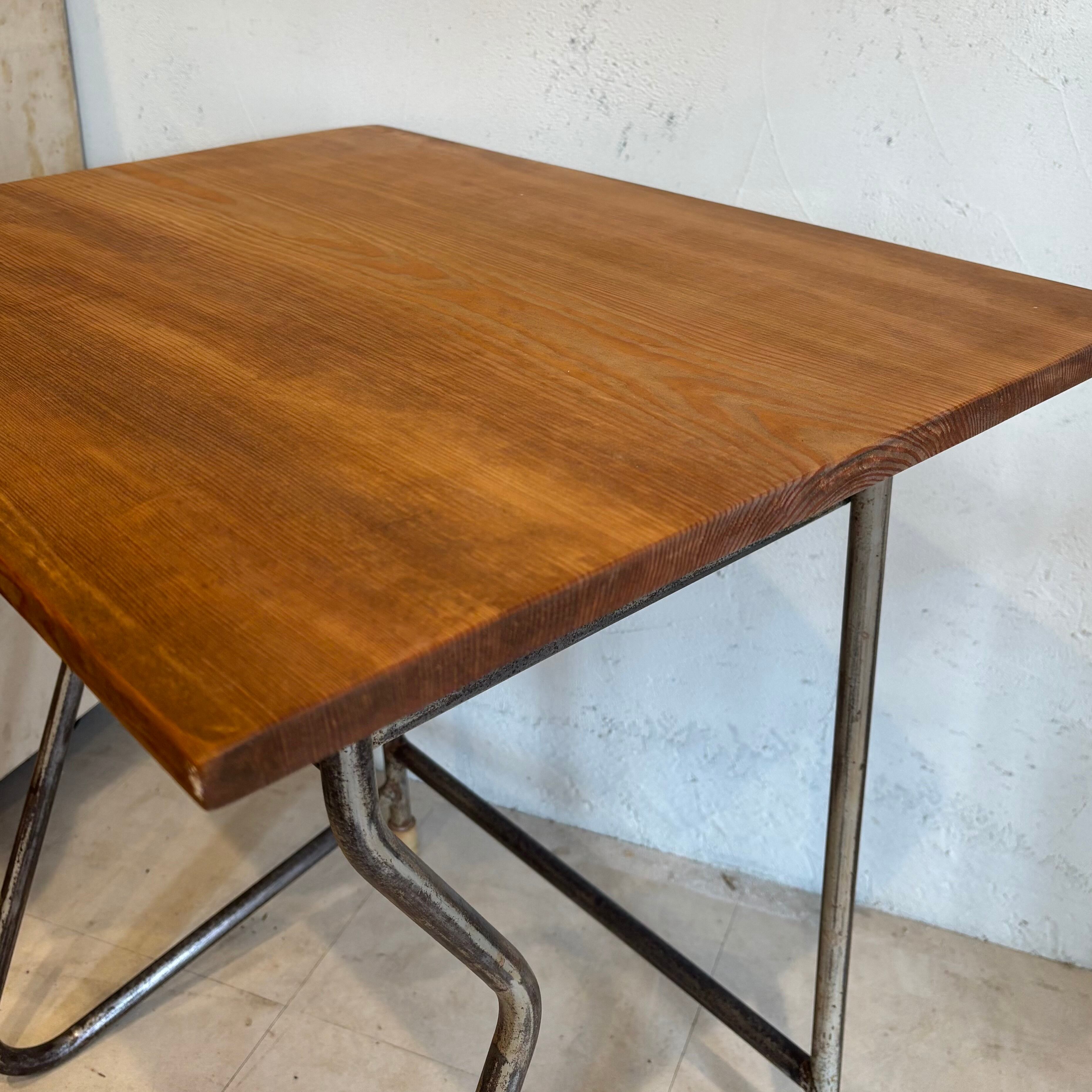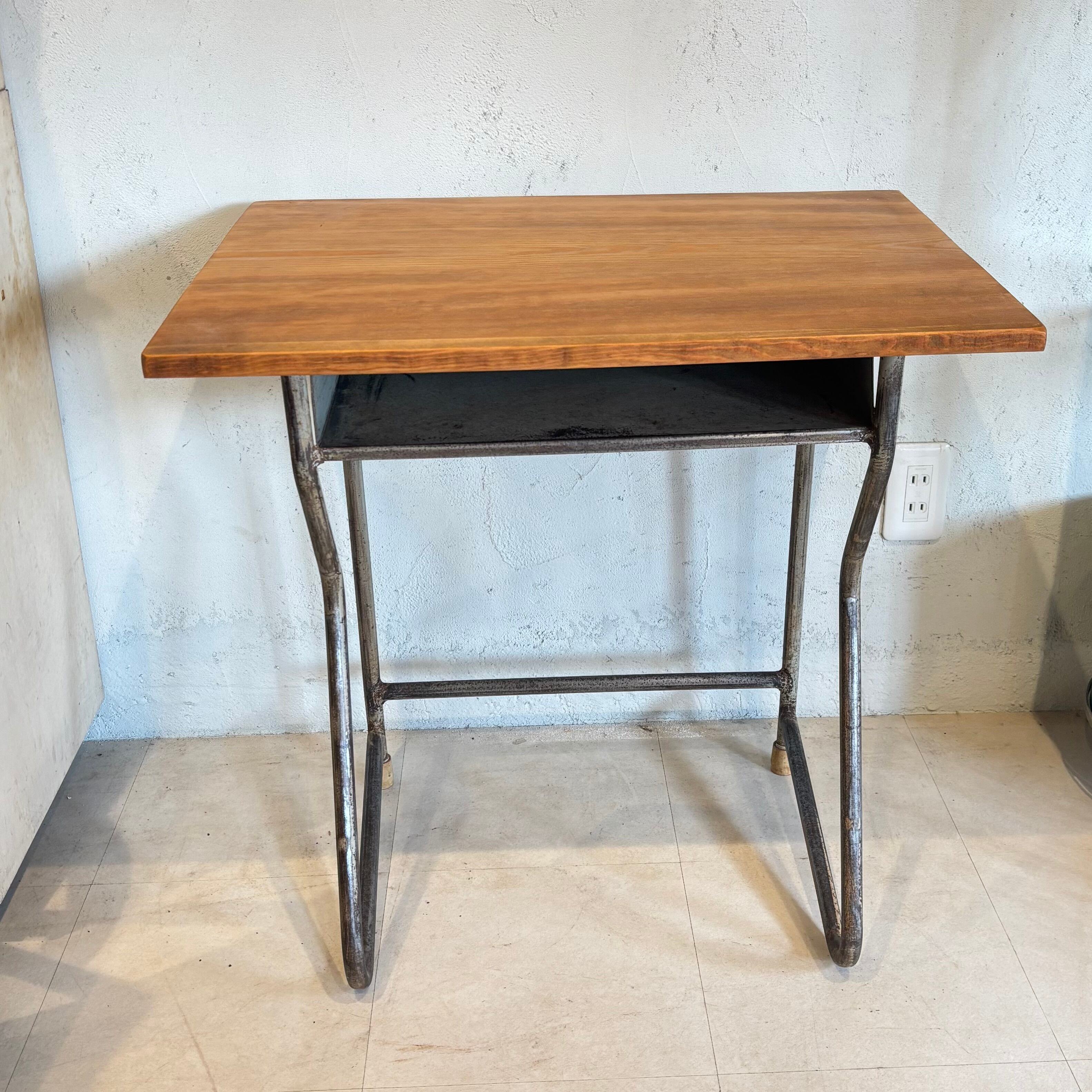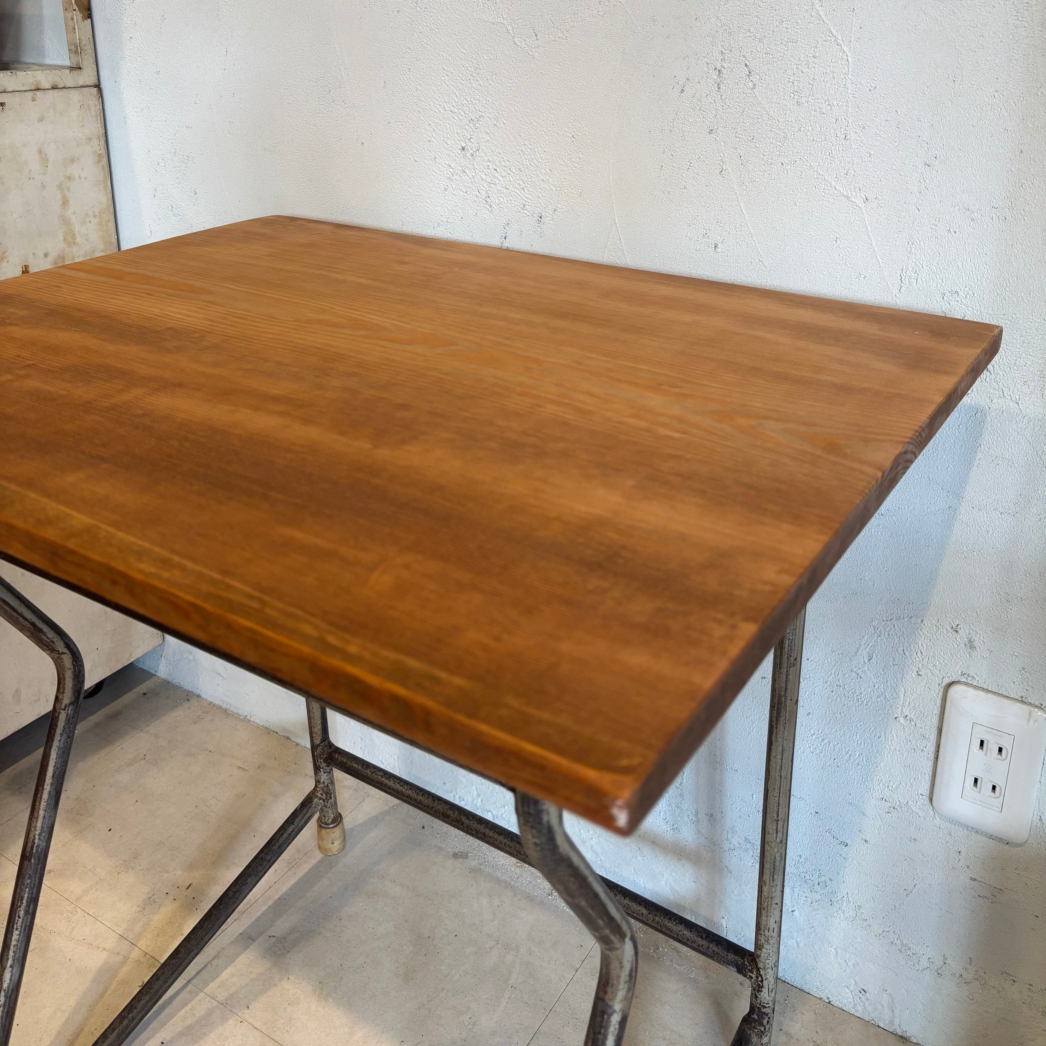 古い学校の机の脚を利用し、古材の天板を合わせました アイアン部分には錆ありです 少し手前に斜めになっているのでデッサンされる方や座面を描かれる方にいかがでしょうか? 天板サイズW649×D486mm 高さ635〜650mm