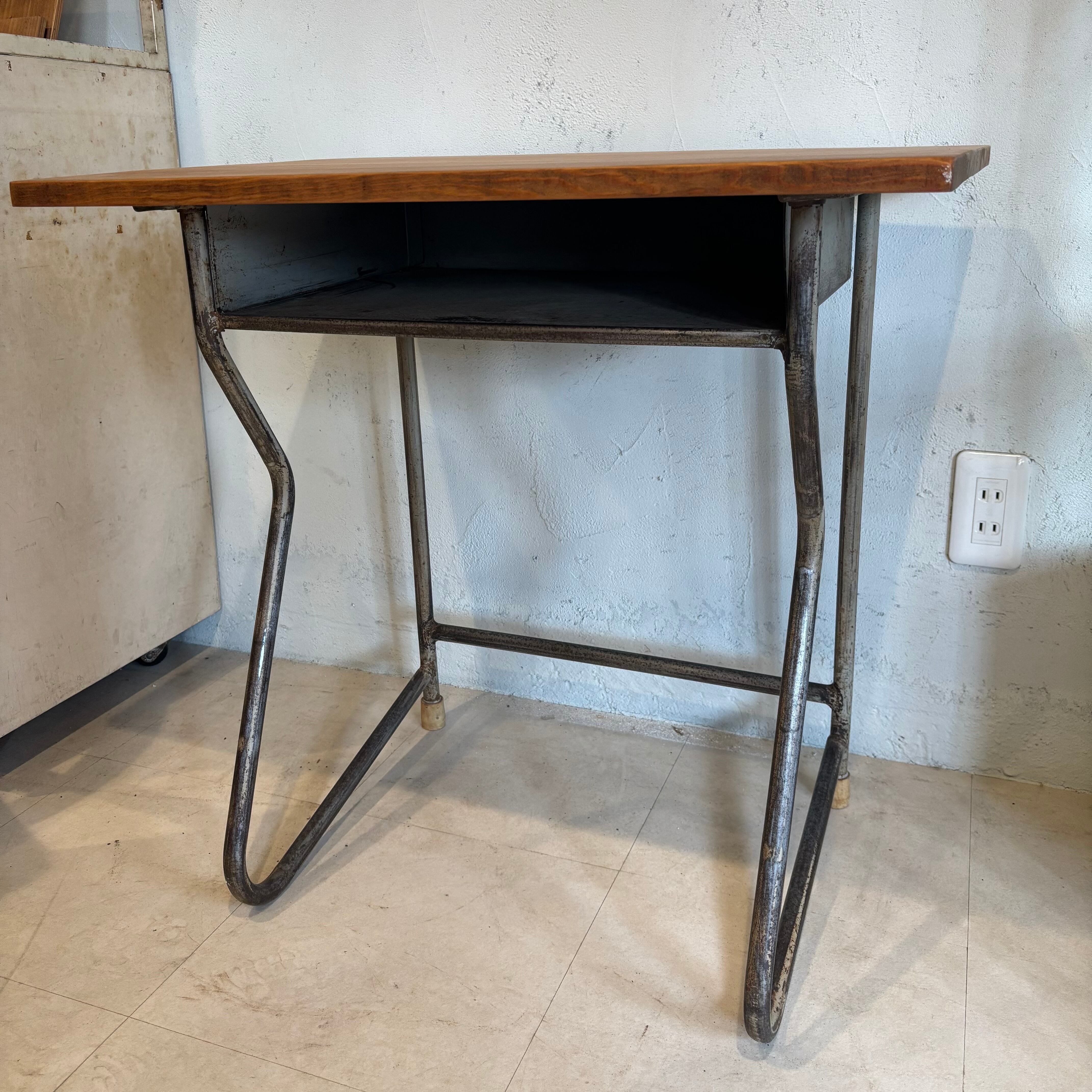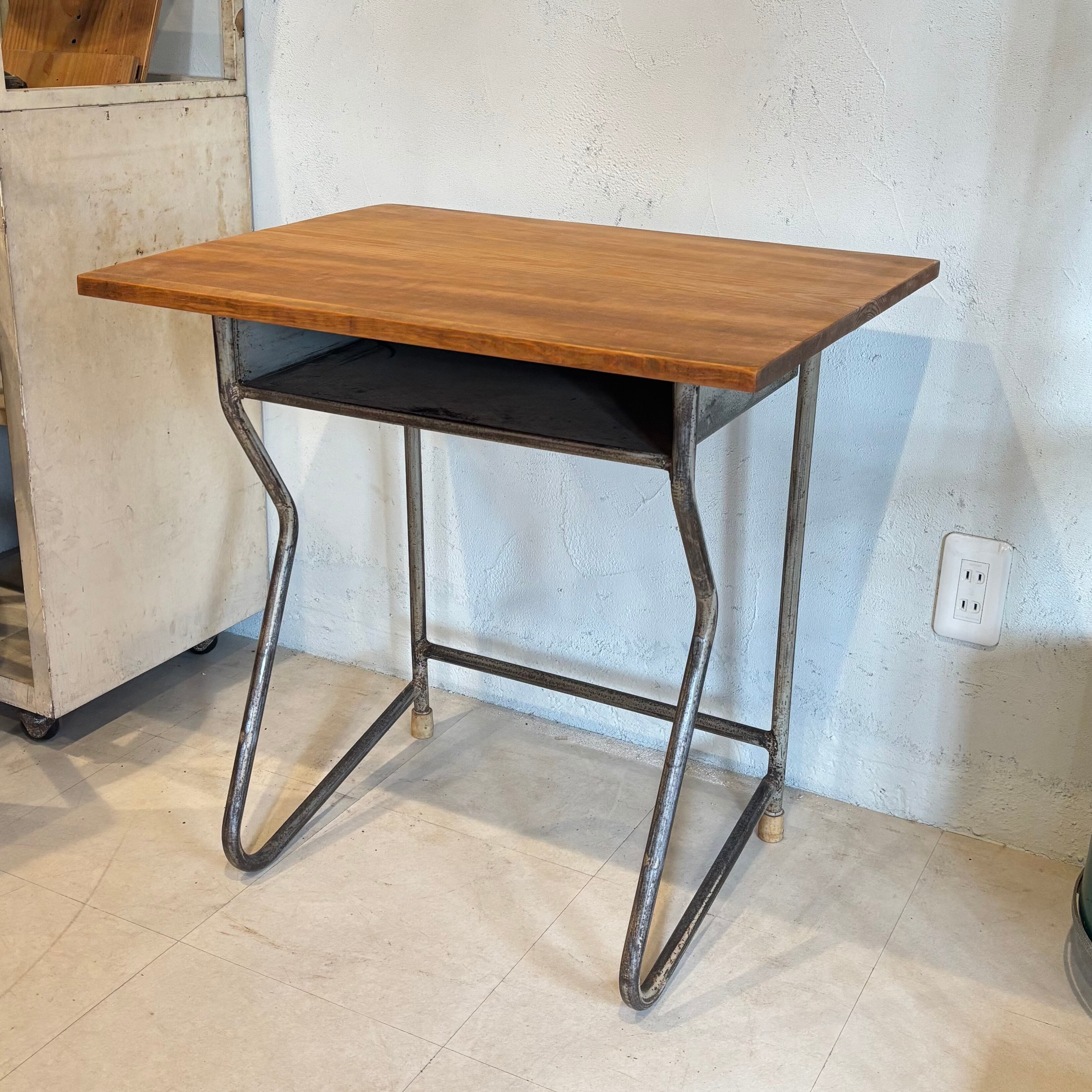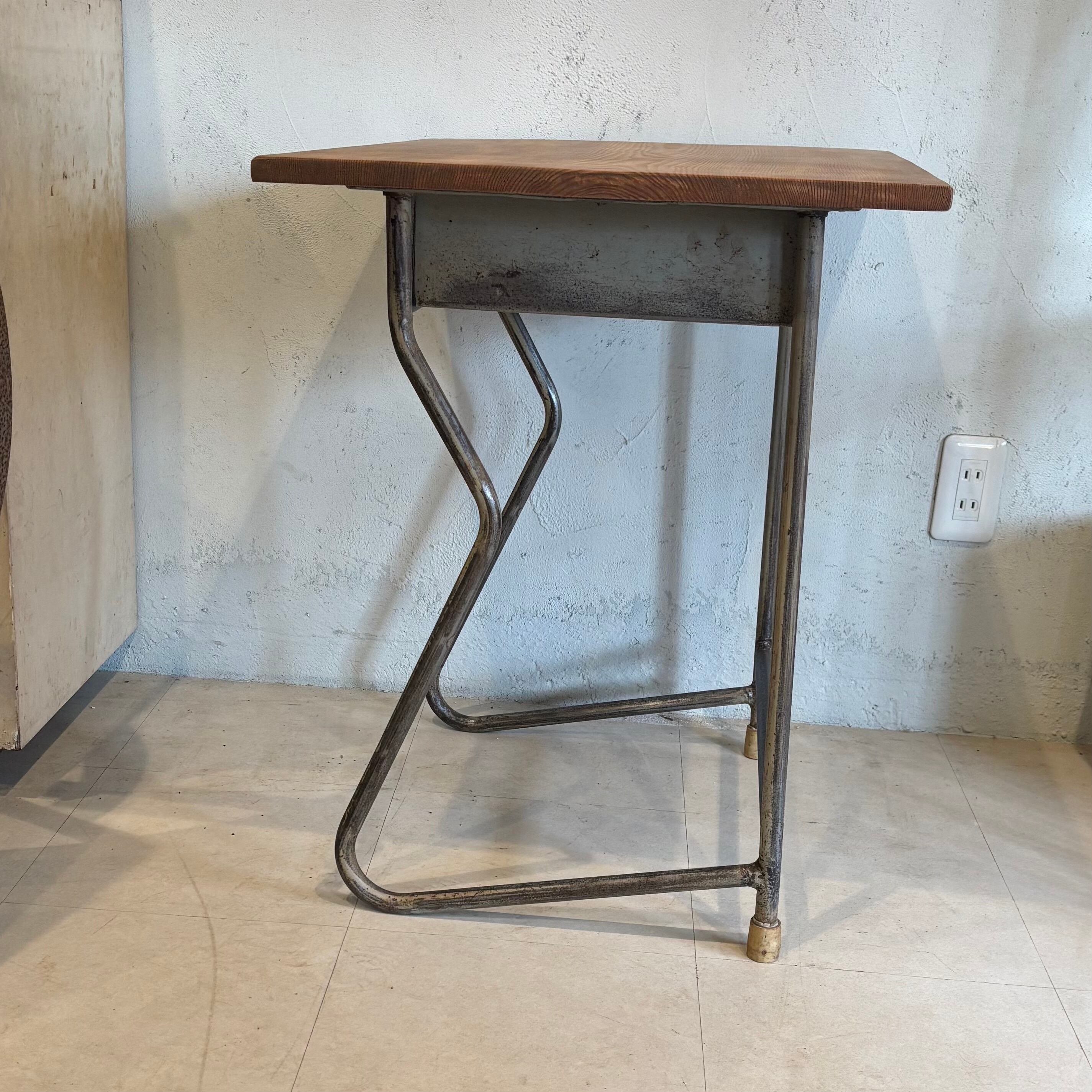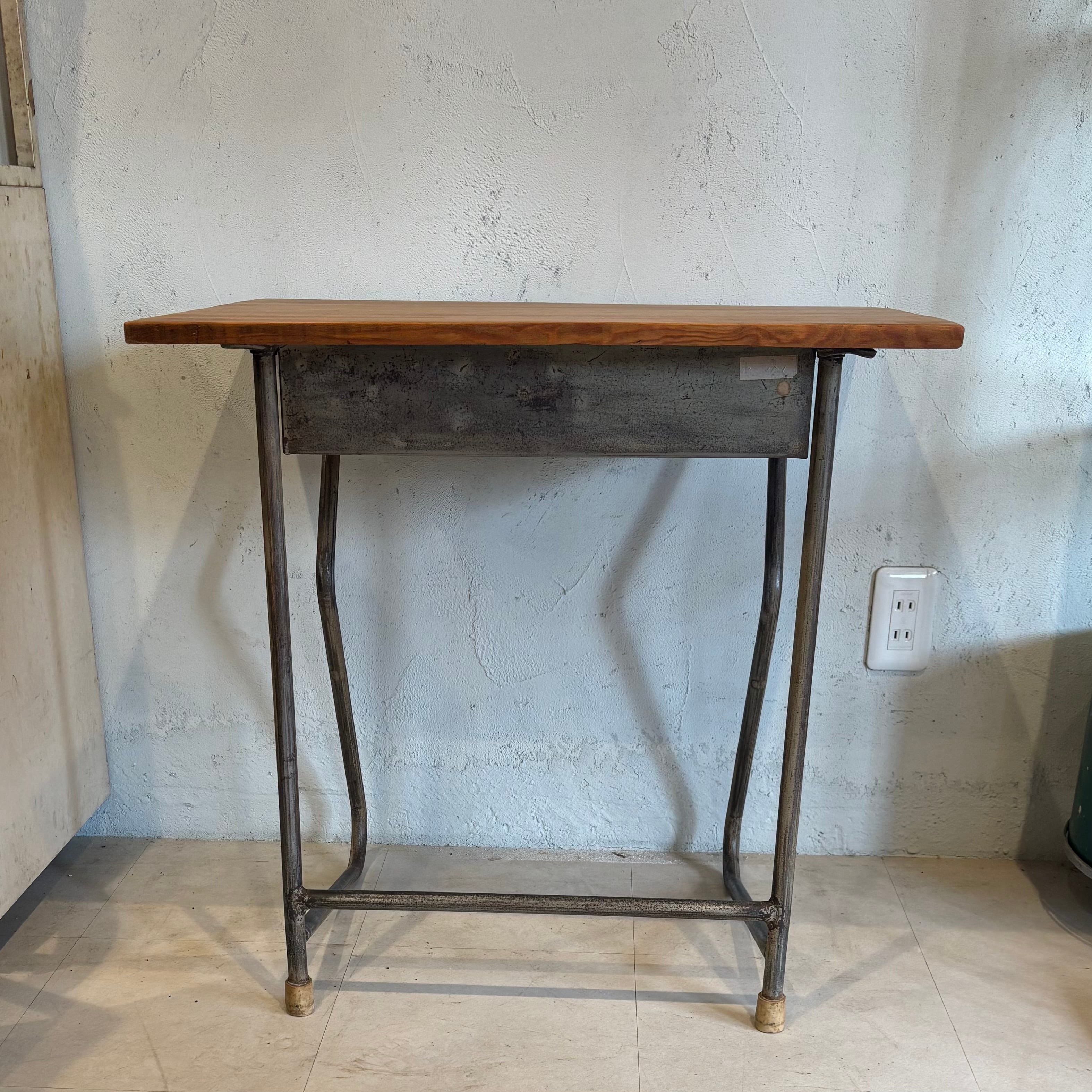 古い学校の机の脚を利用し、古材の天板を合わせました アイアン部分には錆ありです 少し手前に斜めになっているのでデッサンされる方や座面を描かれる方にいかがでしょうか? 天板サイズW649×D486mm 高さ635〜650mm